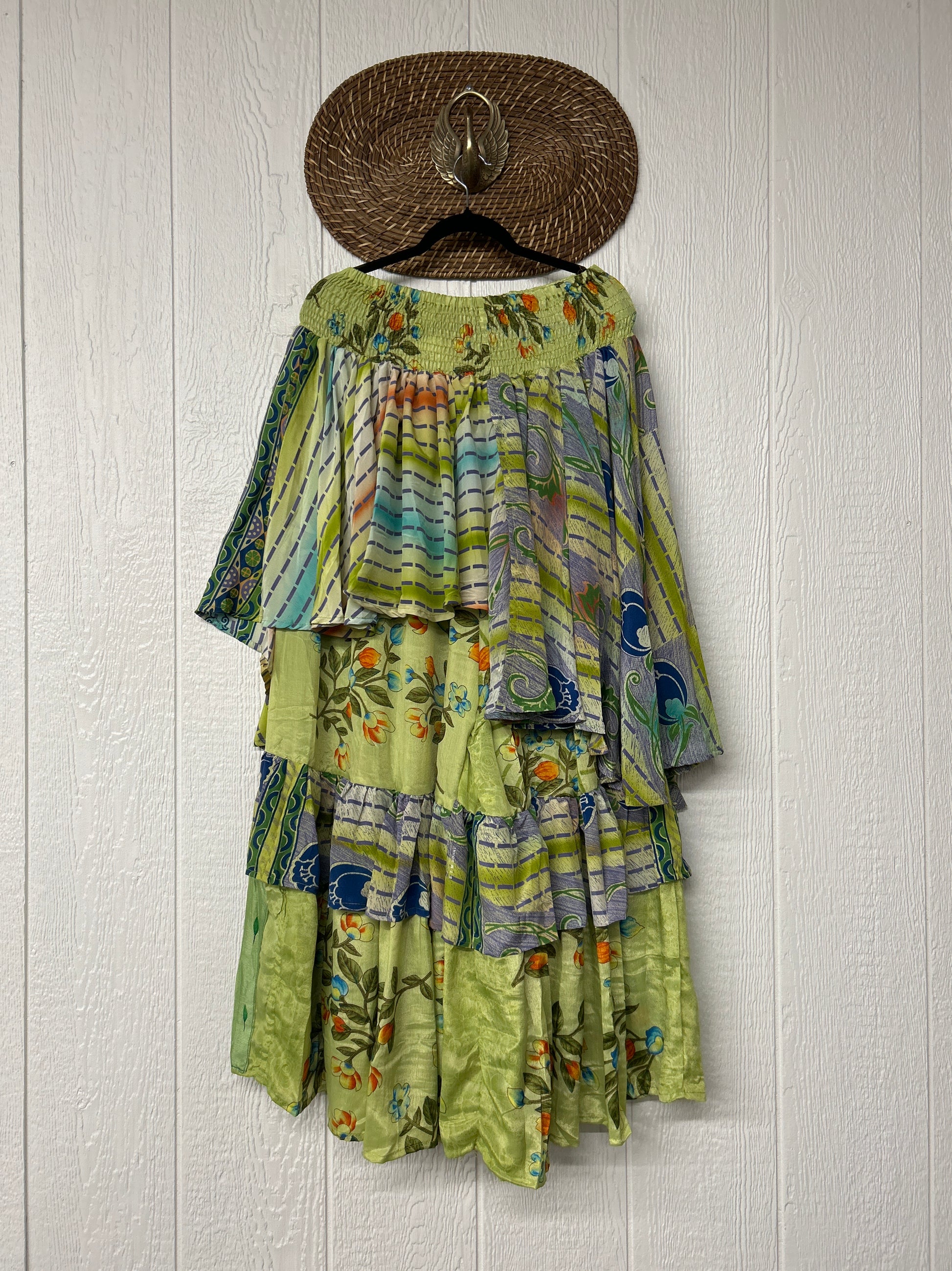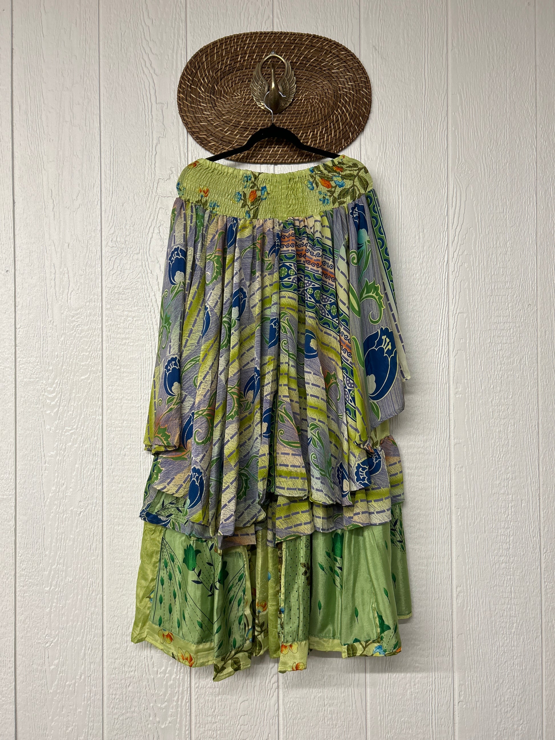 Crafted from vintage rasgulla sari these ethereal pants features stretchy waist, super wide legs, double tier hem and a skirt layer. these pants will make you want to dance! One size, recommended up to size 22/24 Crafted and sewn by families in a small village in Northern India providing work and a fair living. This product should be hand washed and line dried for longest life. For softness, fluff in the dryer on low heat after it has dried from hand washing. Disclosure: Our vintage styles have lived a full life before becoming the designs in our shop. Fabrics may have small threads or holes in the layers. Color inconsistency or small stains may be present. The saris are sewn together and extend the life of each design. Imperfections should be celebrated.