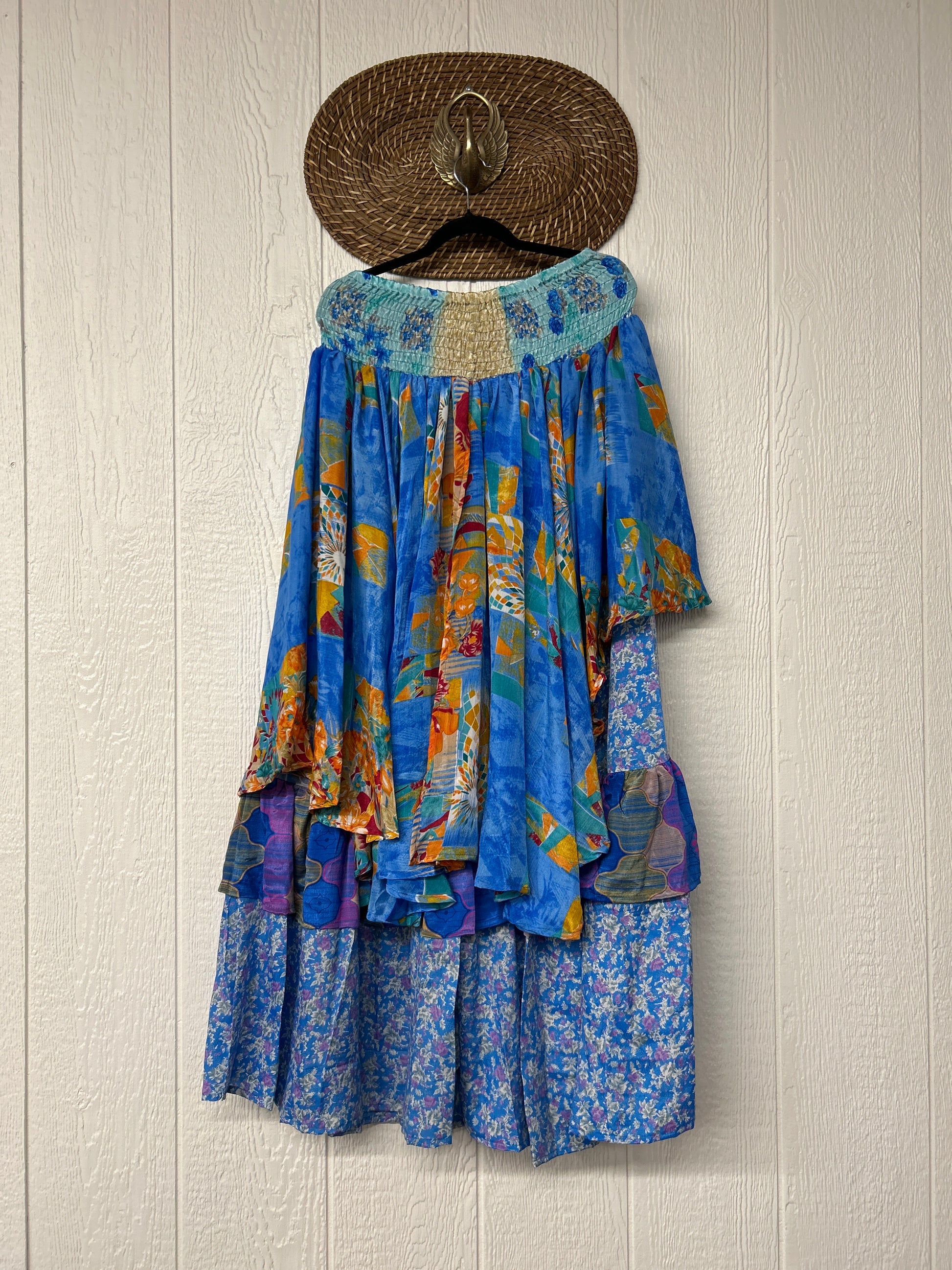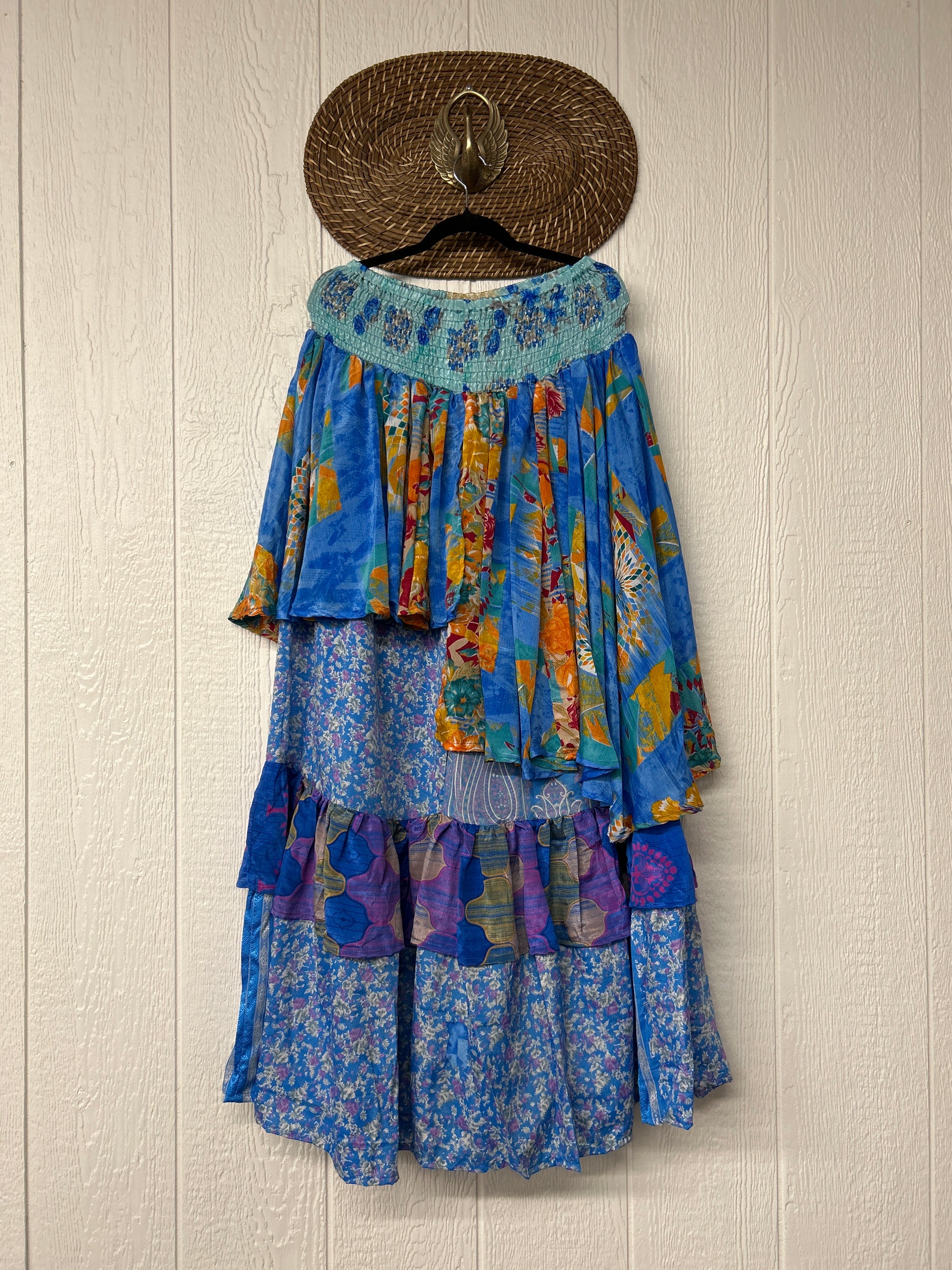 Crafted from vintage rasgulla sari these ethereal pants features stretchy waist, super wide legs, double tier hem and a skirt layer. these pants will make you want to dance! One size, recommended up to size 22/24 Crafted and sewn by families in a small village in Northern India providing work and a fair living. This product should be hand washed and line dried for longest life. For softness, fluff in the dryer on low heat after it has dried from hand washing. Disclosure: Our vintage styles have lived a full life before becoming the designs in our shop. Fabrics may have small threads or holes in the layers. Color inconsistency or small stains may be present. The saris are sewn together and extend the life of each design. Imperfections should be celebrated.
