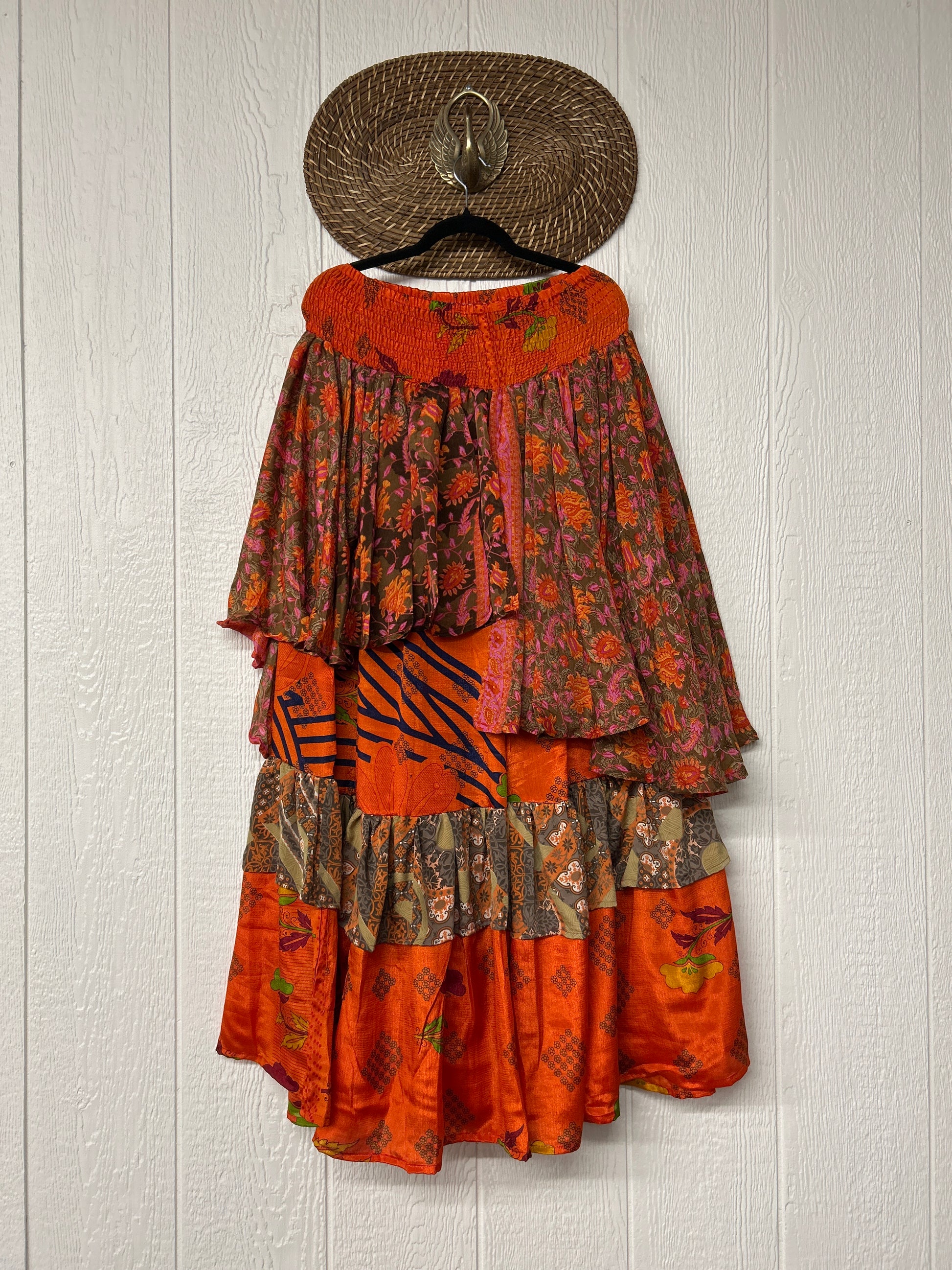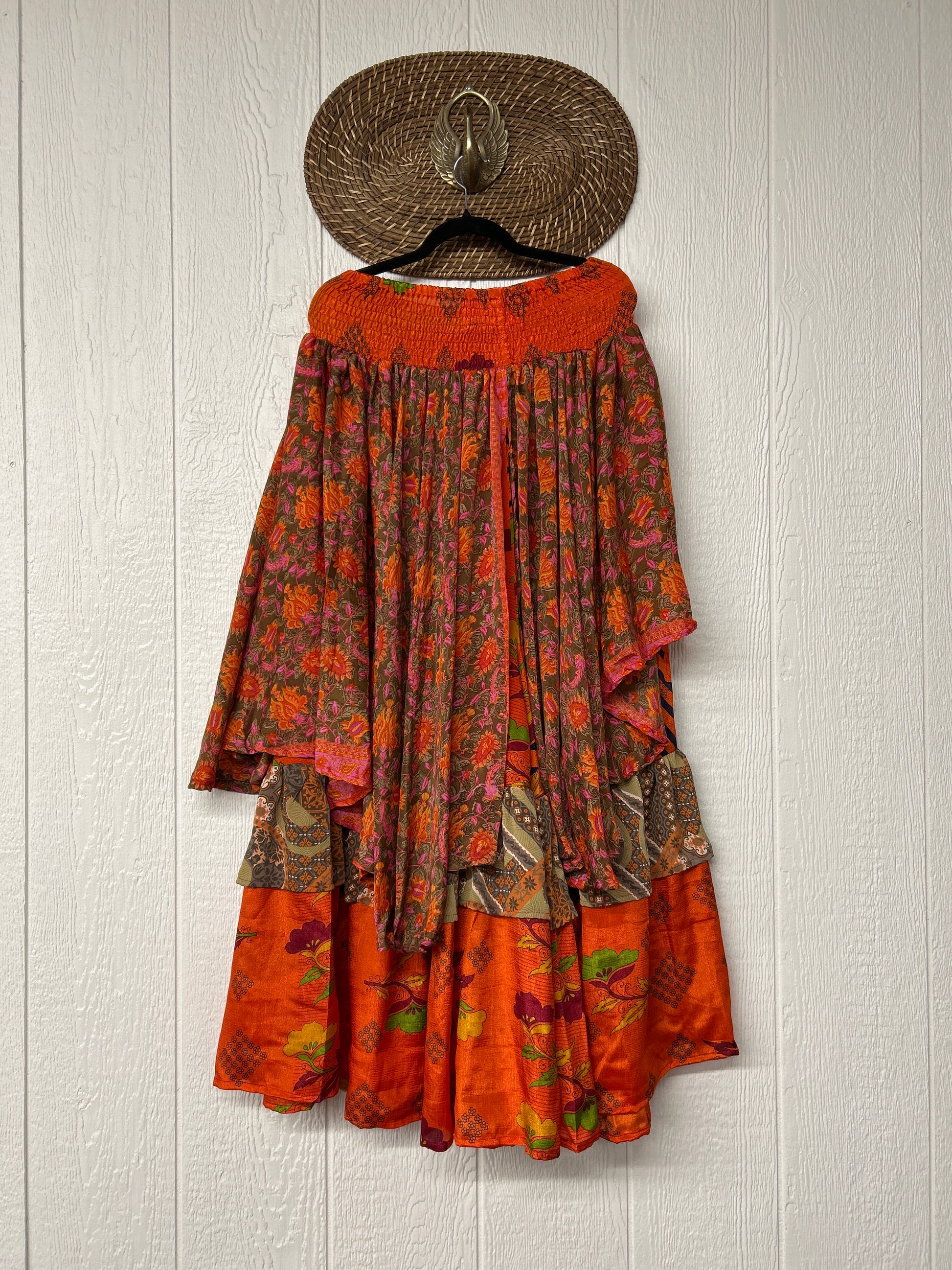 Crafted from vintage rasgulla sari these ethereal pants features stretchy waist, super wide legs, double tier hem and a skirt layer. these pants will make you want to dance! One size, recommended up to size 22/24 Crafted and sewn by families in a small village in Northern India providing work and a fair living. This product should be hand washed and line dried for longest life. For softness, fluff in the dryer on low heat after it has dried from hand washing. Disclosure: Our vintage styles have lived a full life before becoming the designs in our shop. Fabrics may have small threads or holes in the layers. Color inconsistency or small stains may be present. The saris are sewn together and extend the life of each design. Imperfections should be celebrated.