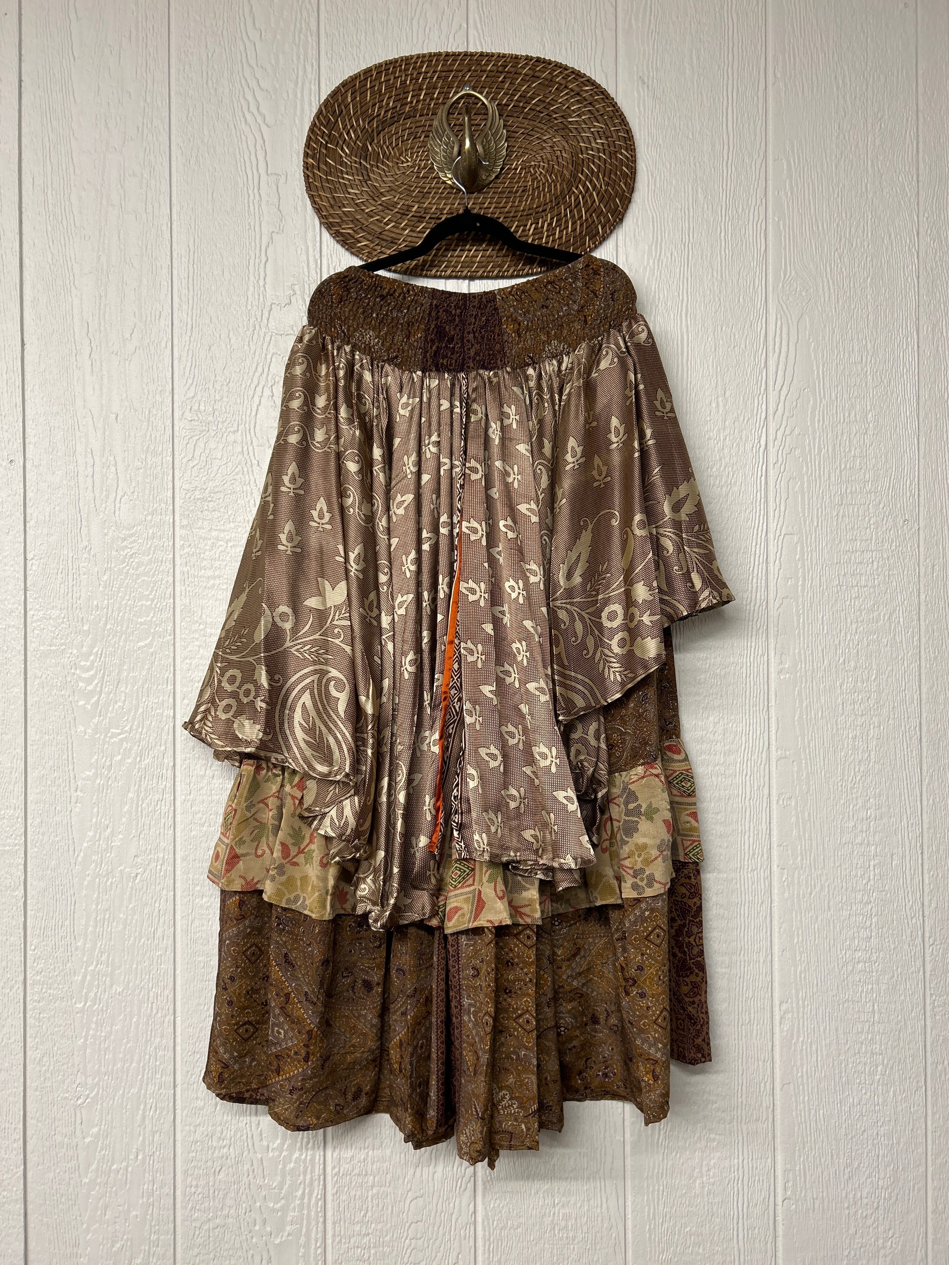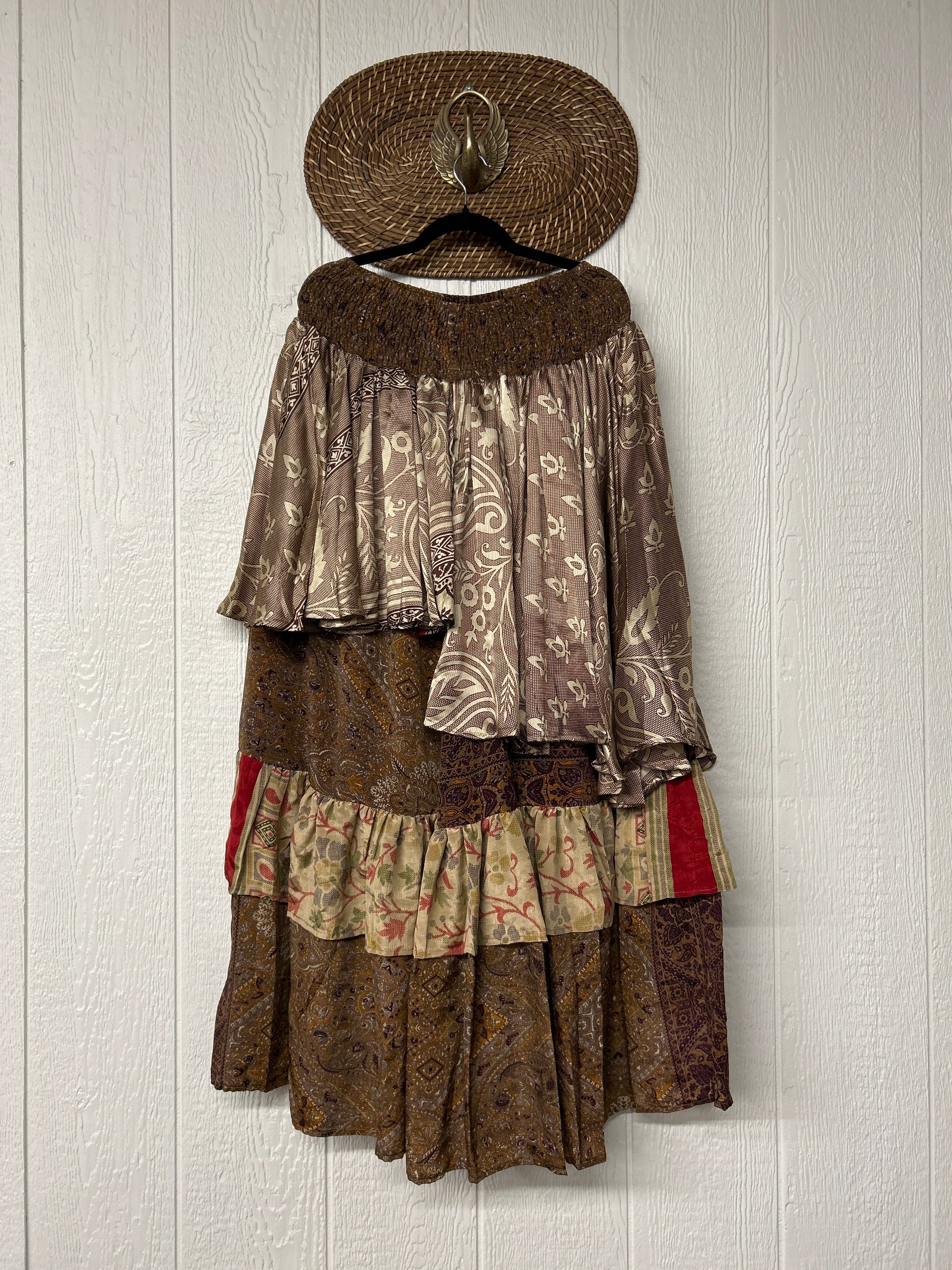 Crafted from vintage rasgulla sari these ethereal pants features stretchy waist, super wide legs, double tier hem and a skirt layer. these pants will make you want to dance! One size, recommended up to size 22/24 Crafted and sewn by families in a small village in Northern India providing work and a fair living. This product should be hand washed and line dried for longest life. For softness, fluff in the dryer on low heat after it has dried from hand washing. Disclosure: Our vintage styles have lived a full life before becoming the designs in our shop. Fabrics may have small threads or holes in the layers. Color inconsistency or small stains may be present. The saris are sewn together and extend the life of each design. Imperfections should be celebrated.