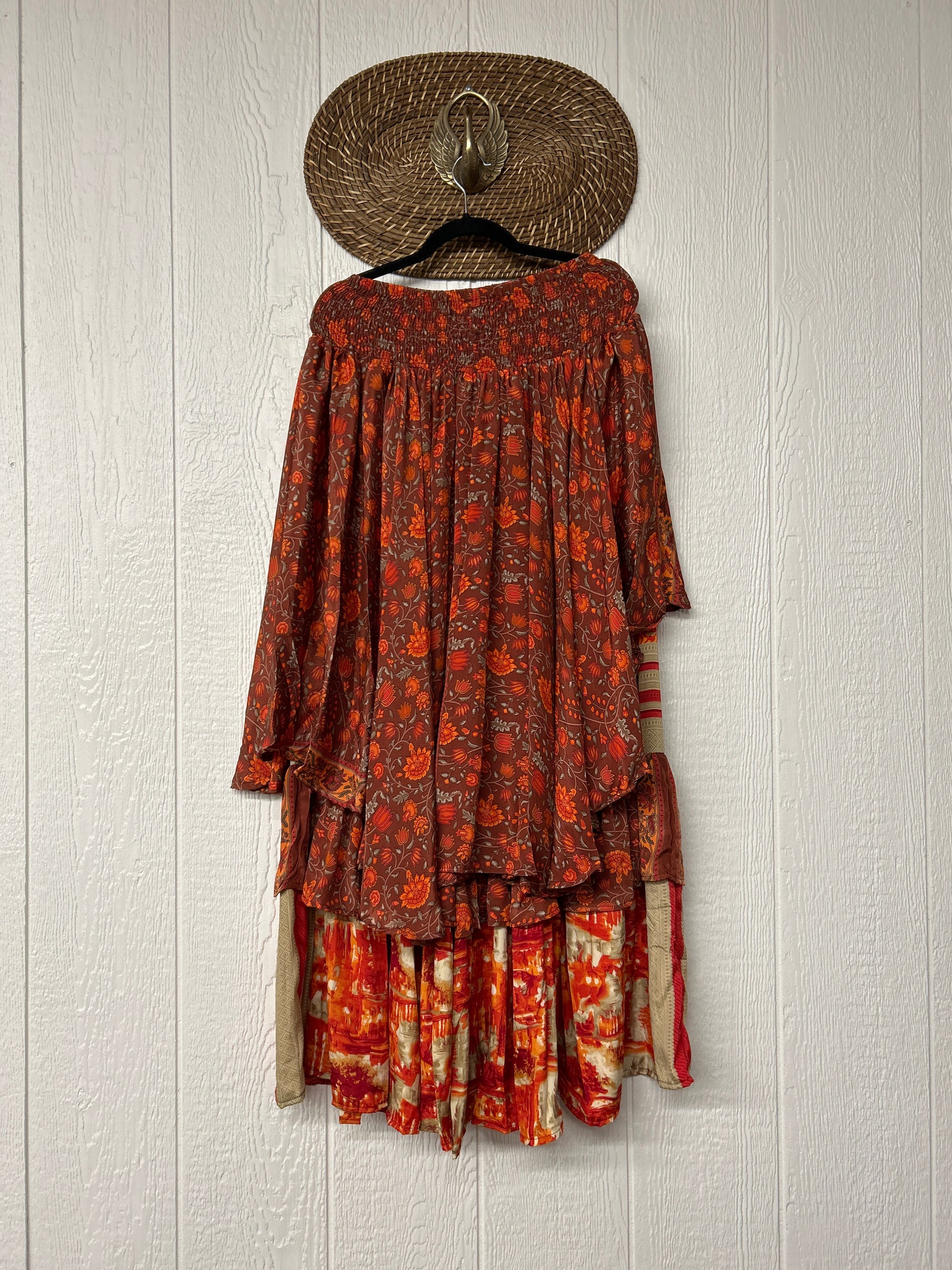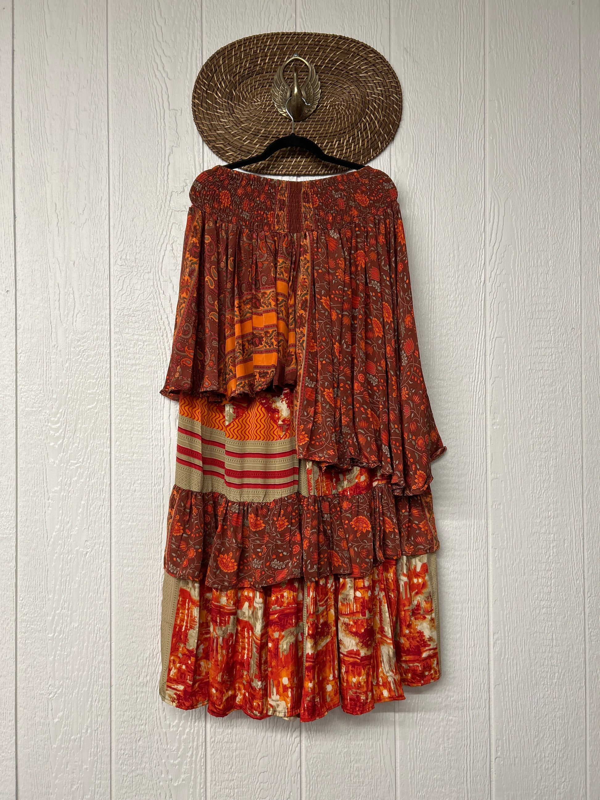 Crafted from vintage rasgulla sari these ethereal pants features stretchy waist, super wide legs, double tier hem and a skirt layer. these pants will make you want to dance! One size, recommended up to size 22/24 Crafted and sewn by families in a small village in Northern India providing work and a fair living. This product should be hand washed and line dried for longest life. For softness, fluff in the dryer on low heat after it has dried from hand washing. Disclosure: Our vintage styles have lived a full life before becoming the designs in our shop. Fabrics may have small threads or holes in the layers. Color inconsistency or small stains may be present. The saris are sewn together and extend the life of each design. Imperfections should be celebrated.