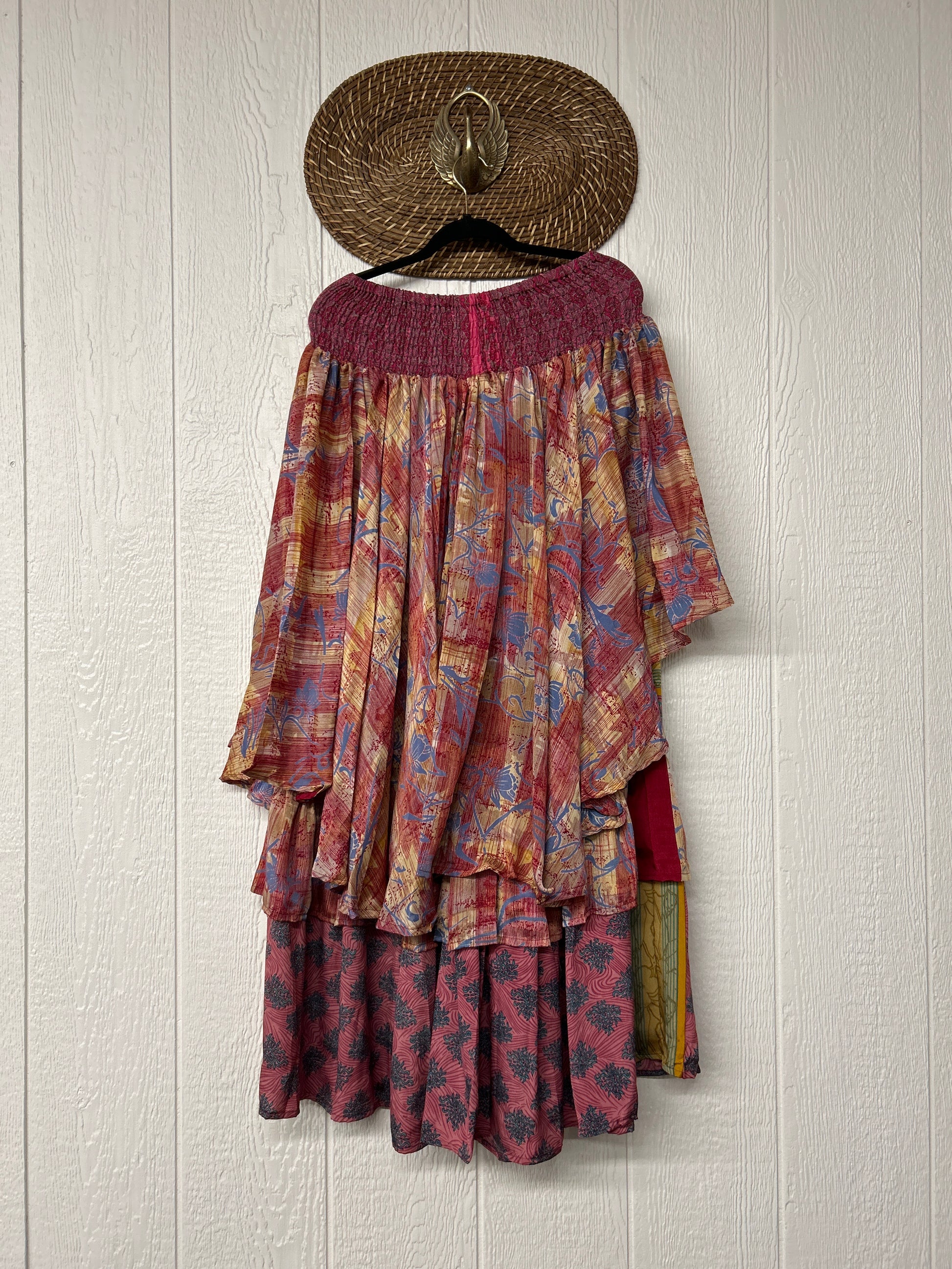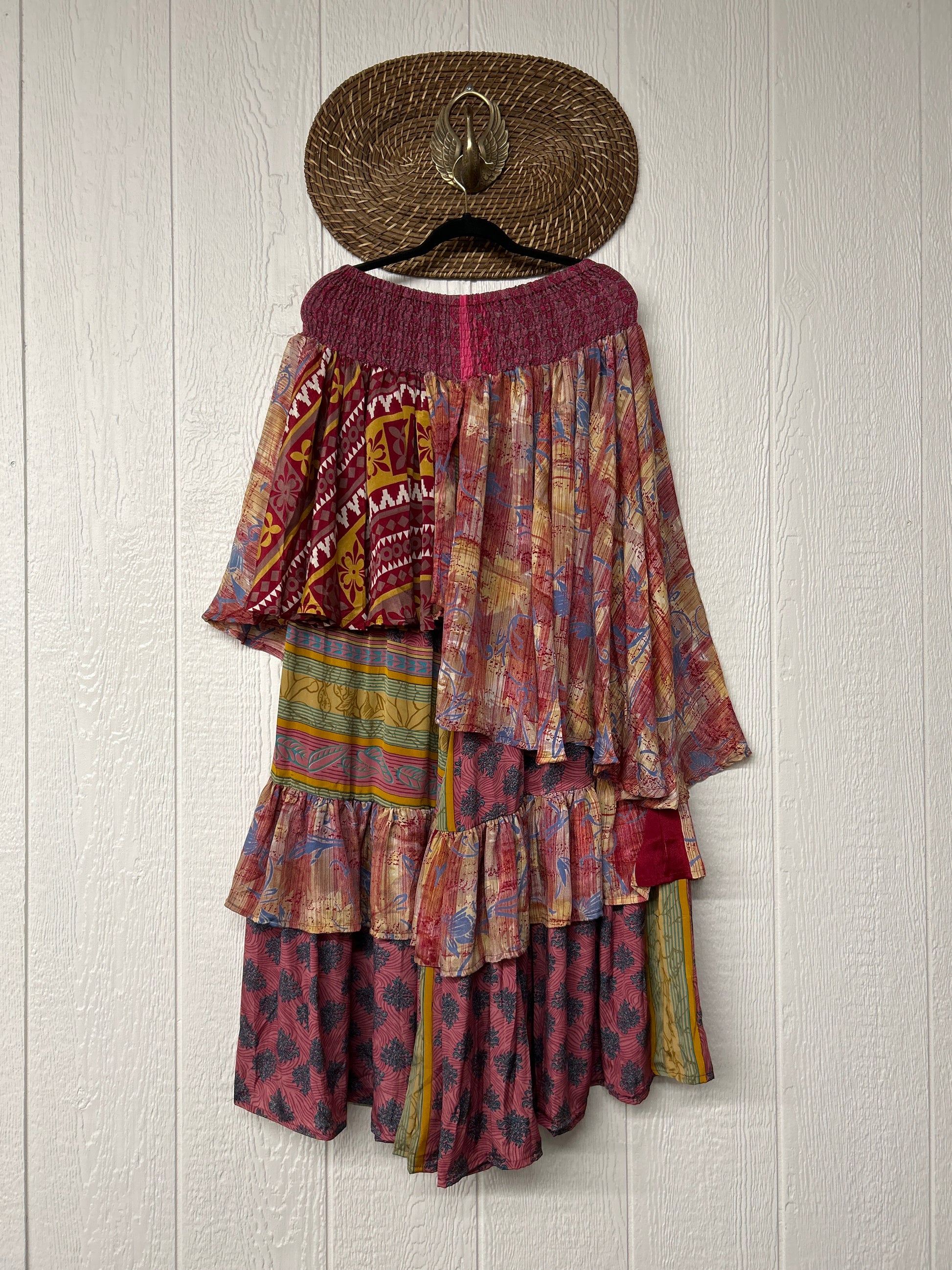 Crafted from vintage rasgulla sari these ethereal pants features stretchy waist, super wide legs, double tier hem and a skirt layer. these pants will make you want to dance! One size, recommended up to size 22/24 Crafted and sewn by families in a small village in Northern India providing work and a fair living. This product should be hand washed and line dried for longest life. For softness, fluff in the dryer on low heat after it has dried from hand washing. Disclosure: Our vintage styles have lived a full life before becoming the designs in our shop. Fabrics may have small threads or holes in the layers. Color inconsistency or small stains may be present. The saris are sewn together and extend the life of each design. Imperfections should be celebrated.