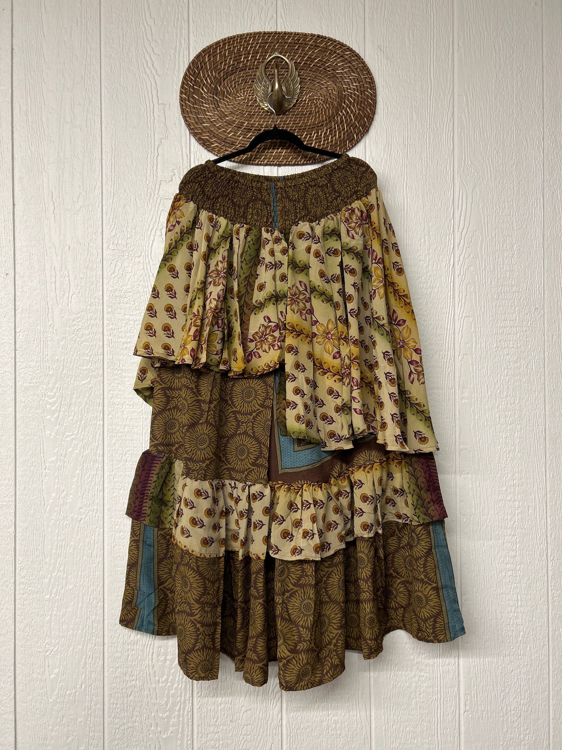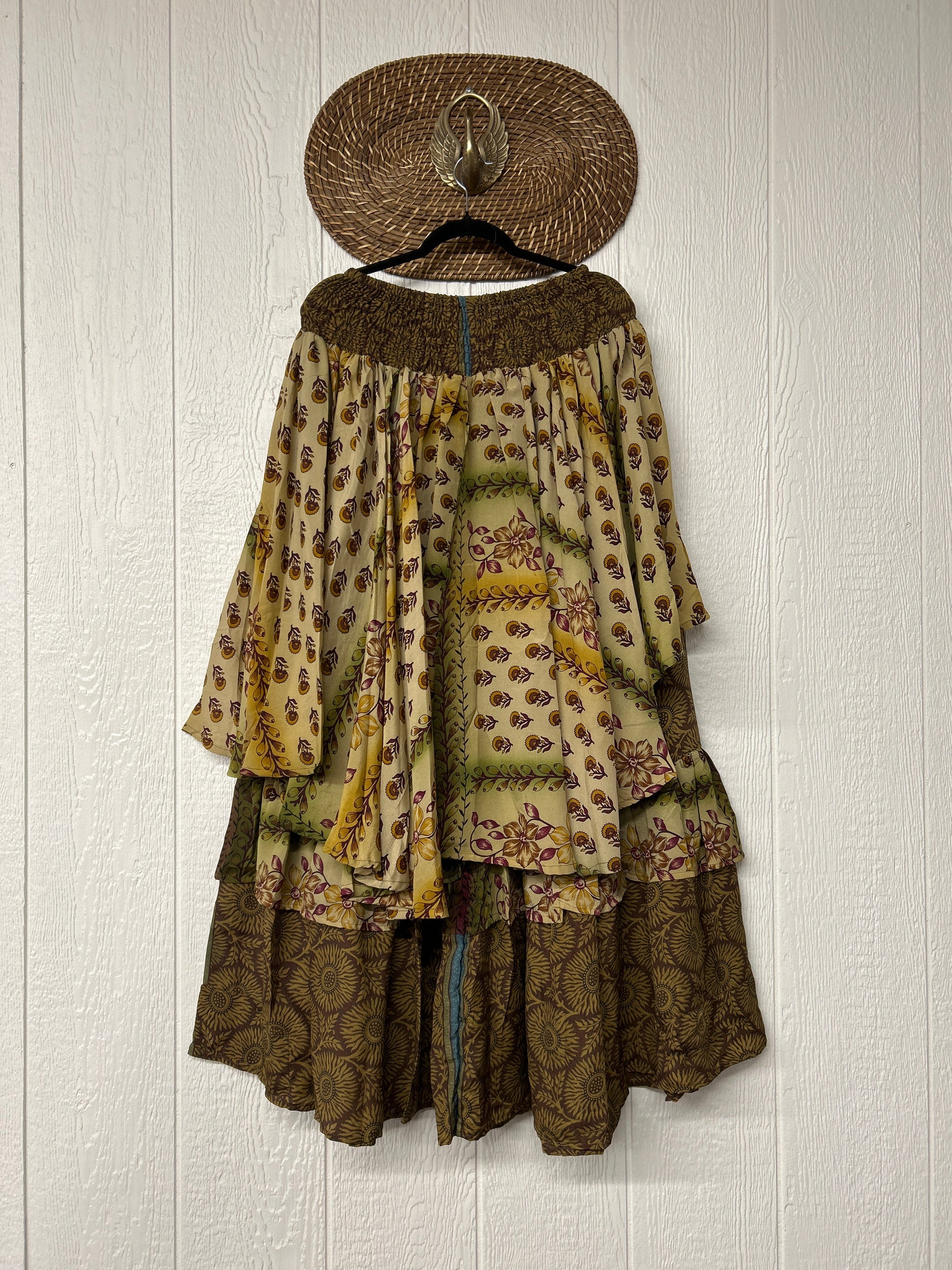 Crafted from vintage rasgulla sari these ethereal pants features stretchy waist, super wide legs, double tier hem and a skirt layer. these pants will make you want to dance! One size, recommended up to size 22/24 Crafted and sewn by families in a small village in Northern India providing work and a fair living. This product should be hand washed and line dried for longest life. For softness, fluff in the dryer on low heat after it has dried from hand washing. Disclosure: Our vintage styles have lived a full life before becoming the designs in our shop. Fabrics may have small threads or holes in the layers. Color inconsistency or small stains may be present. The saris are sewn together and extend the life of each design. Imperfections should be celebrated.
