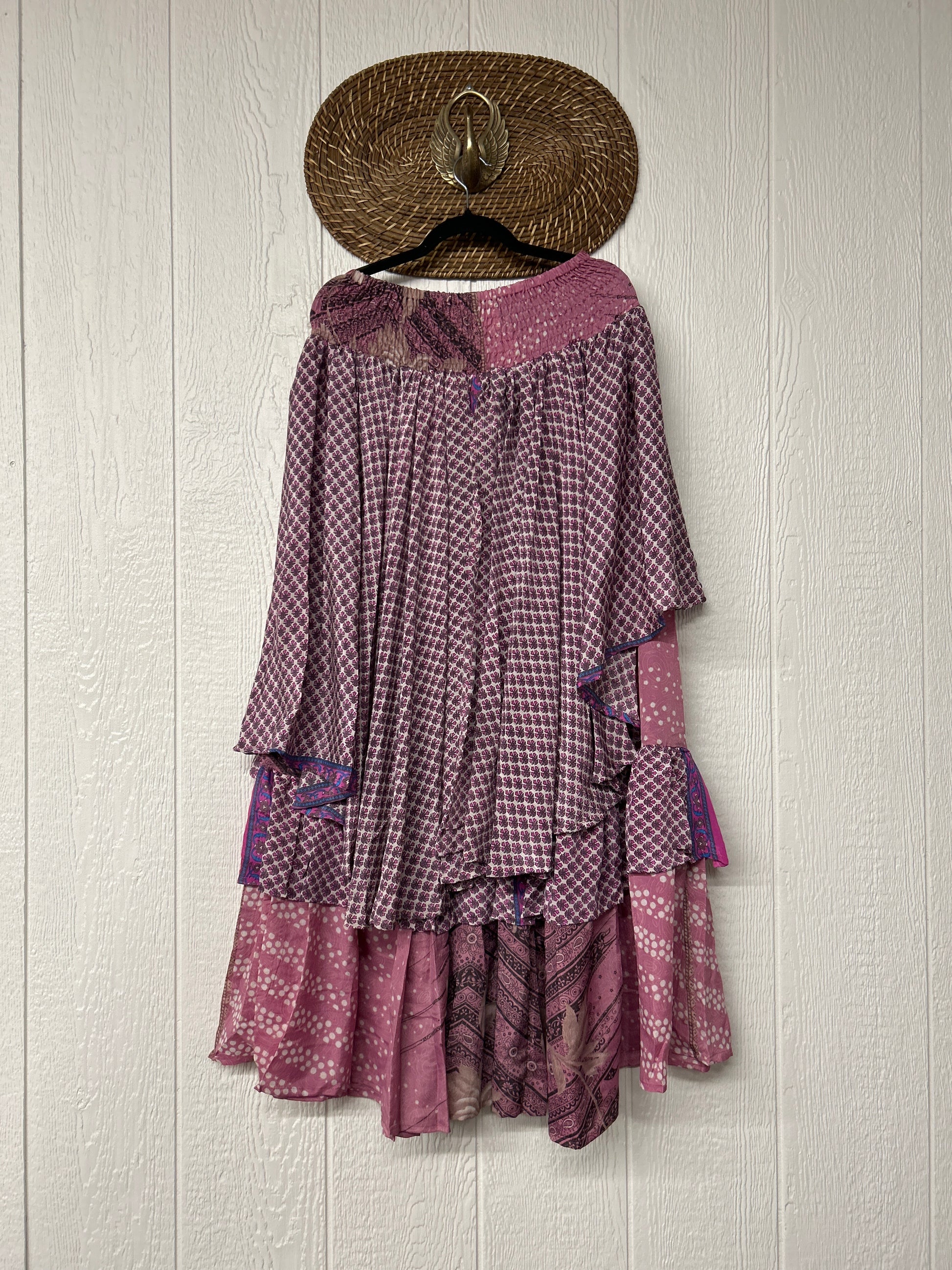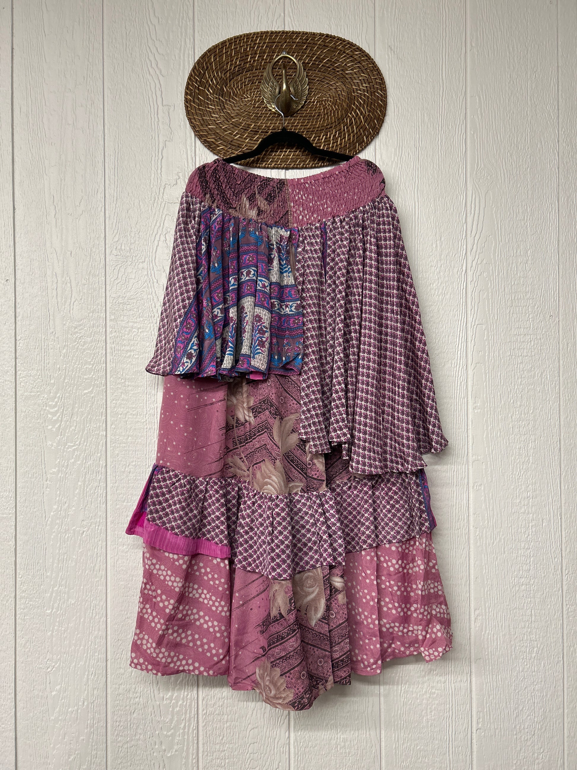 Crafted from vintage rasgulla sari these ethereal pants features stretchy waist, super wide legs, double tier hem and a skirt layer. these pants will make you want to dance! One size, recommended up to size 22/24 Crafted and sewn by families in a small village in Northern India providing work and a fair living. This product should be hand washed and line dried for longest life. For softness, fluff in the dryer on low heat after it has dried from hand washing. Disclosure: Our vintage styles have lived a full life before becoming the designs in our shop. Fabrics may have small threads or holes in the layers. Color inconsistency or small stains may be present. The saris are sewn together and extend the life of each design. Imperfections should be celebrated.