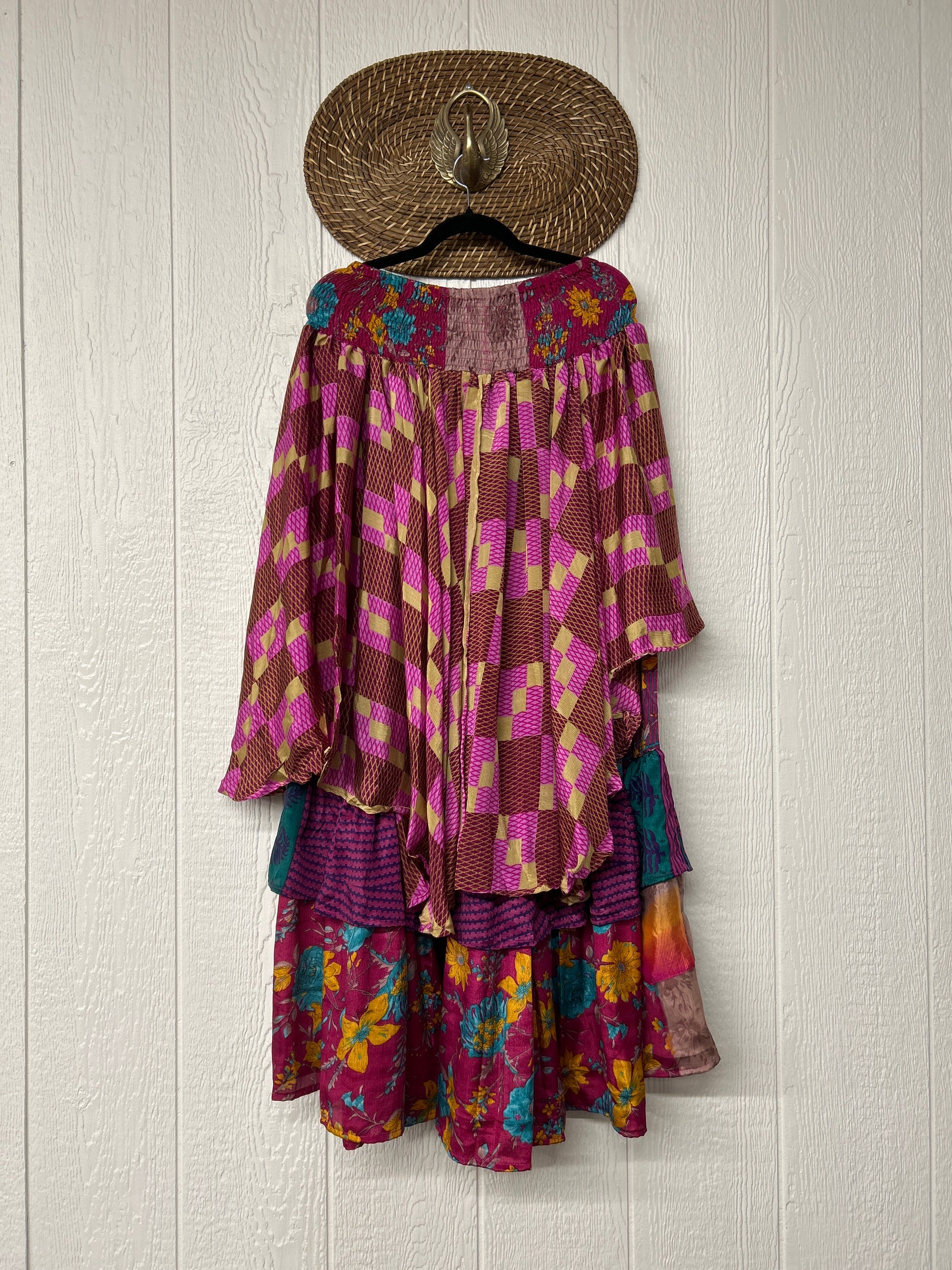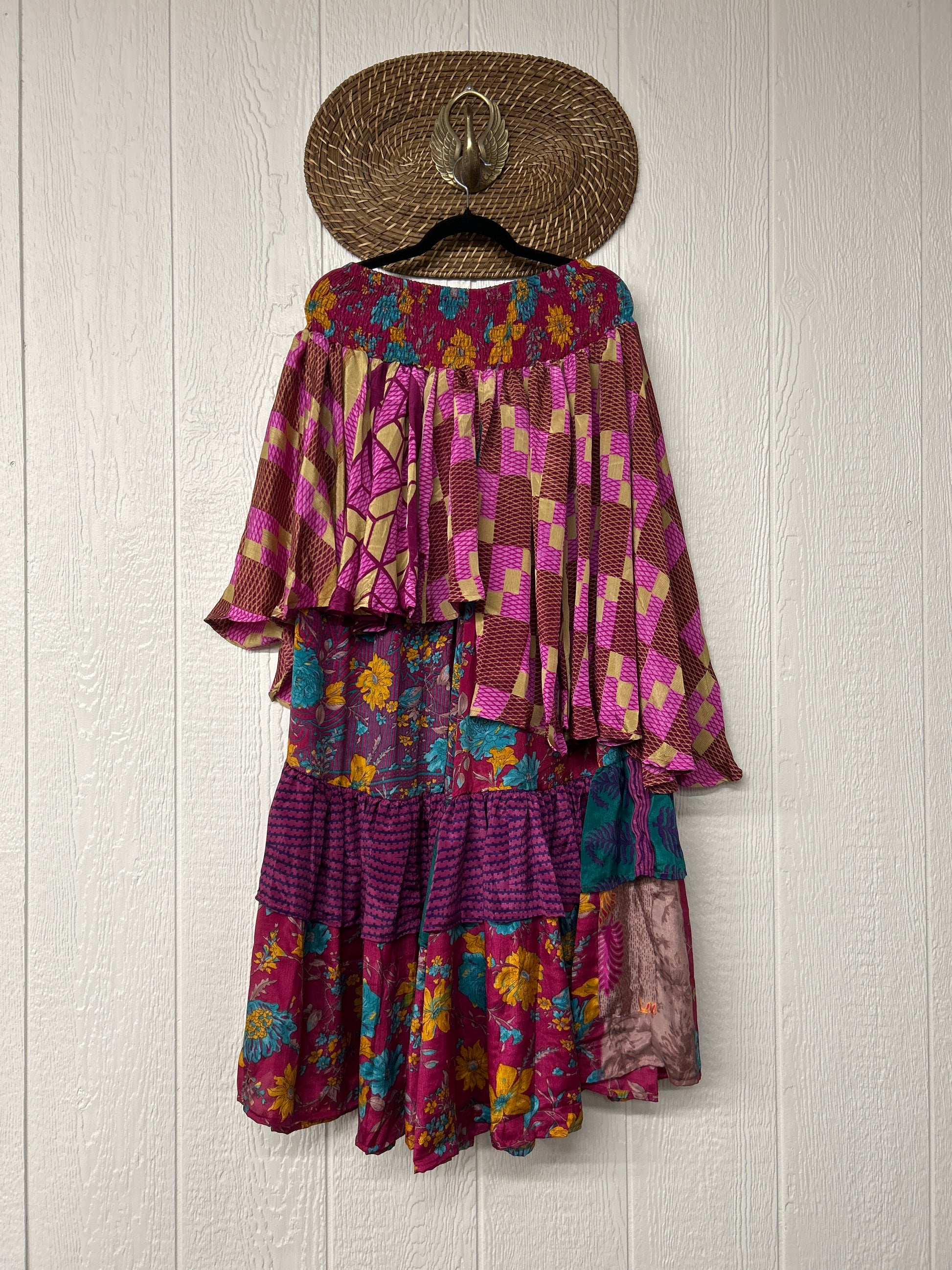 Crafted from vintage rasgulla sari these ethereal pants features stretchy waist, super wide legs, double tier hem and a skirt layer. these pants will make you want to dance! One size, recommended up to size 22/24 Crafted and sewn by families in a small village in Northern India providing work and a fair living. This product should be hand washed and line dried for longest life. For softness, fluff in the dryer on low heat after it has dried from hand washing. Disclosure: Our vintage styles have lived a full life before becoming the designs in our shop. Fabrics may have small threads or holes in the layers. Color inconsistency or small stains may be present. The saris are sewn together and extend the life of each design. Imperfections should be celebrated.