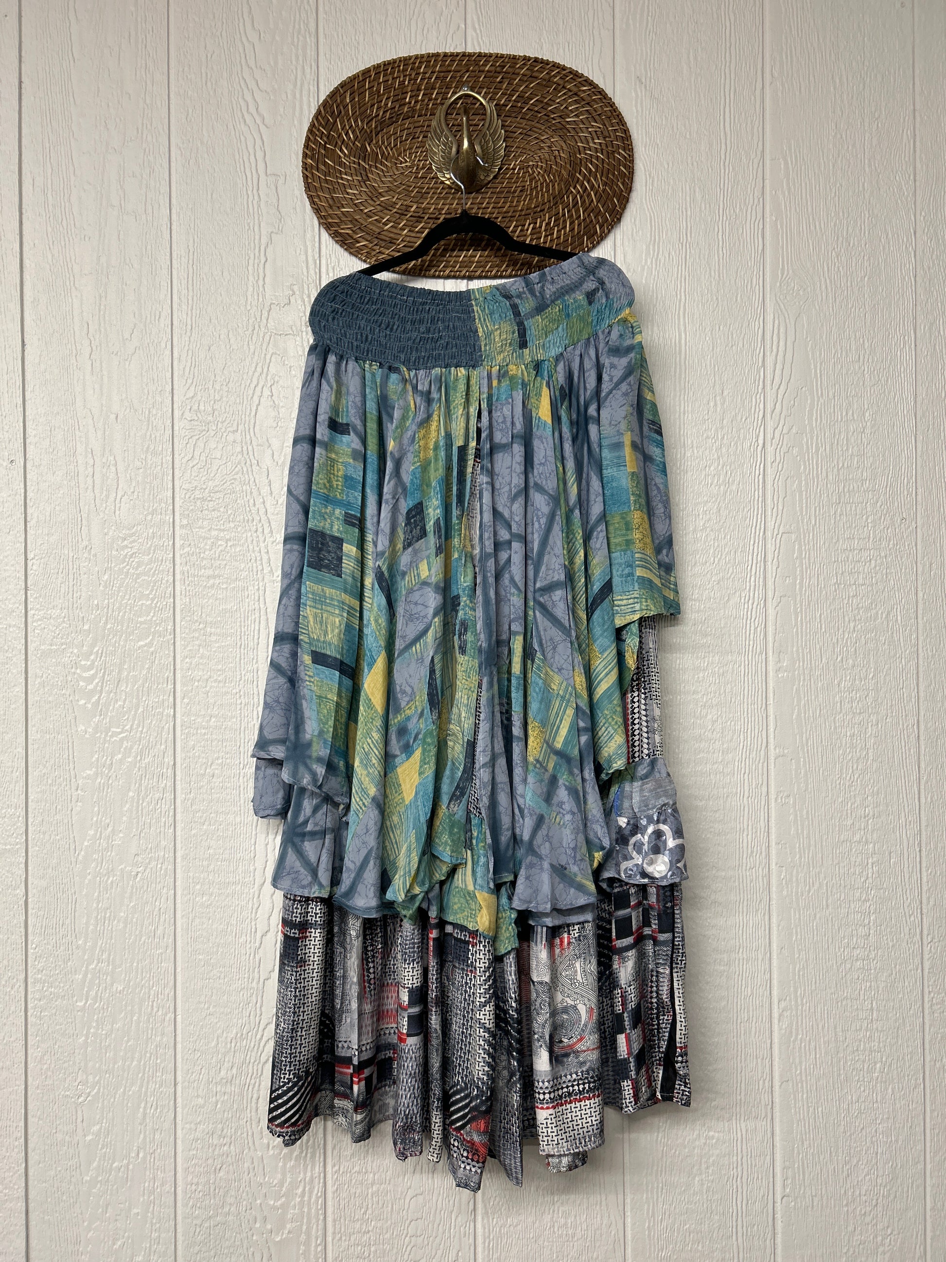 Crafted from vintage rasgulla sari these ethereal pants features stretchy waist, super wide legs, double tier hem and a skirt layer. these pants will make you want to dance! One size, recommended up to size 22/24 Crafted and sewn by families in a small village in Northern India providing work and a fair living. This product should be hand washed and line dried for longest life. For softness, fluff in the dryer on low heat after it has dried from hand washing. Disclosure: Our vintage styles have lived a full life before becoming the designs in our shop. Fabrics may have small threads or holes in the layers. Color inconsistency or small stains may be present. The saris are sewn together and extend the life of each design. Imperfections should be celebrated.