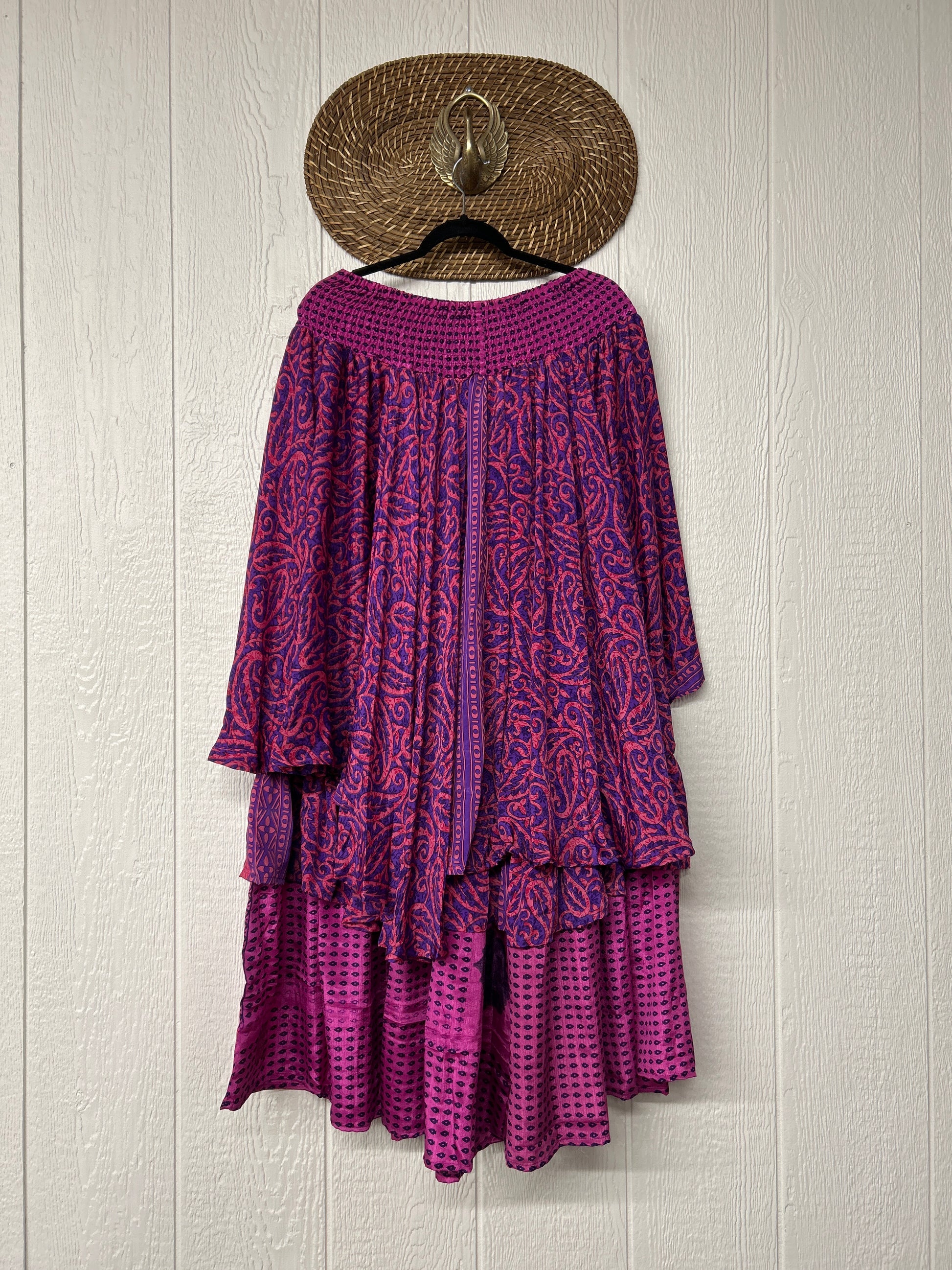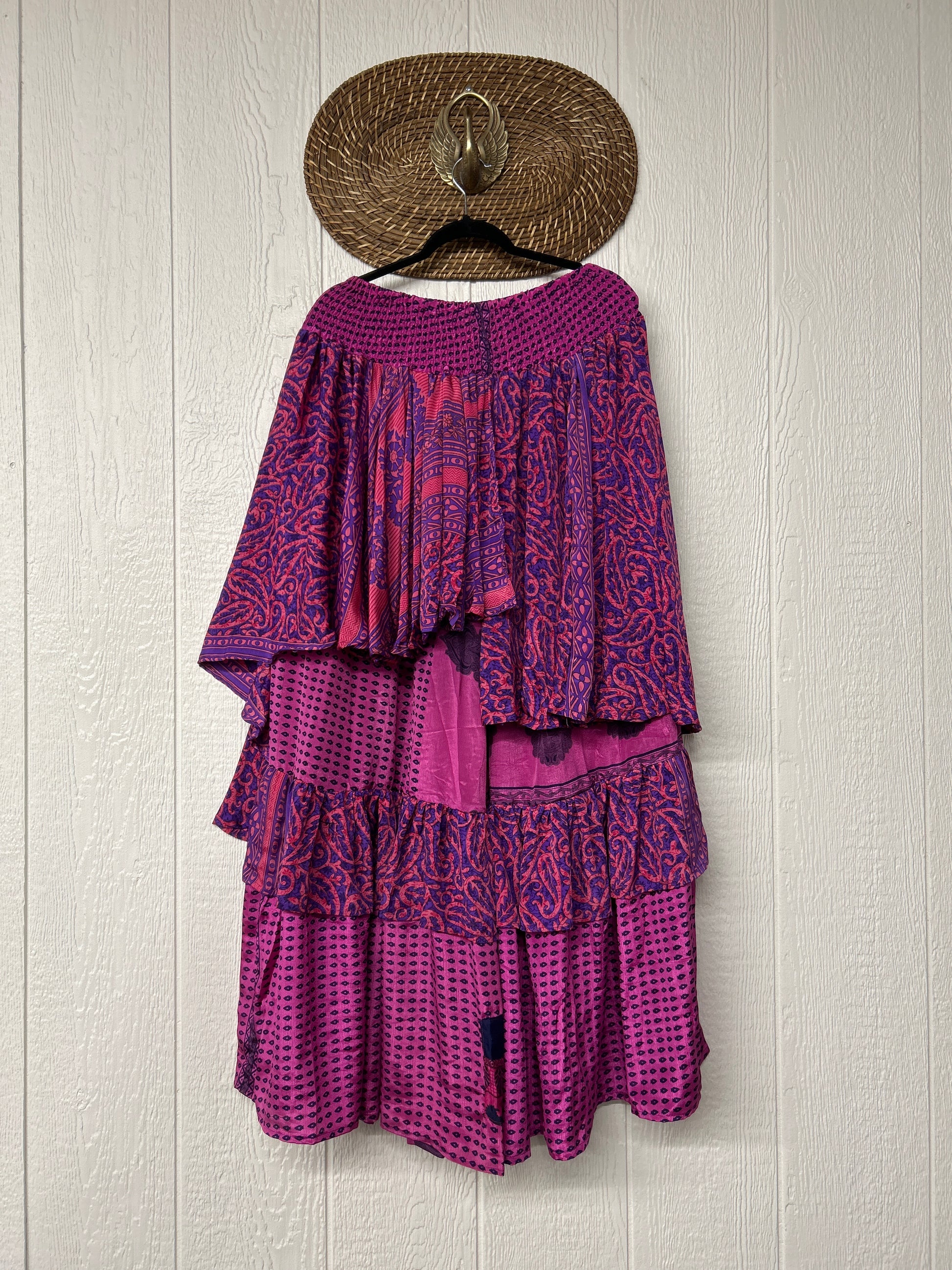 Crafted from vintage rasgulla sari these ethereal pants features stretchy waist, super wide legs, double tier hem and a skirt layer. these pants will make you want to dance! One size, recommended up to size 22/24 Crafted and sewn by families in a small village in Northern India providing work and a fair living. This product should be hand washed and line dried for longest life. For softness, fluff in the dryer on low heat after it has dried from hand washing. Disclosure: Our vintage styles have lived a full life before becoming the designs in our shop. Fabrics may have small threads or holes in the layers. Color inconsistency or small stains may be present. The saris are sewn together and extend the life of each design. Imperfections should be celebrated.