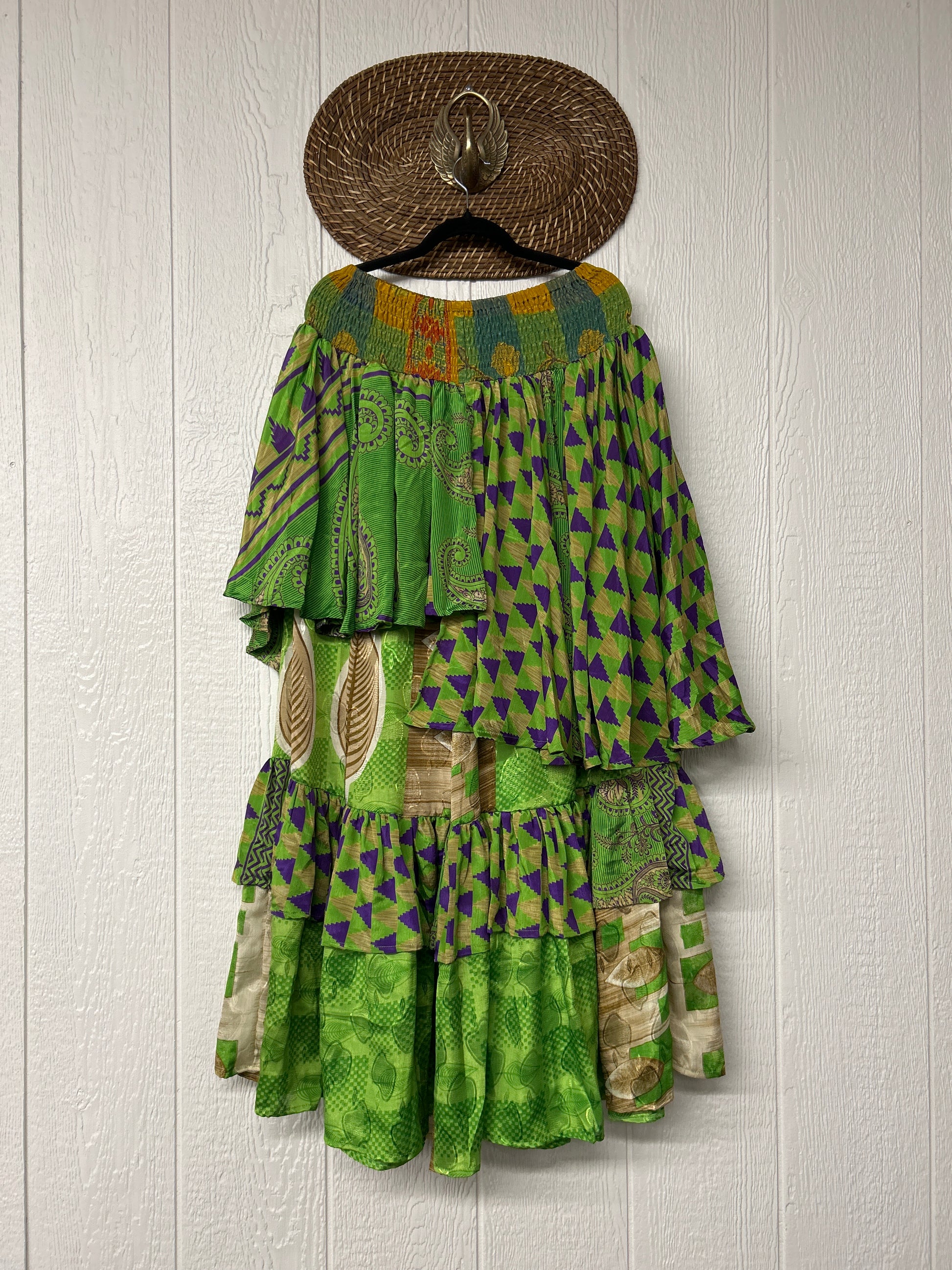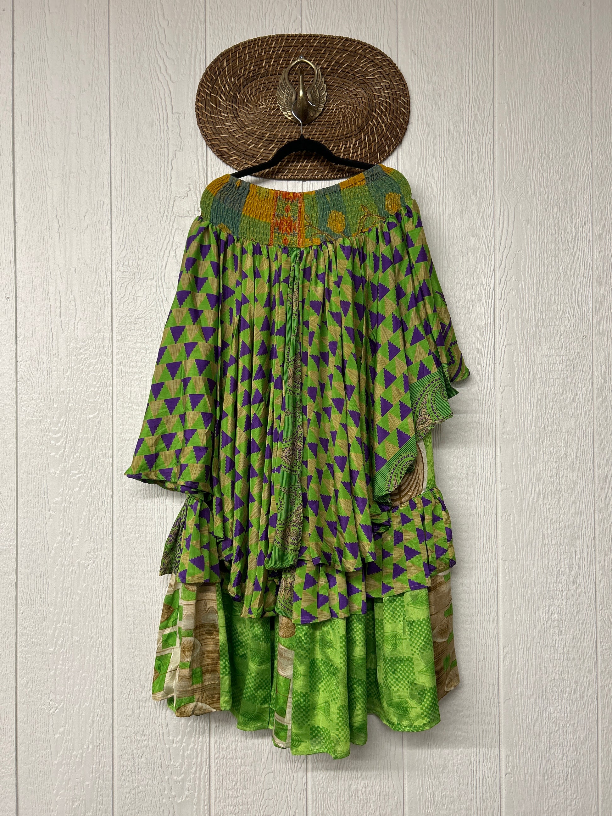 Crafted from vintage rasgulla sari these ethereal pants features stretchy waist, super wide legs, double tier hem and a skirt layer. these pants will make you want to dance! One size, recommended up to size 22/24 Crafted and sewn by families in a small village in Northern India providing work and a fair living. This product should be hand washed and line dried for longest life. For softness, fluff in the dryer on low heat after it has dried from hand washing. Disclosure: Our vintage styles have lived a full life before becoming the designs in our shop. Fabrics may have small threads or holes in the layers. Color inconsistency or small stains may be present. The saris are sewn together and extend the life of each design. Imperfections should be celebrated.