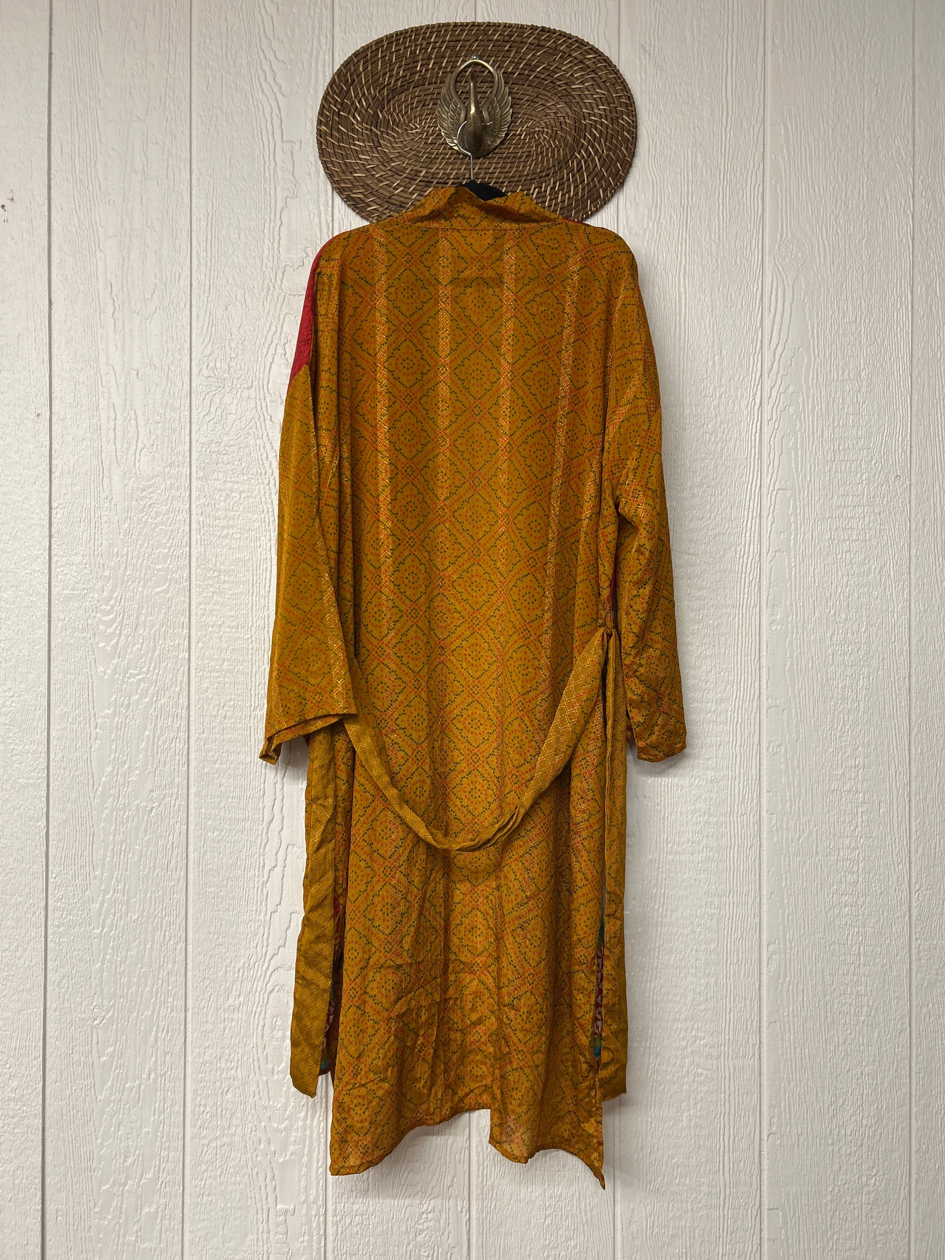Disclosure: Our vintage styles have lived a full life before becoming the designs in our shop. Fabrics may have small threads or holes in the layers. Color inconsistency or small stains may be present. The saris are sewn together and extend the life of each design.