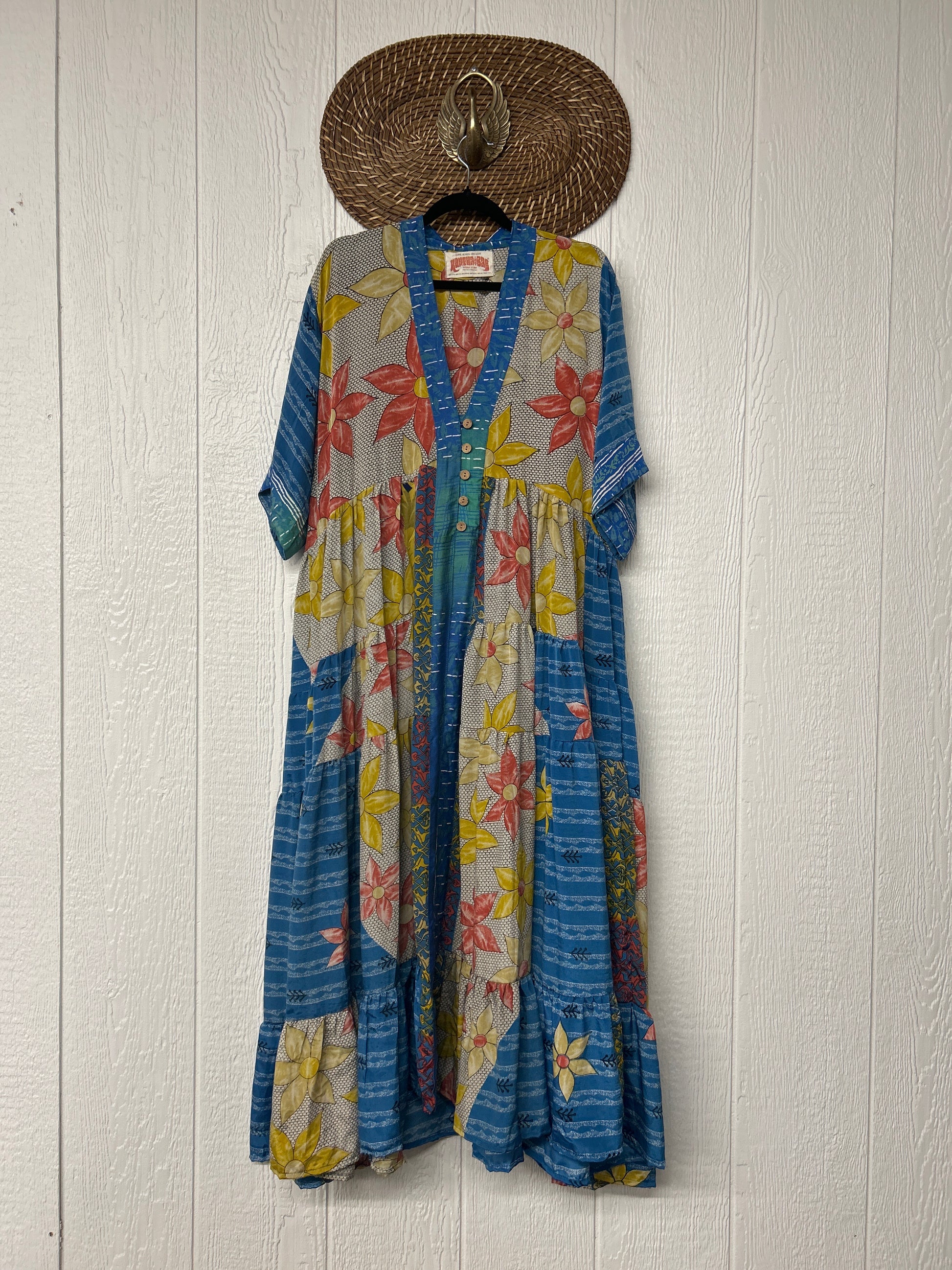 Disclosure: Our vintage styles have lived a full life before becoming the designs in our shop. Fabrics may have small threads or holes in the layers. Color inconsistency or small stains may be present. The saris are sewn together and extend the life of each design. Imperfections should be celebrated.