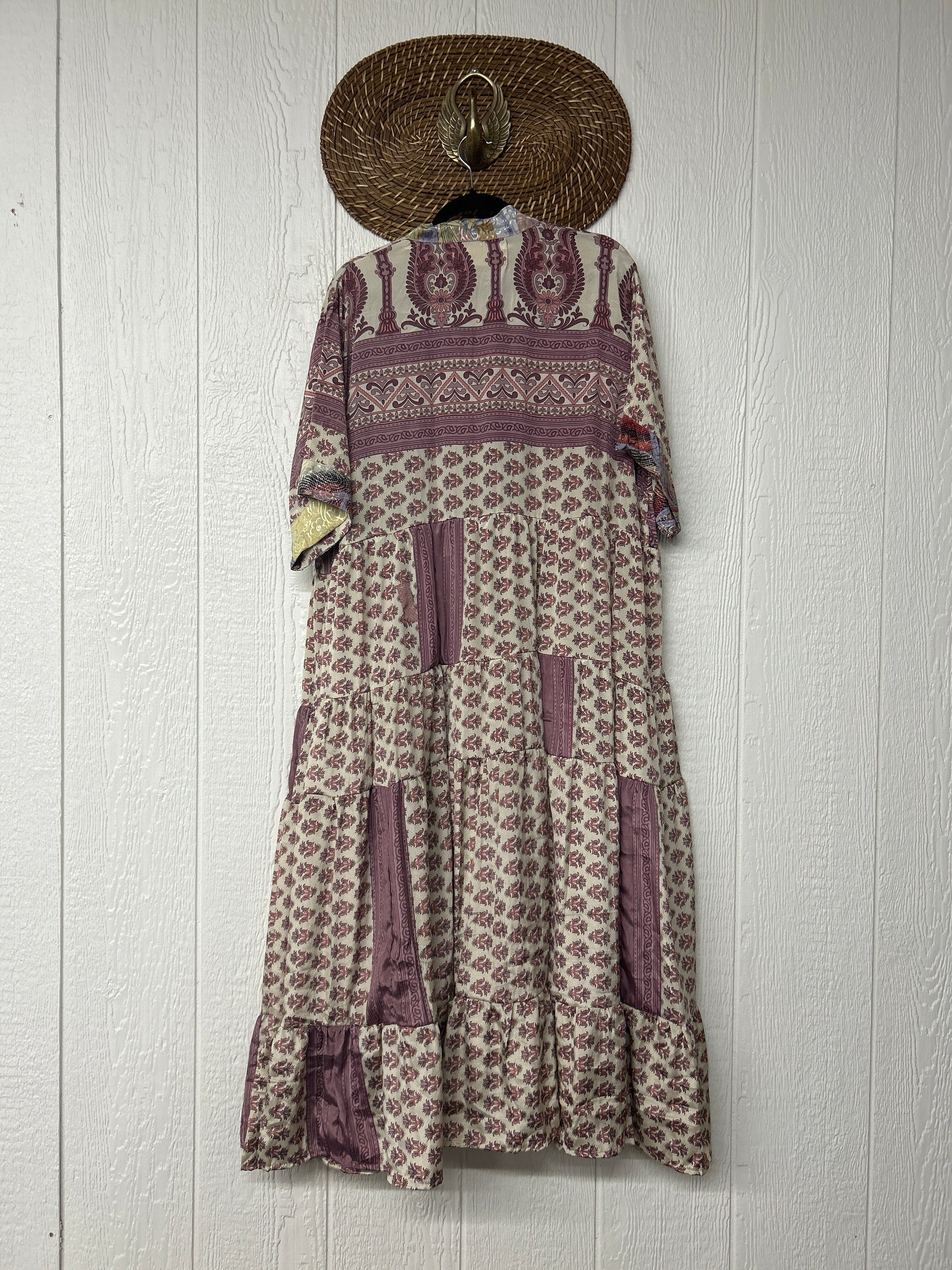 Disclosure: Our vintage styles have lived a full life before becoming the designs in our shop. Fabrics may have small threads or holes in the layers. Color inconsistency or small stains may be present. The saris are sewn together and extend the life of each design. Imperfections should be celebrated.