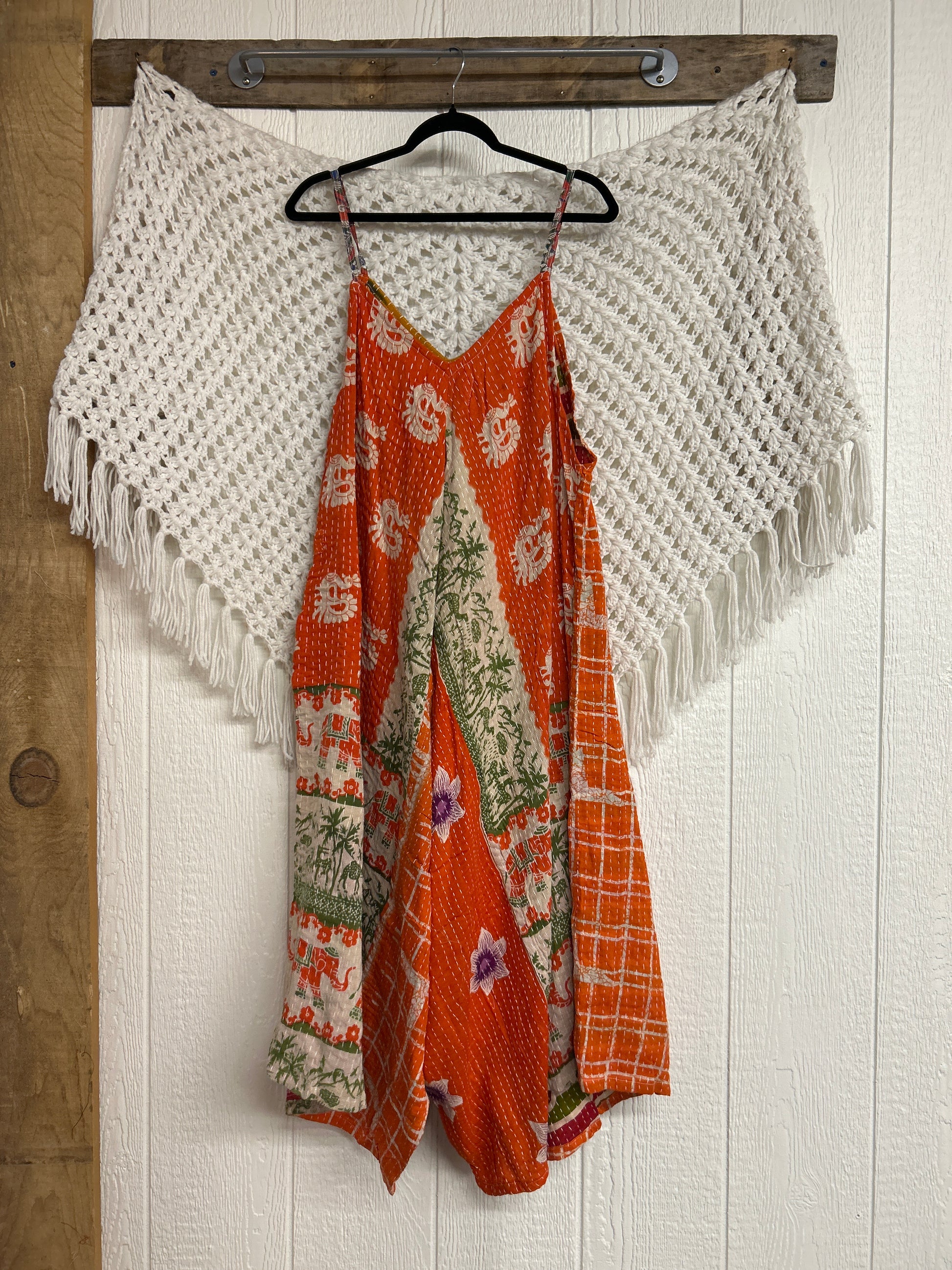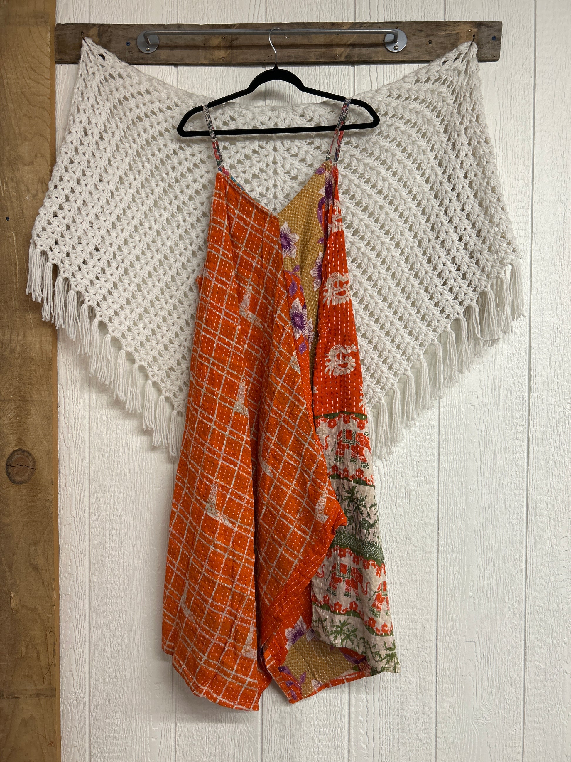 Disclosure: Our vintage styles have lived a full life before becoming the designs in our shop. Fabrics may have small threads or holes in the layers. Color inconsistency or small stains may be present. Imperfections should be celebrated.
