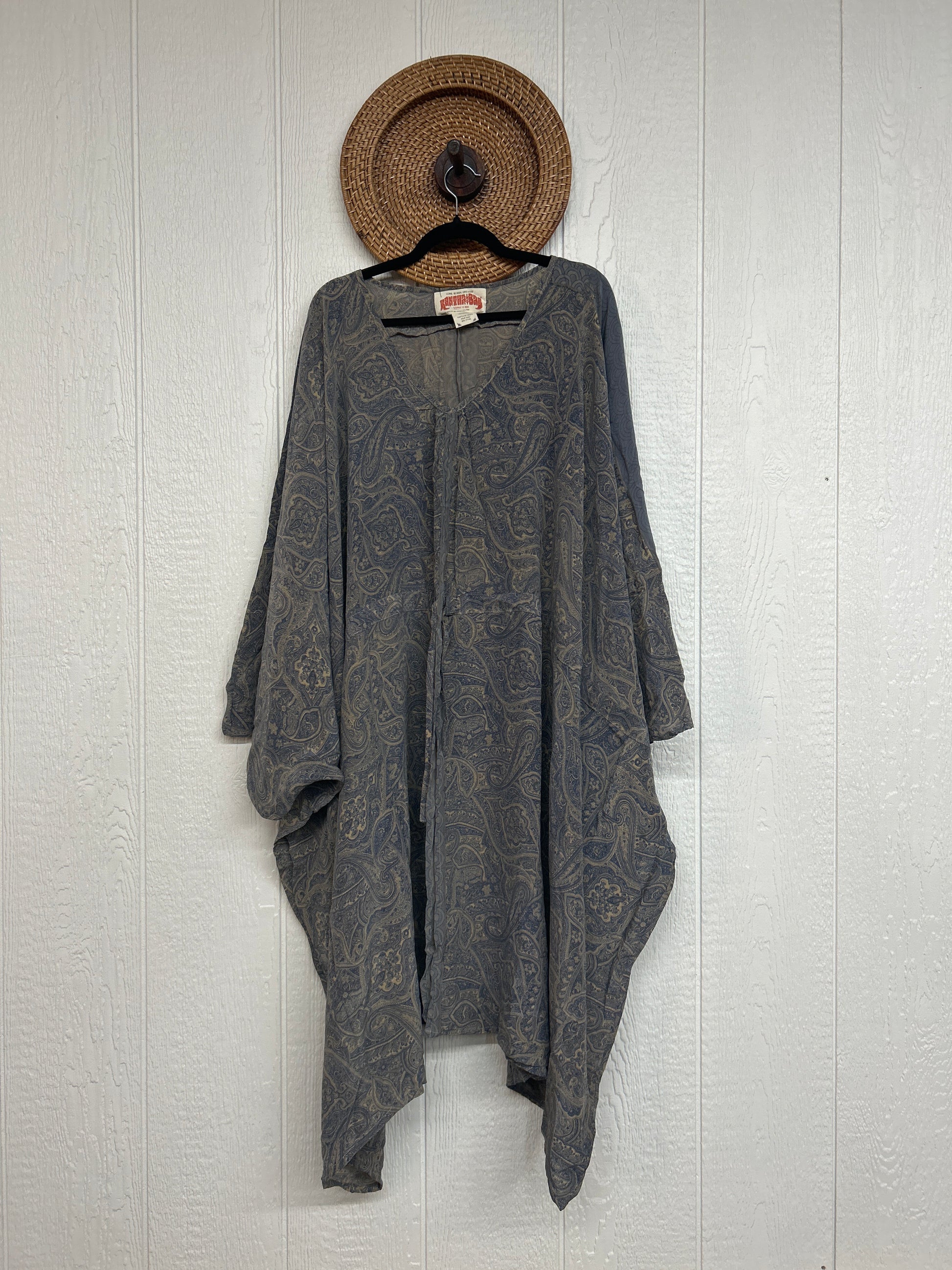 Our Sacred Split Tunic is made from ultra lux vintage crepe sari. Features a rounded neckline, split front and drawstring at the waist to customize how full you want your tunic to be. Layer this dream piece over bells or wear her with a slip as a dress to feel like a total rockstar!