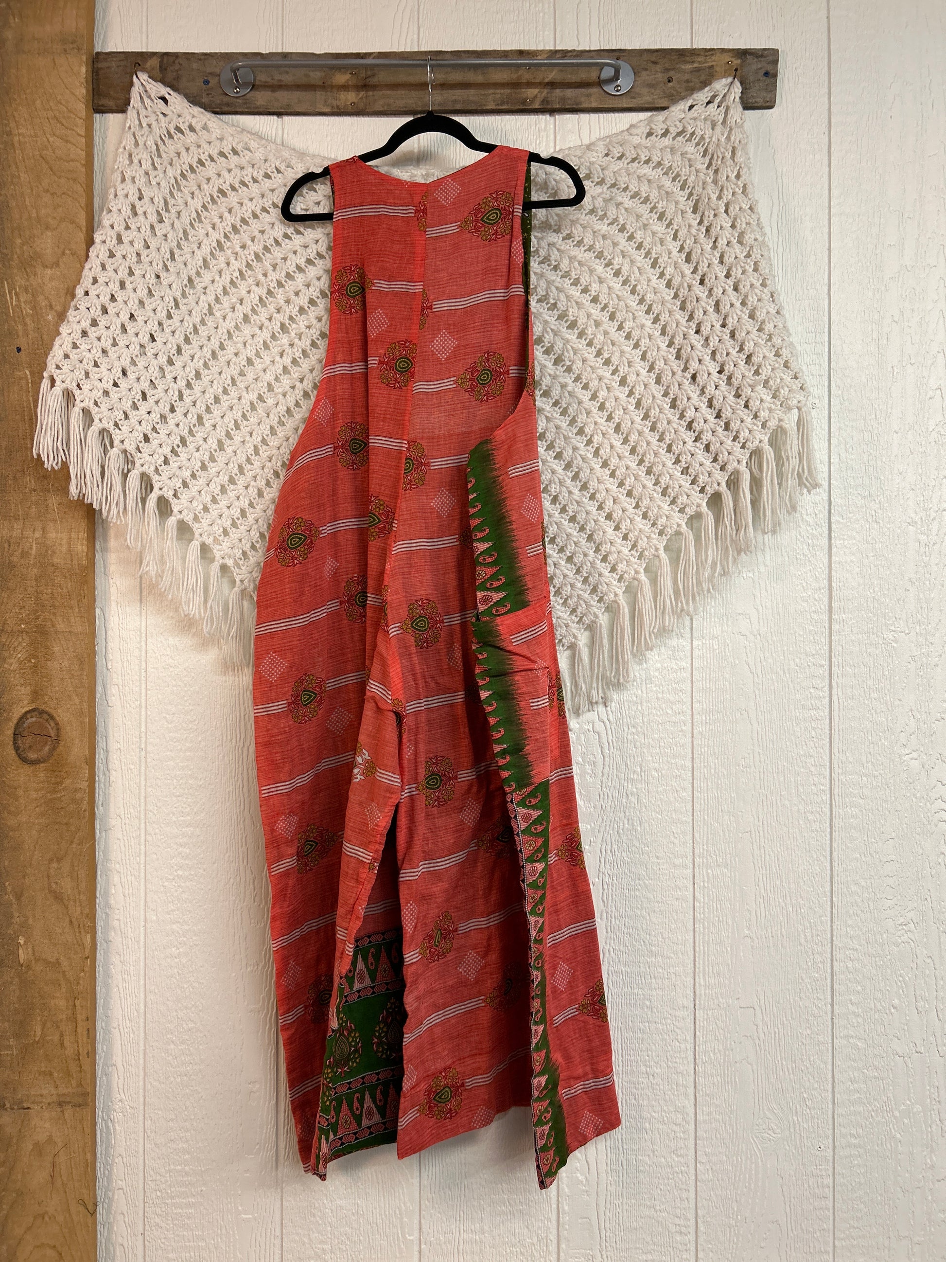 Disclosure: Our vintage styles have lived a full life before becoming the designs in our shop. Fabrics may have small threads or holes in the layers. Color inconsistency or small stains may be present. The saris are sewn together and extend the life of each design. Imperfections should be celebrated.