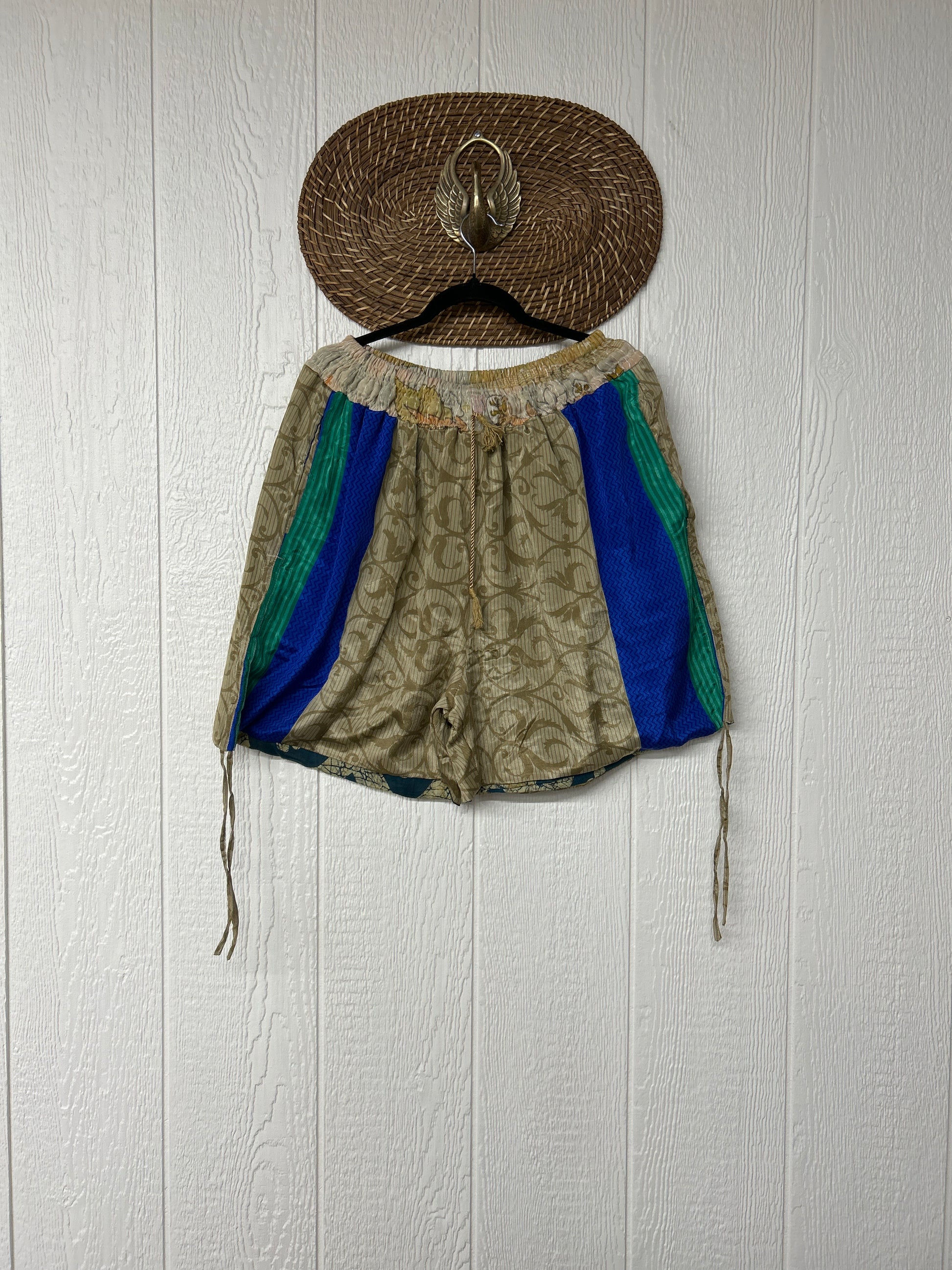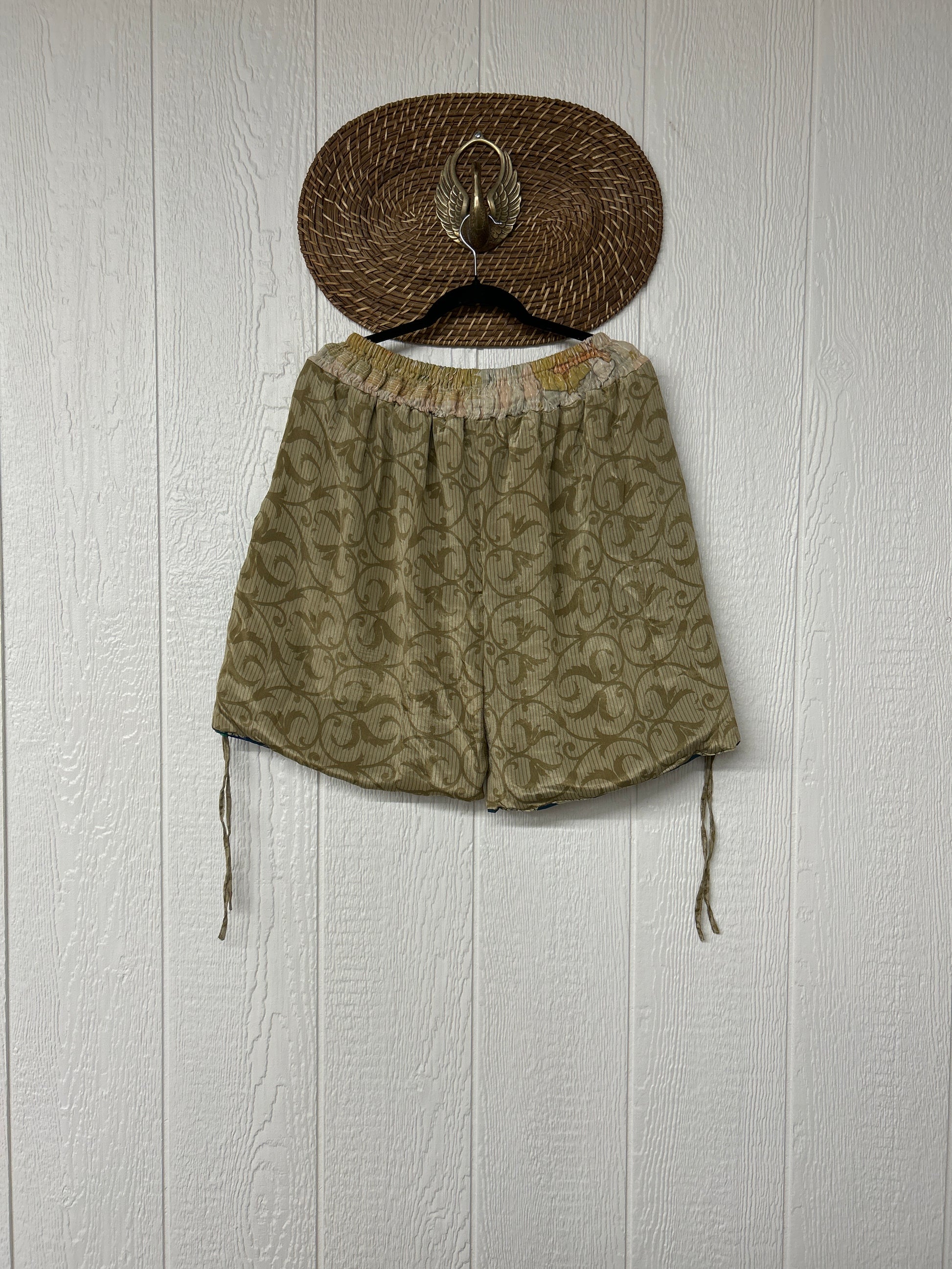 Crafted from our ultra vintage lux rasgulla silk sari with cotton sari lining. Features interior pockets, a Kantha smocked waistband that is soft against the skin with an adjustable drawstring. This fully customizable piece also has a cinch drawstring on the outer leg so you can make the shorts longer or shorter. We are obsessed!