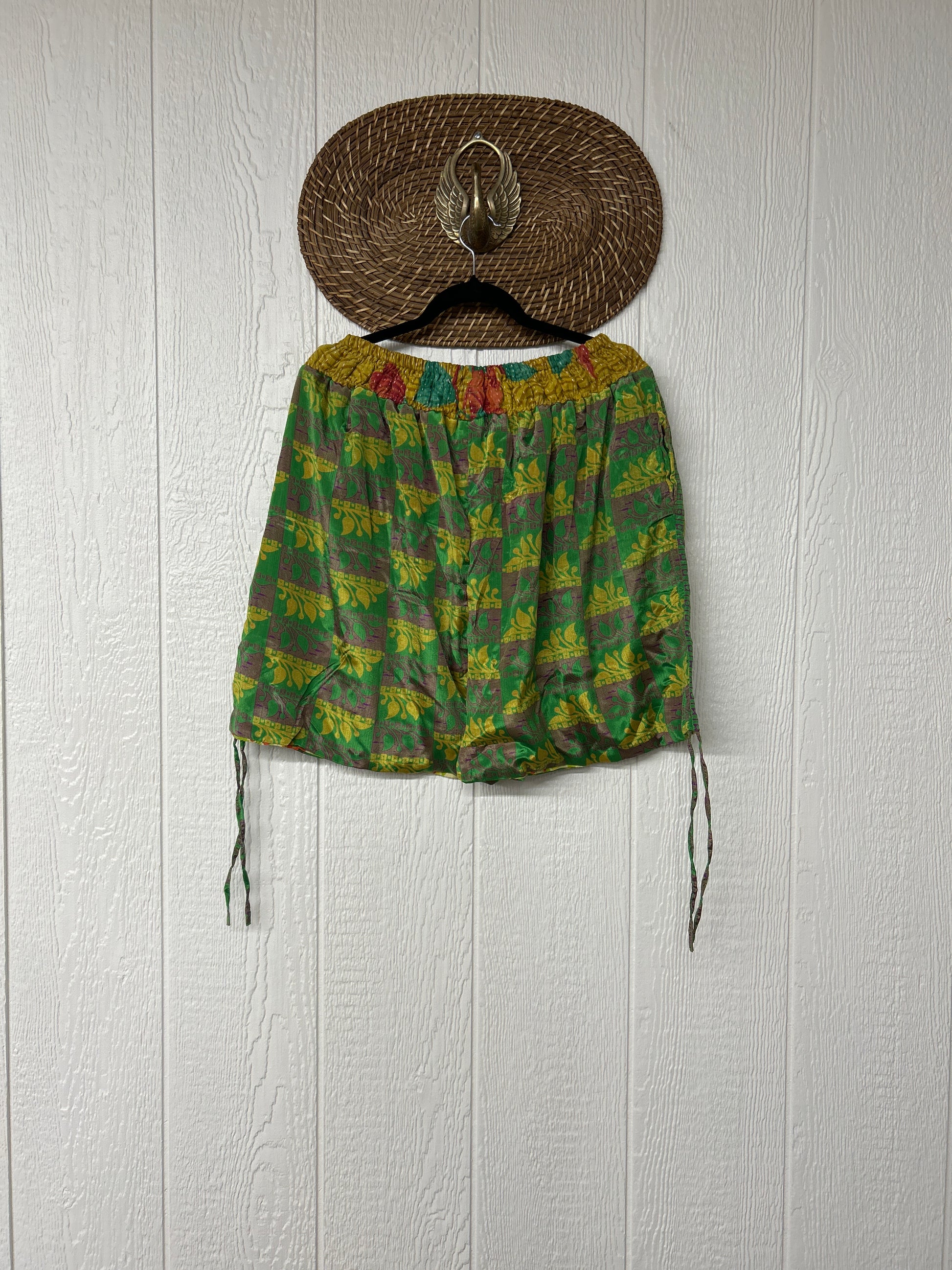 Crafted from our ultra vintage lux rasgulla silk sari with cotton sari lining. Features interior pockets, a Kantha smocked waistband that is soft against the skin with an adjustable drawstring. This fully customizable piece also has a cinch drawstring on the outer leg so you can make the shorts longer or shorter. We are obsessed!