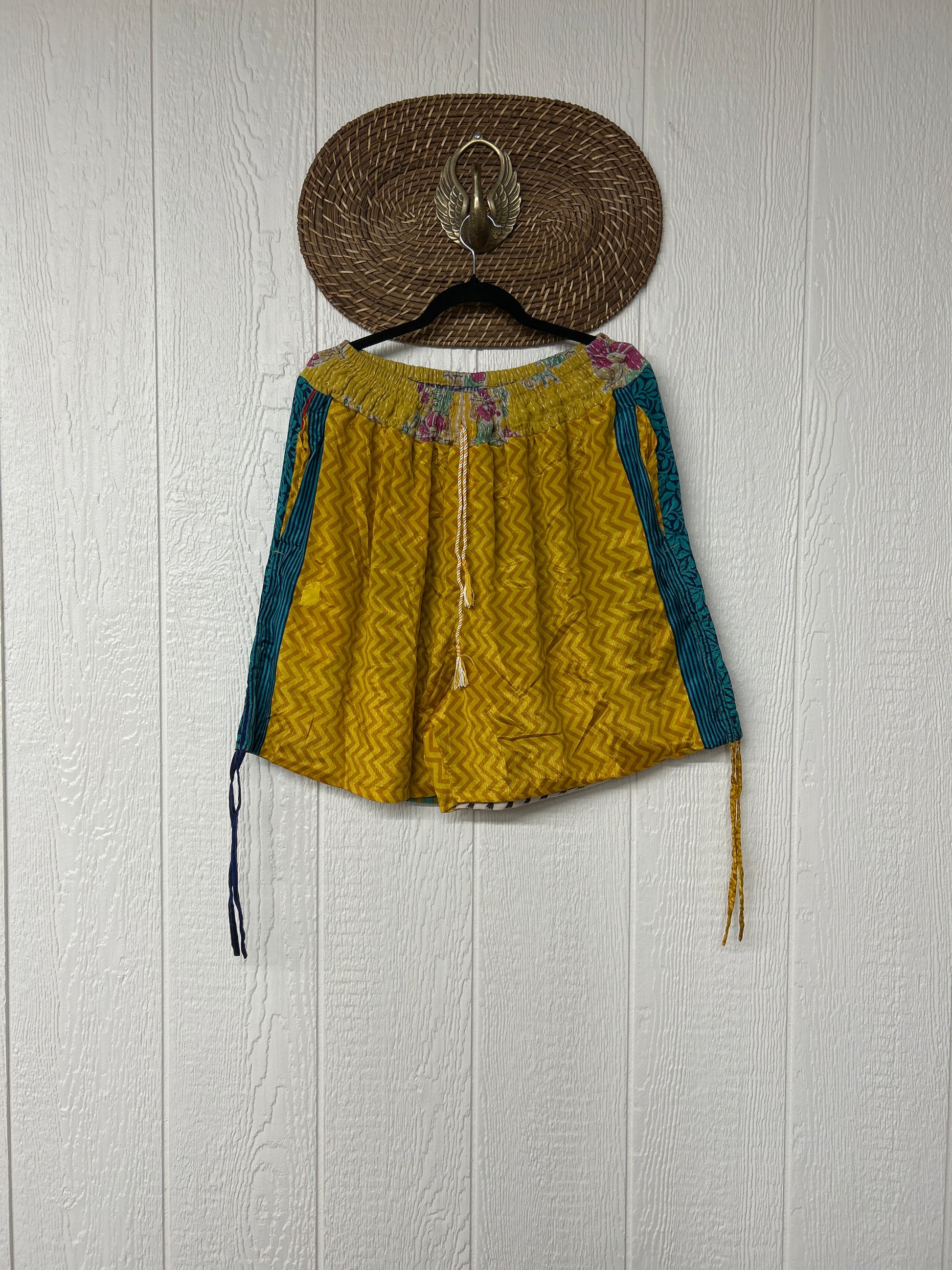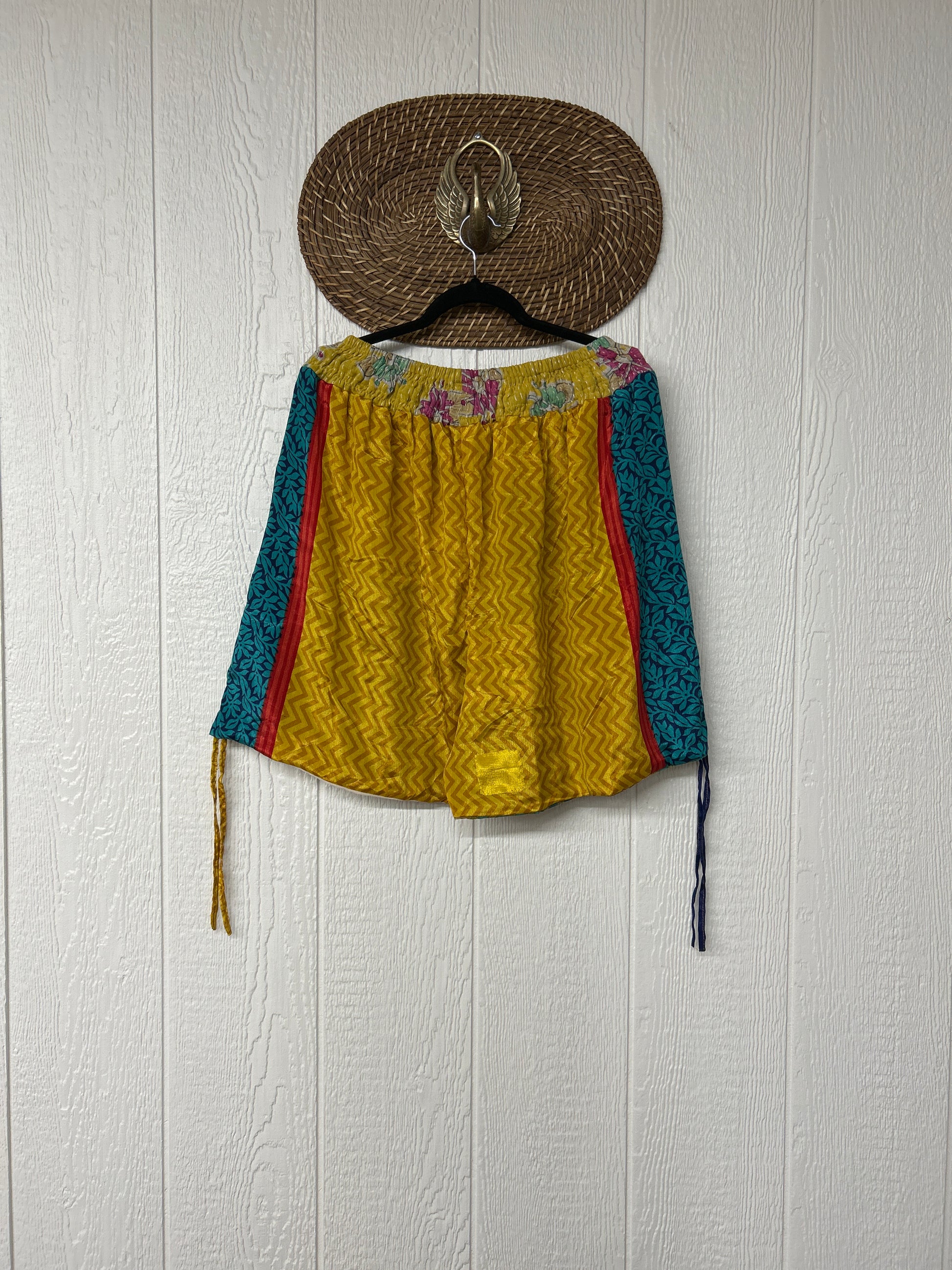 Crafted from our ultra vintage lux rasgulla silk sari with cotton sari lining. Features interior pockets, a Kantha smocked waistband that is soft against the skin with an adjustable drawstring. This fully customizable piece also has a cinch drawstring on the outer leg so you can make the shorts longer or shorter. We are obsessed!