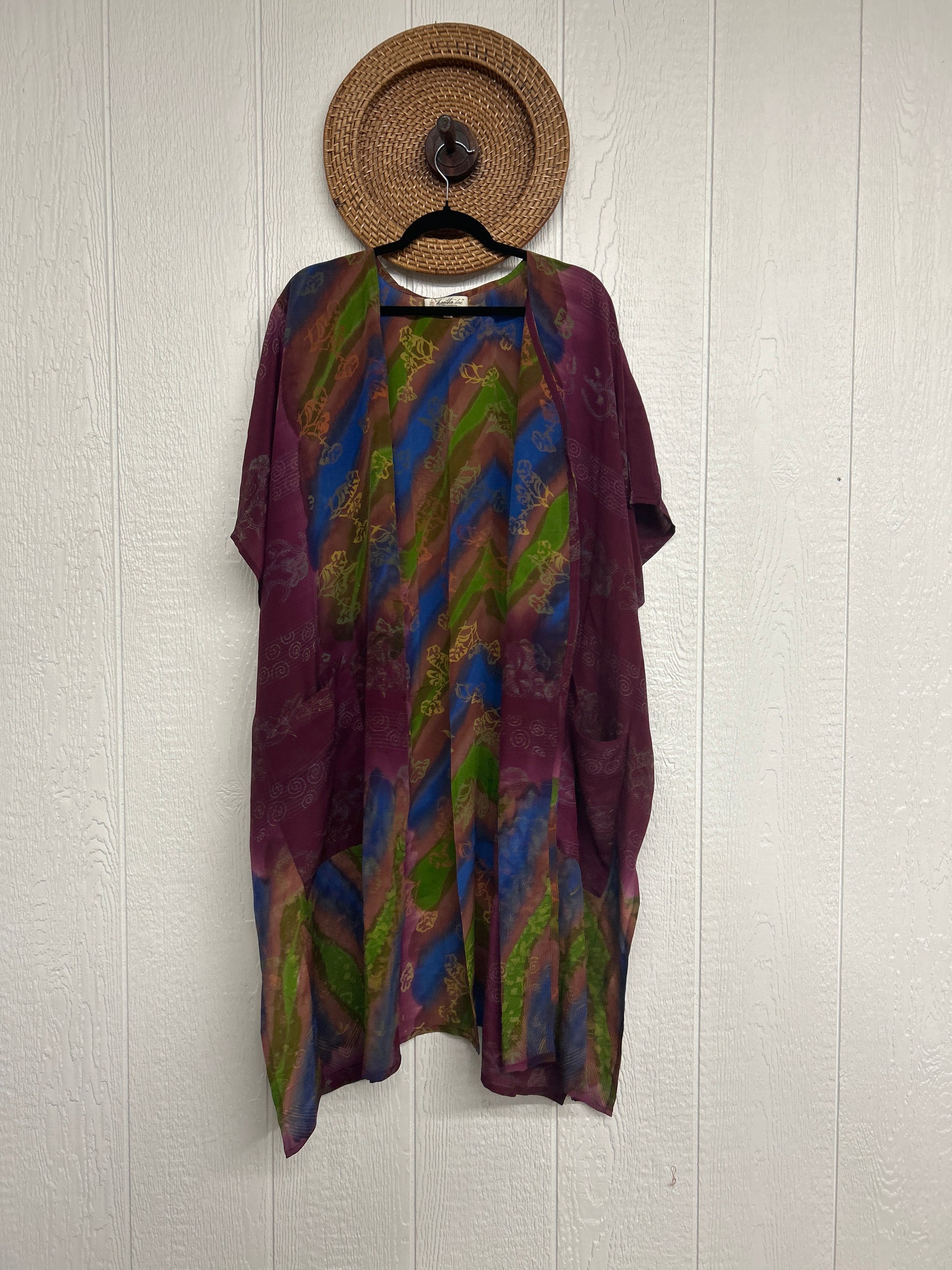 A beautifully stunning lightweight kimono made with vintage Crepe Sari.