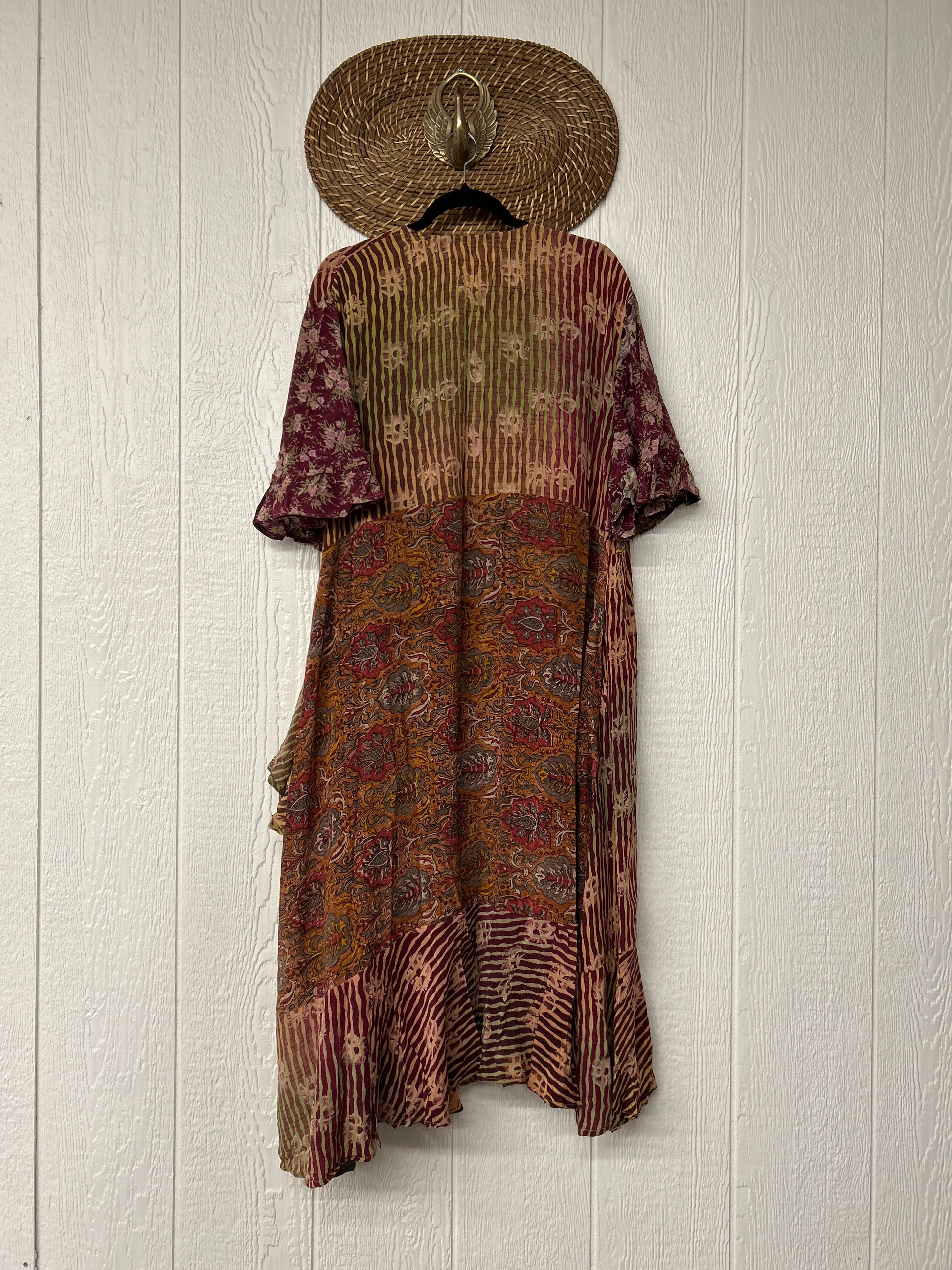 The Summer Flourish Wrap Dress is crafted from our ultra lux vintage crepe sari. Features short bell sleeves, ruffle details throughout and a built in sash belt which wraps around the body to make this beauty fully customizable for a wide range of sizes. You can also wear the Flourish open as a vibey kimono over your favorite outfit. We're obsessed!
