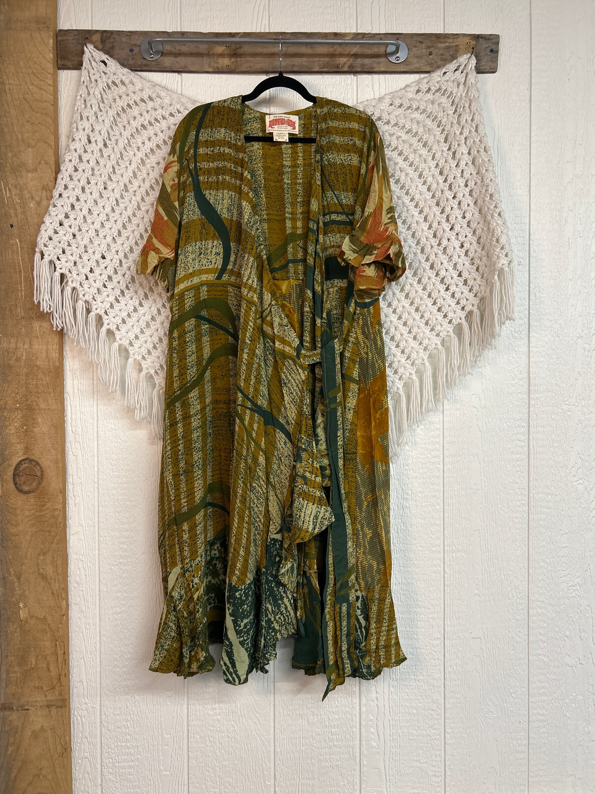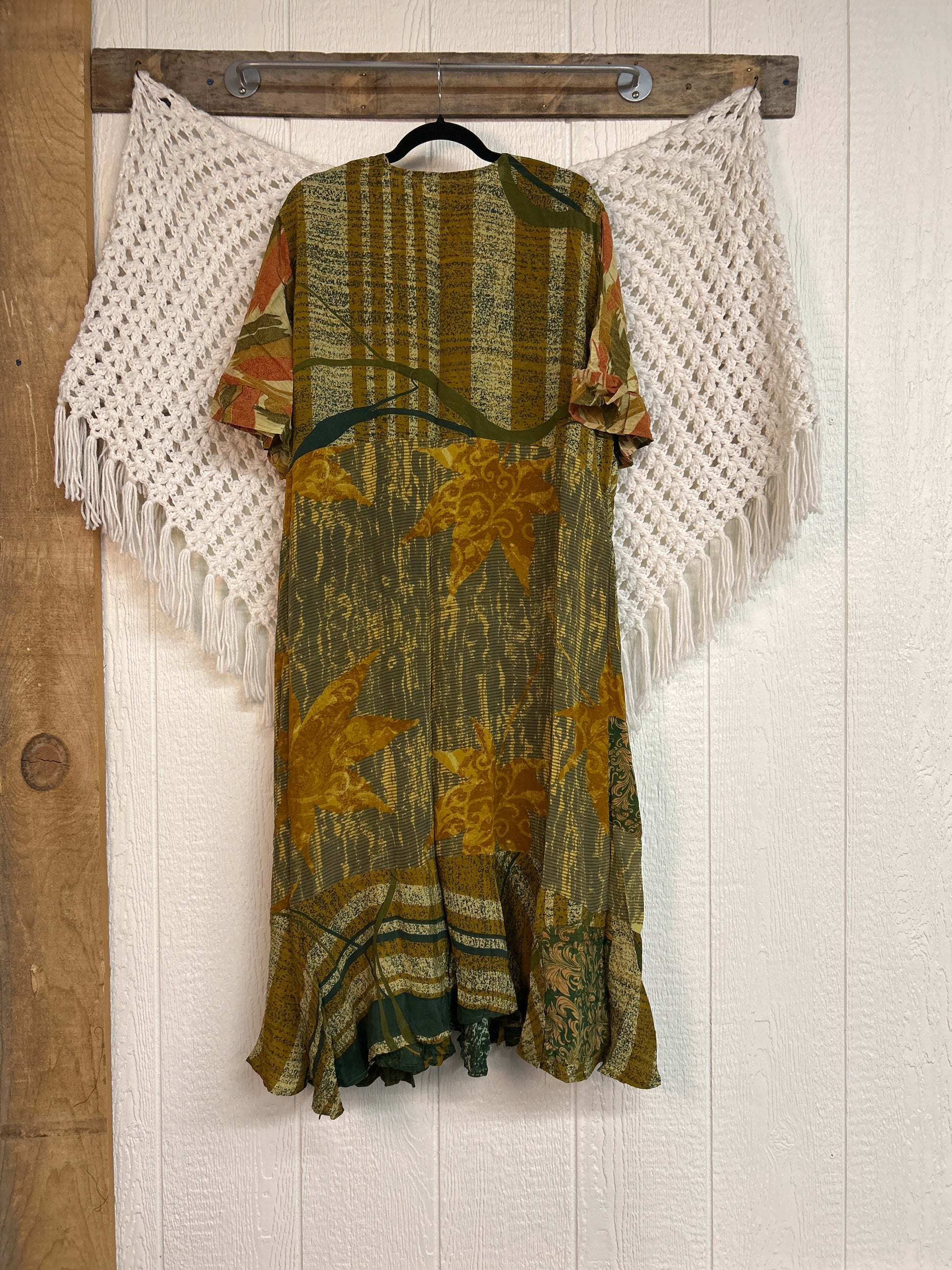 The Summer Flourish Wrap Dress is crafted from our ultra lux vintage crepe sari. Features short bell sleeves, ruffle details throughout and a built in sash belt which wraps around the body to make this beauty fully customizable for a wide range of sizes. You can also wear the Flourish open as a vibey kimono over your favorite outfit. We're obsessed!