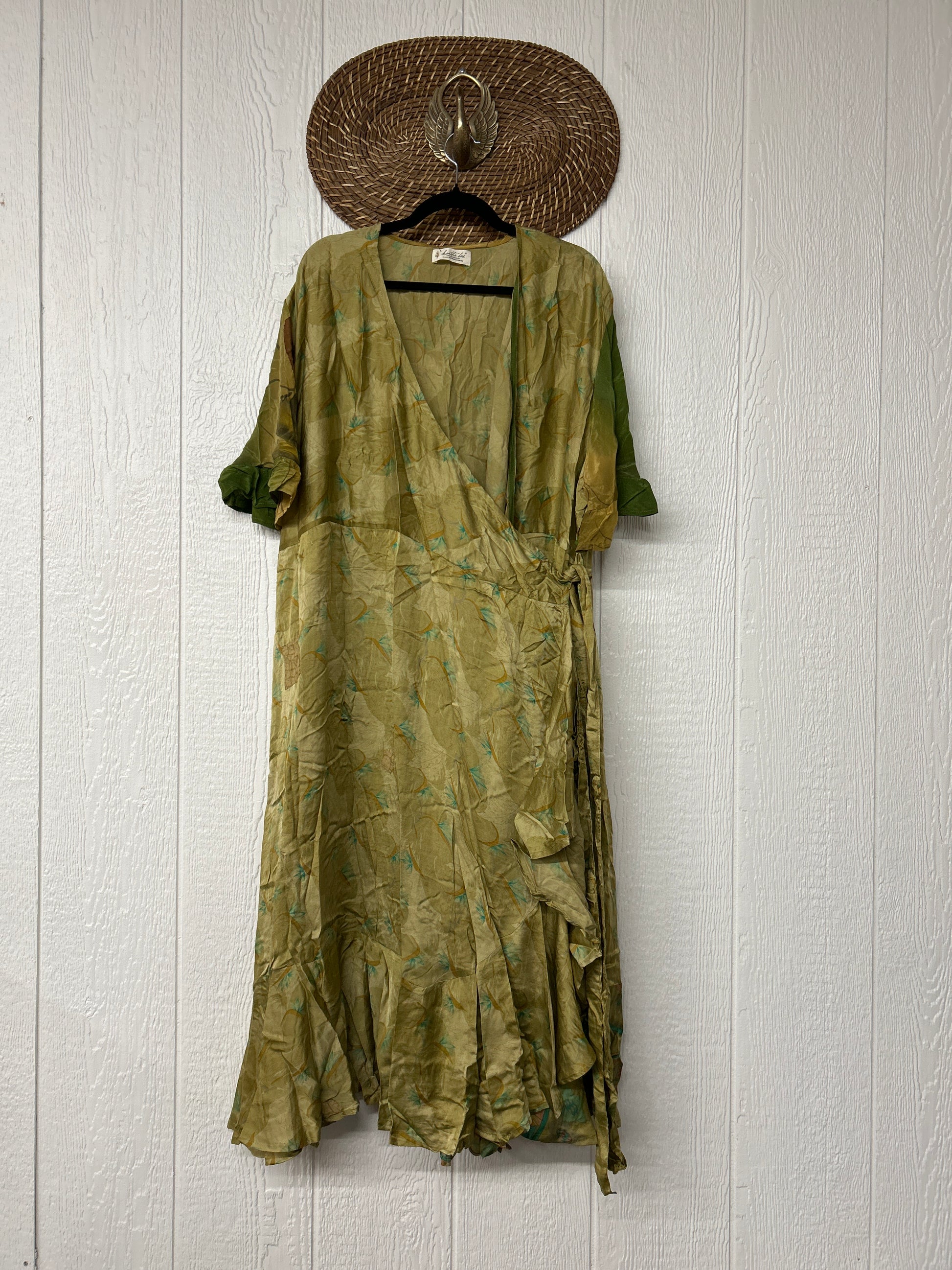 The Summer Flourish Wrap Dress is crafted from our ultra lux vintage crepe sari. Features short bell sleeves, ruffle details throughout and a built in sash belt which wraps around the body to make this beauty fully customizable for a wide range of sizes. You can also wear the Flourish open as a vibey kimono over your favorite outfit. We're obsessed!