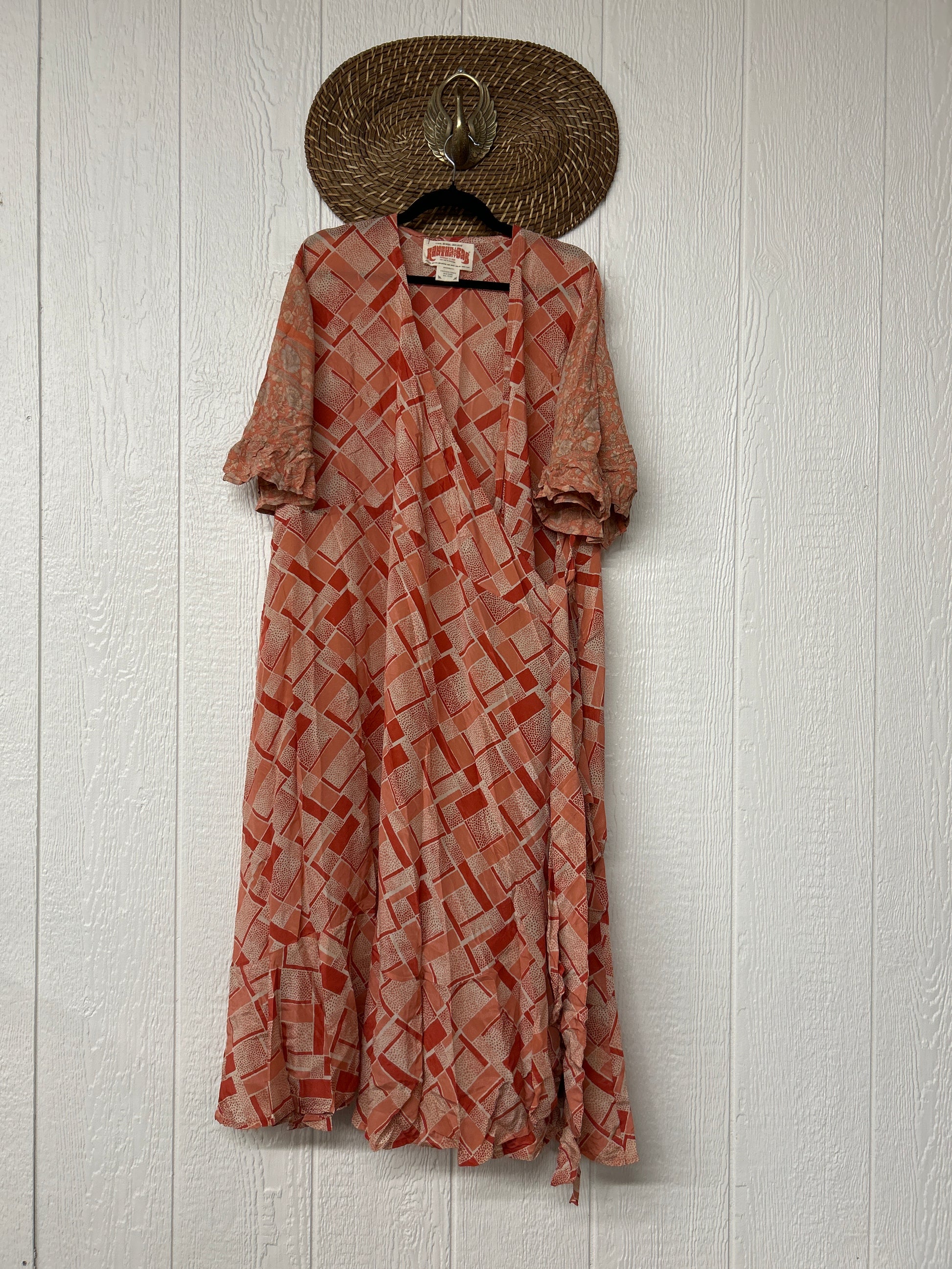 The Summer Flourish Wrap Dress is crafted from our ultra lux vintage crepe sari. Features short bell sleeves, ruffle details throughout and a built in sash belt which wraps around the body to make this beauty fully customizable for a wide range of sizes. You can also wear the Flourish open as a vibey kimono over your favorite outfit. We're obsessed!