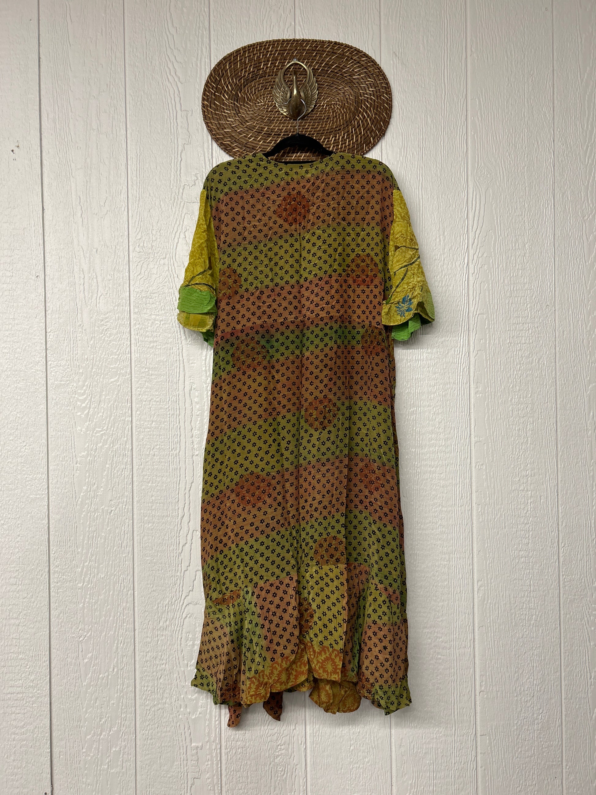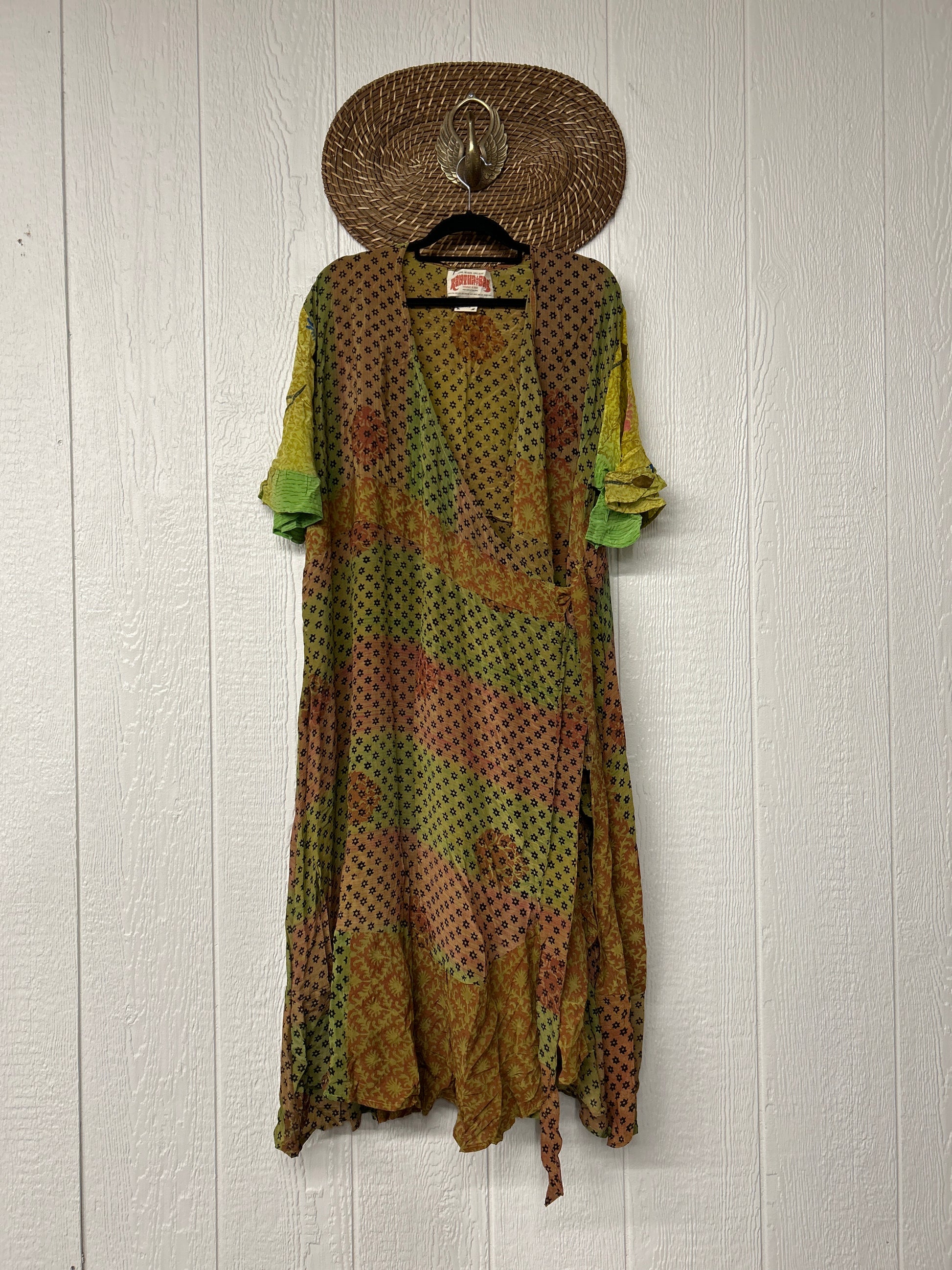 The Summer Flourish Wrap Dress is crafted from our ultra lux vintage crepe sari. Features short bell sleeves, ruffle details throughout and a built in sash belt which wraps around the body to make this beauty fully customizable for a wide range of sizes. You can also wear the Flourish open as a vibey kimono over your favorite outfit. We're obsessed!