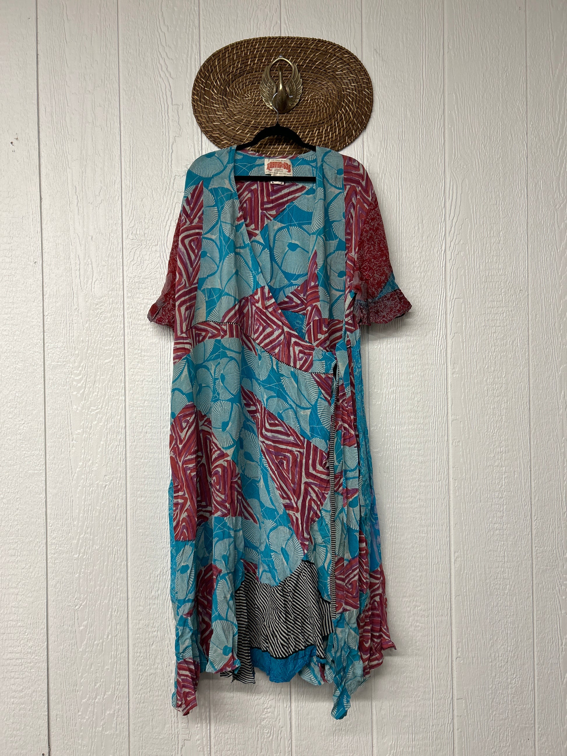 The Summer Flourish Wrap Dress is crafted from our ultra lux vintage crepe sari. Features short bell sleeves, ruffle details throughout and a built in sash belt which wraps around the body to make this beauty fully customizable for a wide range of sizes. You can also wear the Flourish open as a vibey kimono over your favorite outfit. We're obsessed!