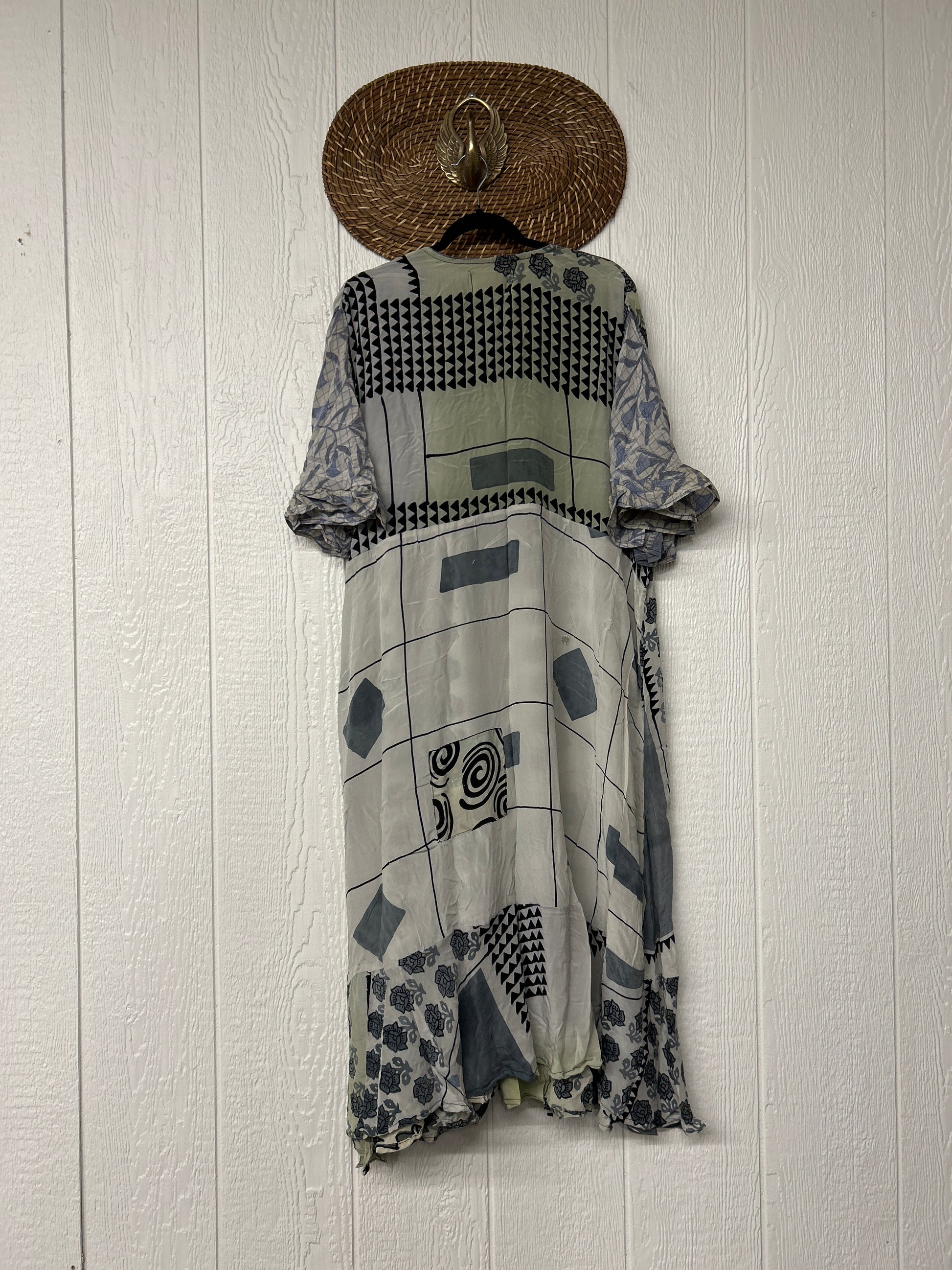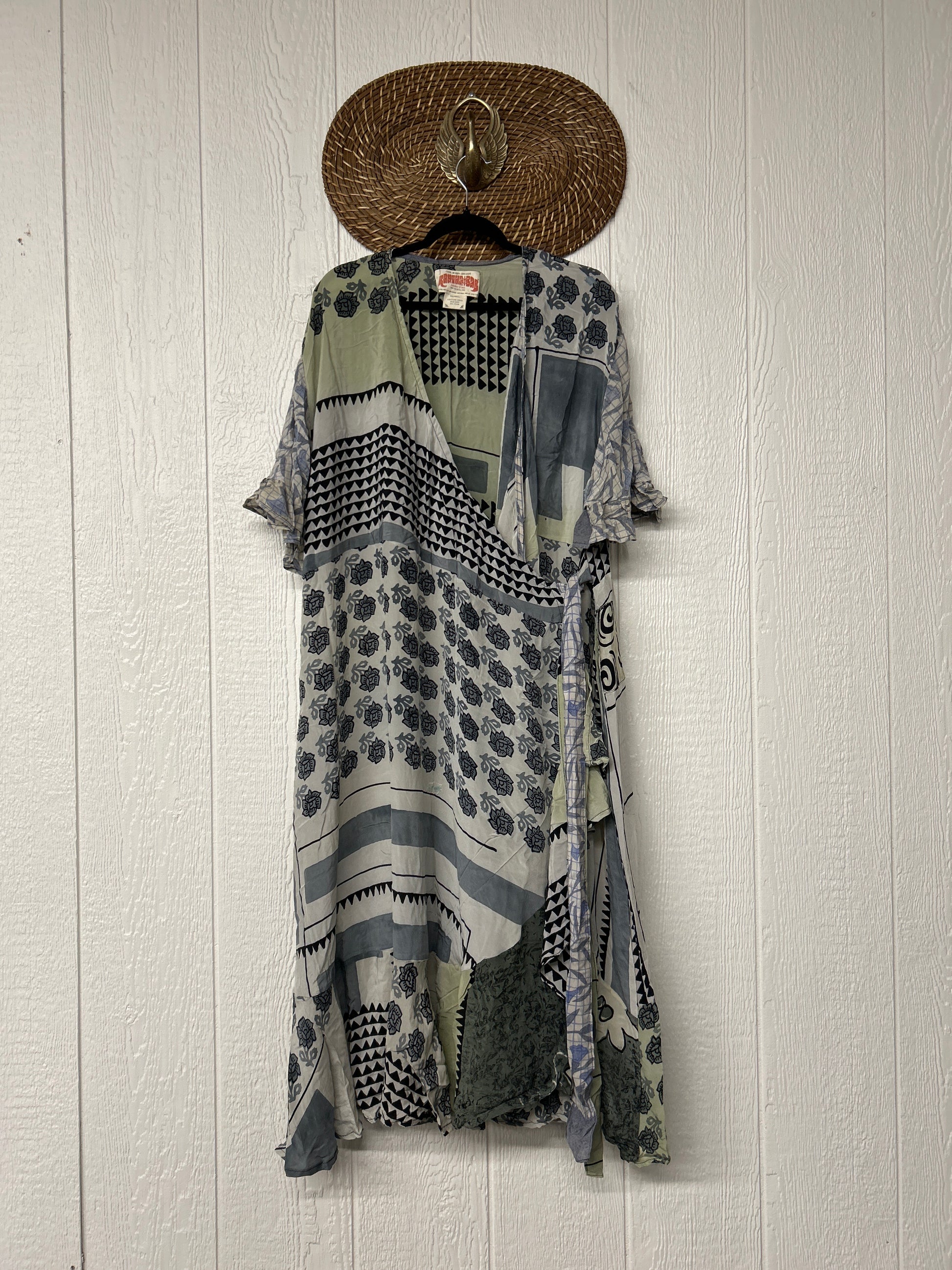 The Summer Flourish Wrap Dress is crafted from our ultra lux vintage crepe sari. Features short bell sleeves, ruffle details throughout and a built in sash belt which wraps around the body to make this beauty fully customizable for a wide range of sizes. You can also wear the Flourish open as a vibey kimono over your favorite outfit. We're obsessed!