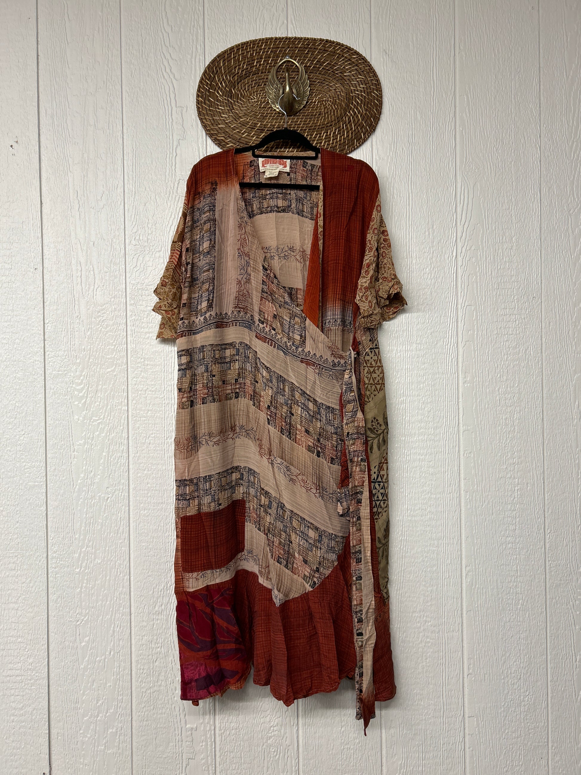 The Summer Flourish Wrap Dress is crafted from our ultra lux vintage crepe sari. Features short bell sleeves, ruffle details throughout and a built in sash belt which wraps around the body to make this beauty fully customizable for a wide range of sizes. You can also wear the Flourish open as a vibey kimono over your favorite outfit. We're obsessed!
