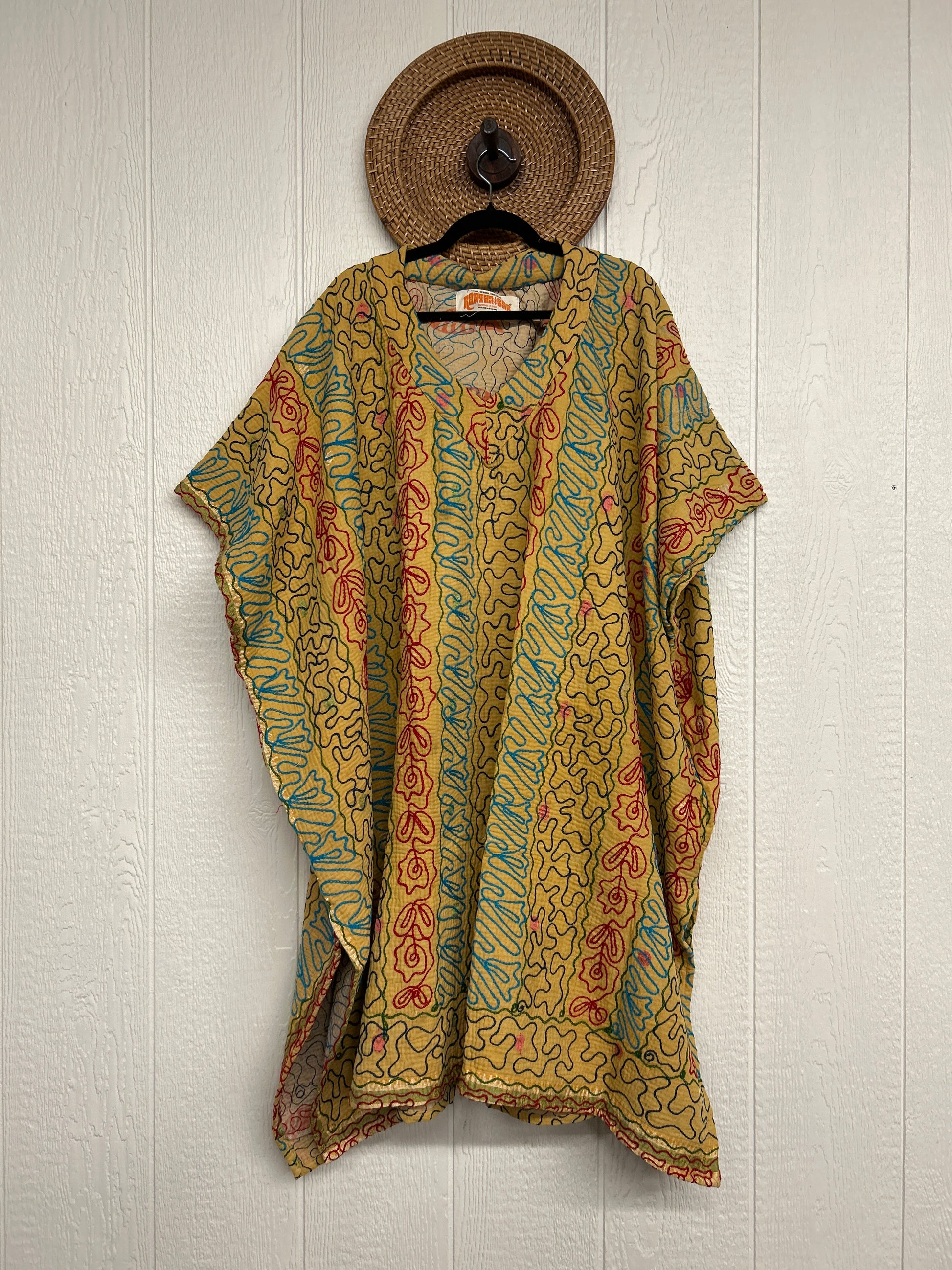 Crafted from hand embroidered fine kantha features a v neckline and interior pockets and side slits for extra dimension.