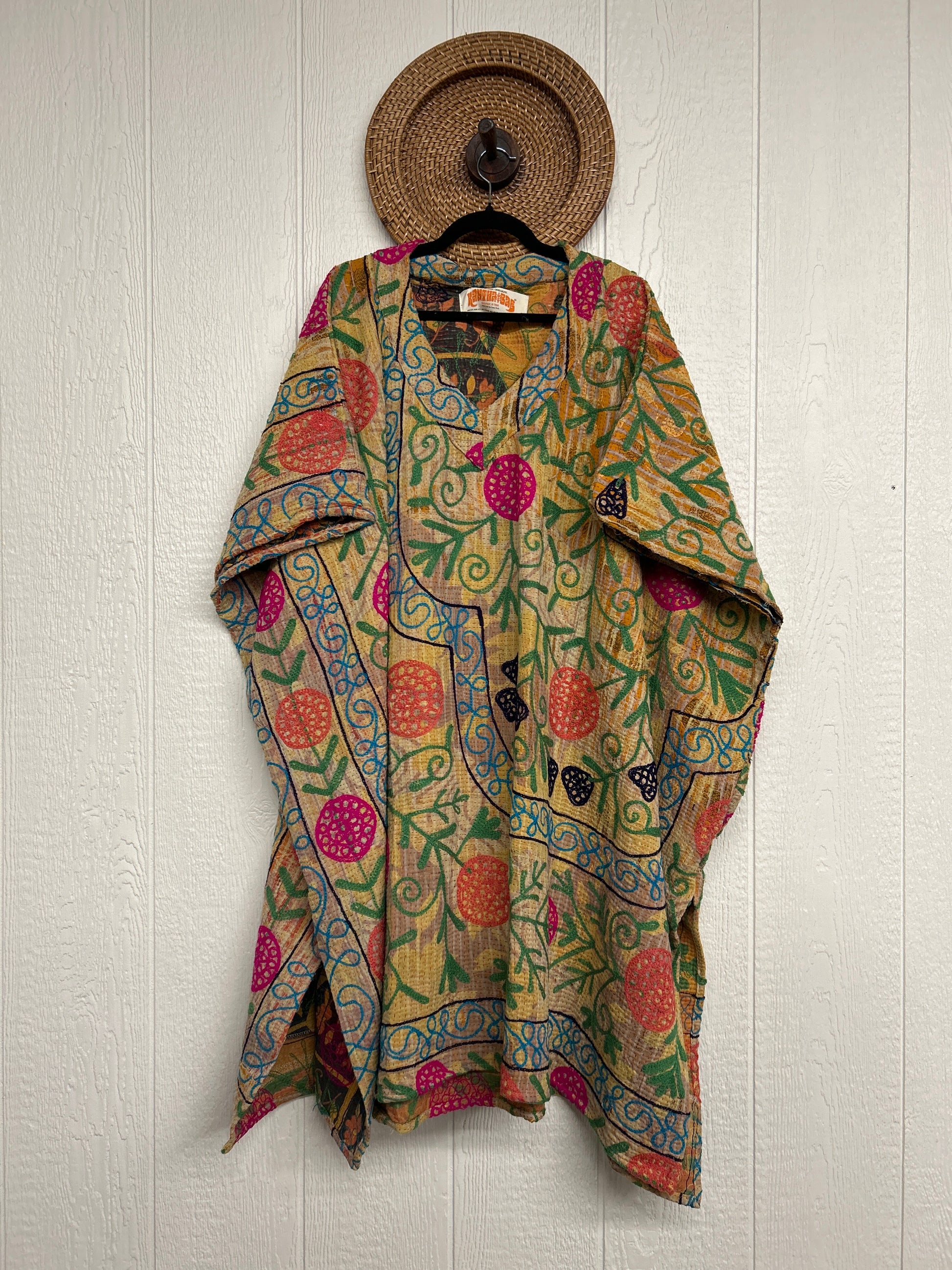 Crafted from hand embroidered fine kantha features a v neckline and interior pockets and side slits for extra dimension.