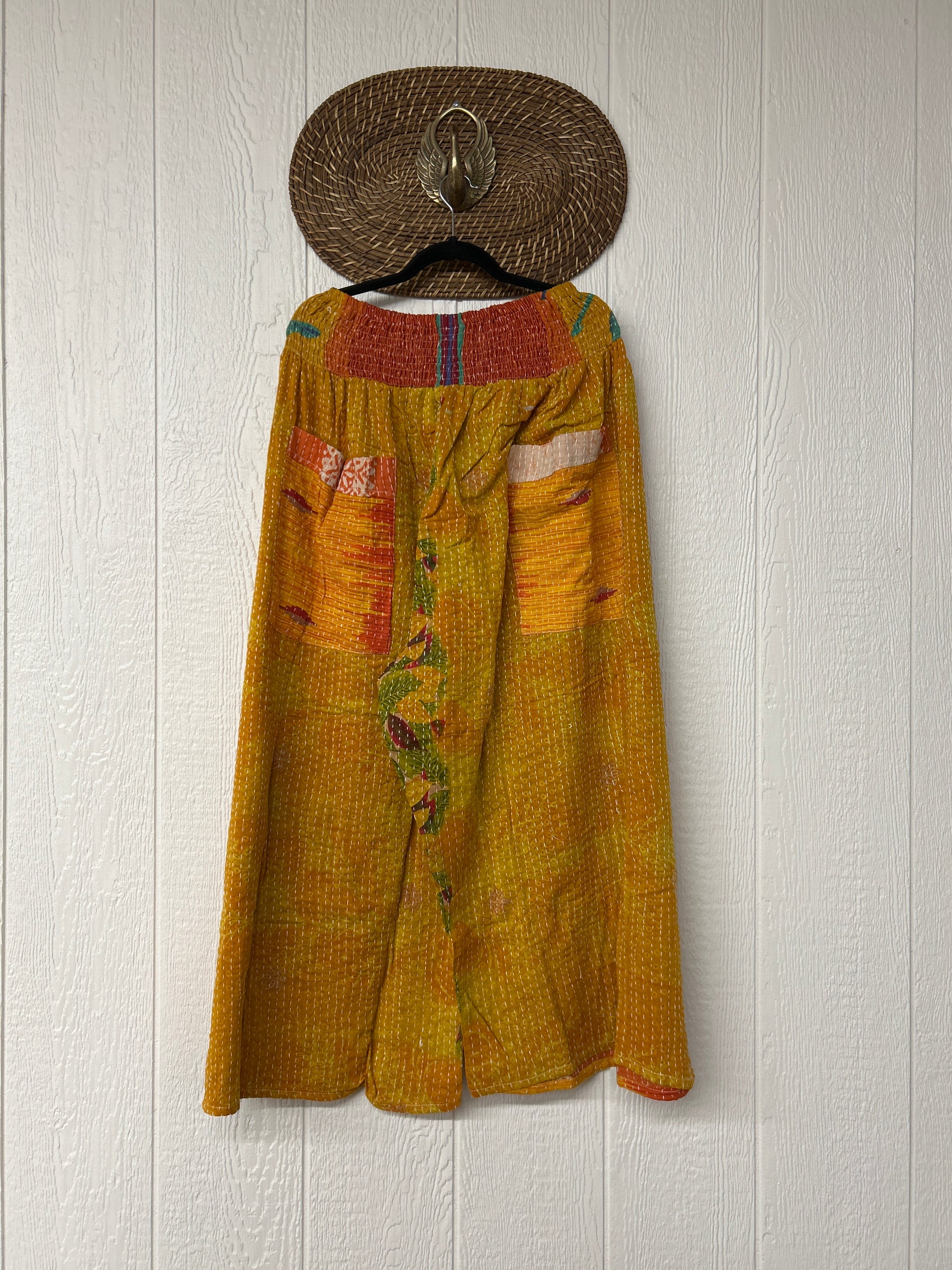 Fabrics may have small threads or holes in the layers. Color inconsistency or small stains may be present. The saris are sewn together and extend the life of each design.