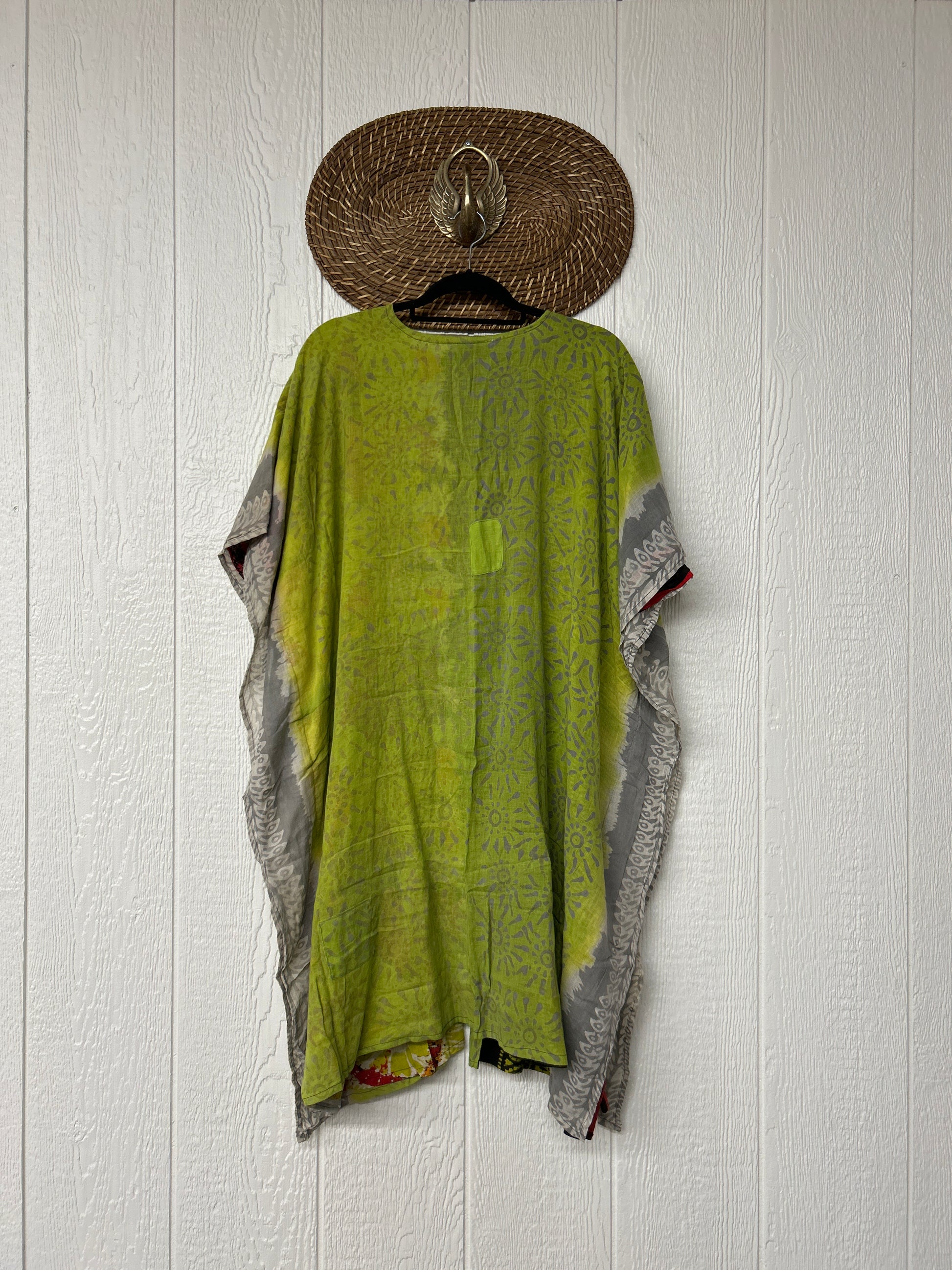 The Take It Easy Summer Kimono is next level comfort. Double vintage cotton sari, fully reversible, slouchy pockets inside and outside and side slits for extra dimension.