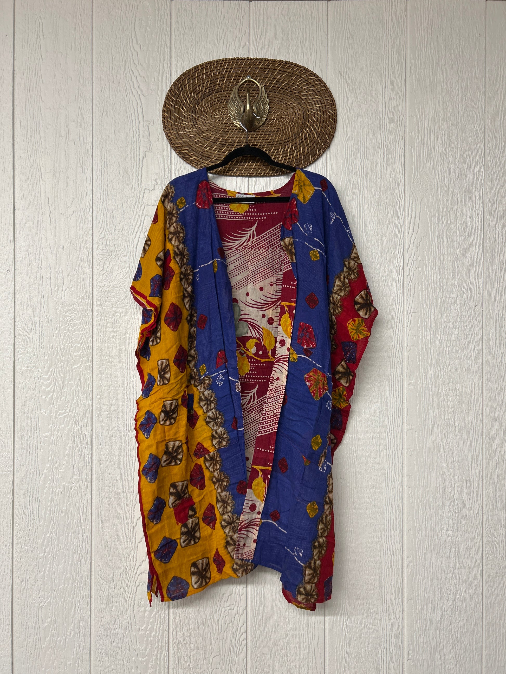 The Take It Easy Summer Kimono is next level comfort. Double vintage cotton sari, fully reversible, slouchy pockets inside and outside and side slits for extra dimension.