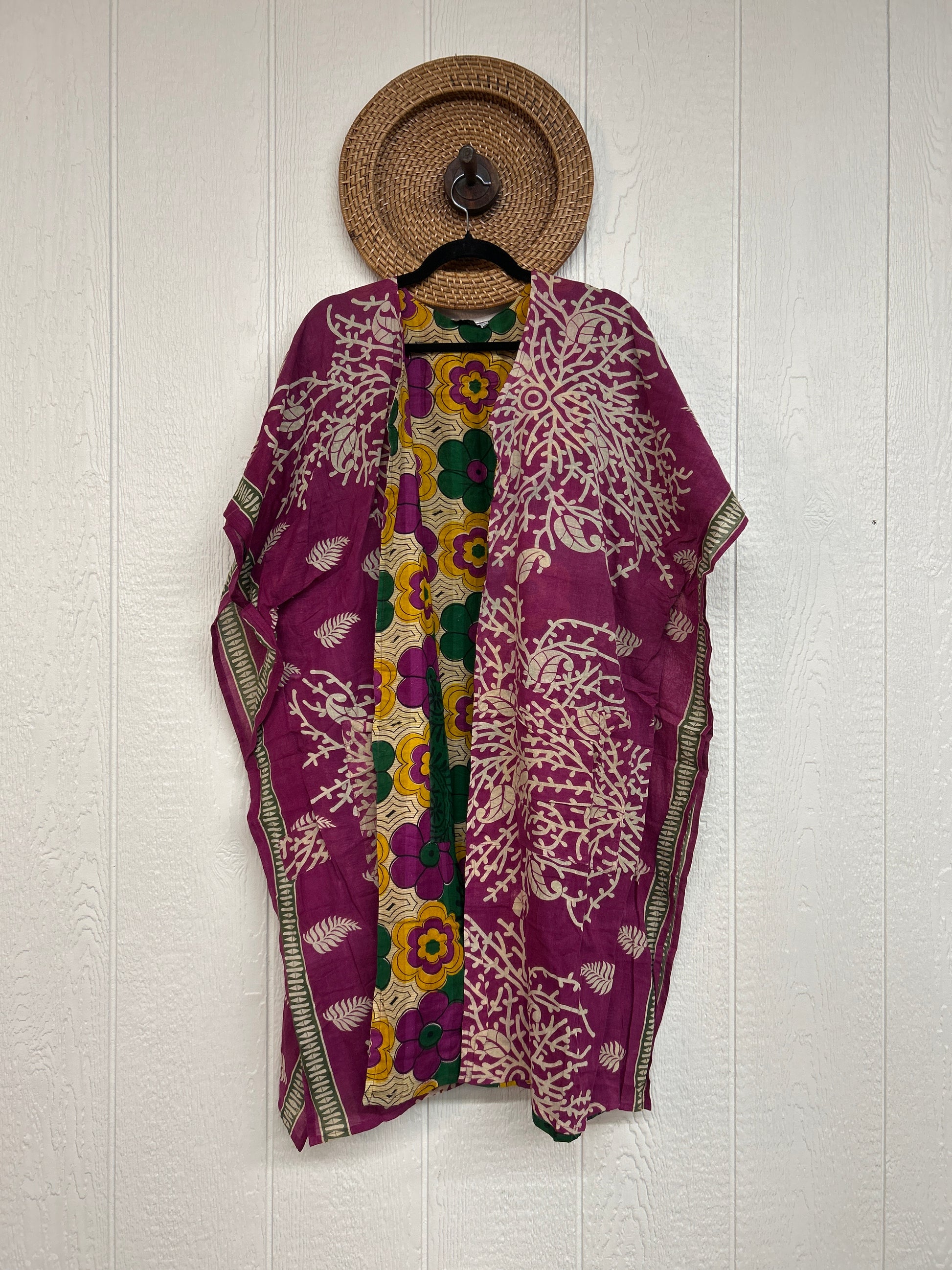 The Take It Easy Summer Kimono is next level comfort. Double vintage cotton sari, fully reversible, slouchy pockets inside and outside and side slits for extra dimension.
