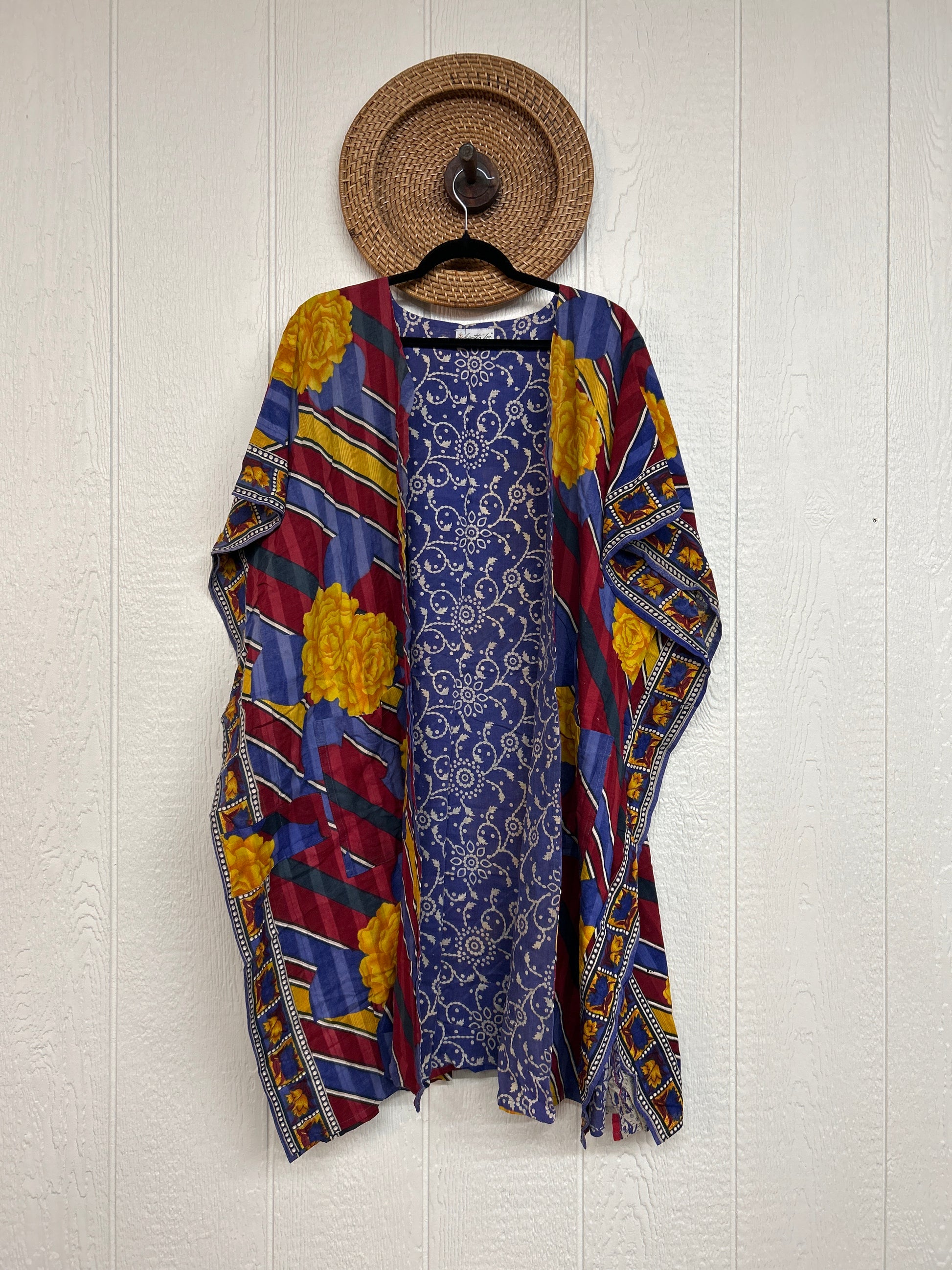 The Take It Easy Summer Kimono is next level comfort. Double vintage cotton sari, fully reversible, slouchy pockets inside and outside and side slits for extra dimension.