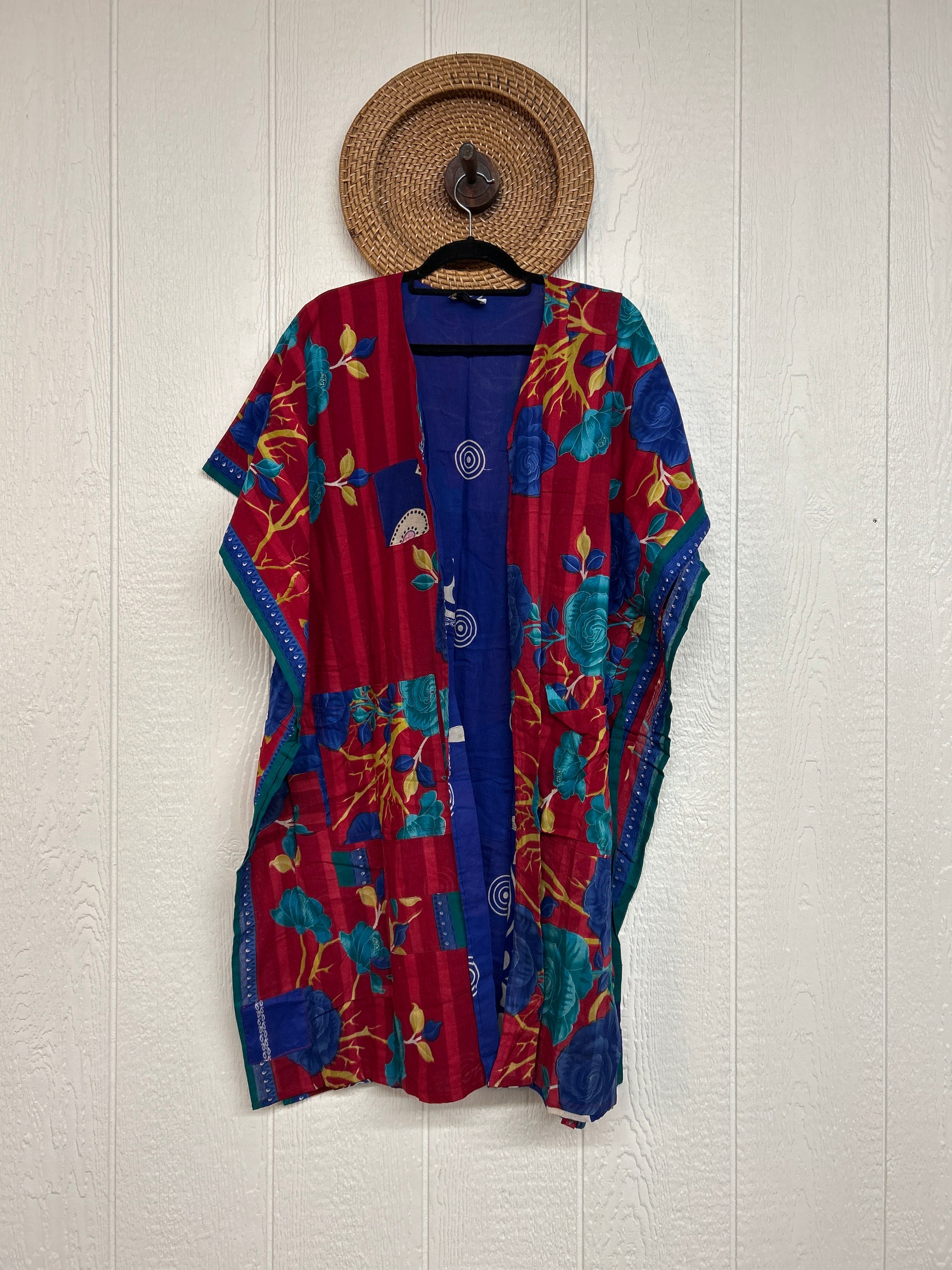 The Take It Easy Summer Kimono is next level comfort. Double vintage cotton sari, fully reversible, slouchy pockets inside and outside and side slits for extra dimension.