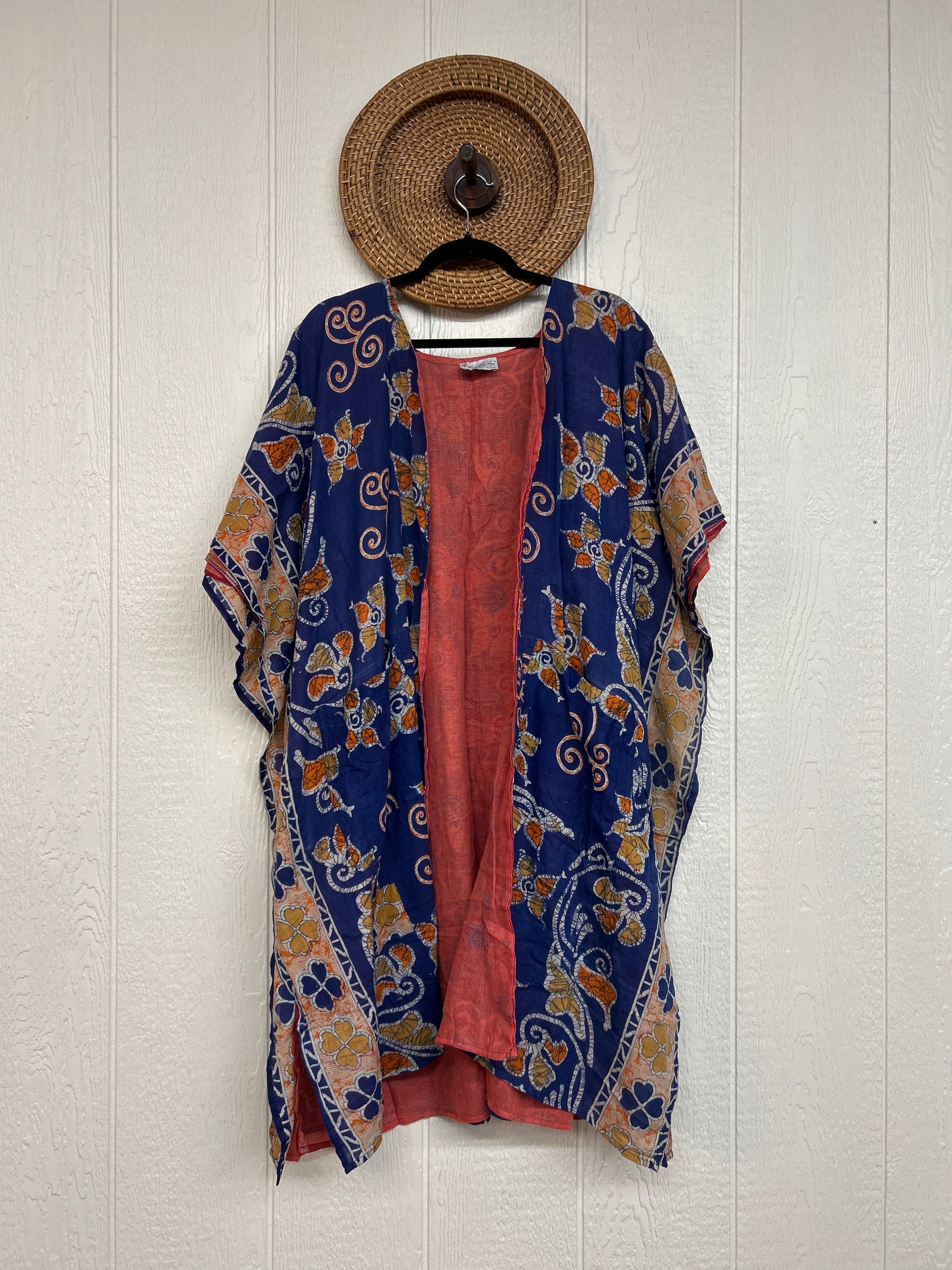 The Take It Easy Summer Kimono is next level comfort. Double vintage cotton sari, fully reversible, slouchy pockets inside and outside and side slits for extra dimension.