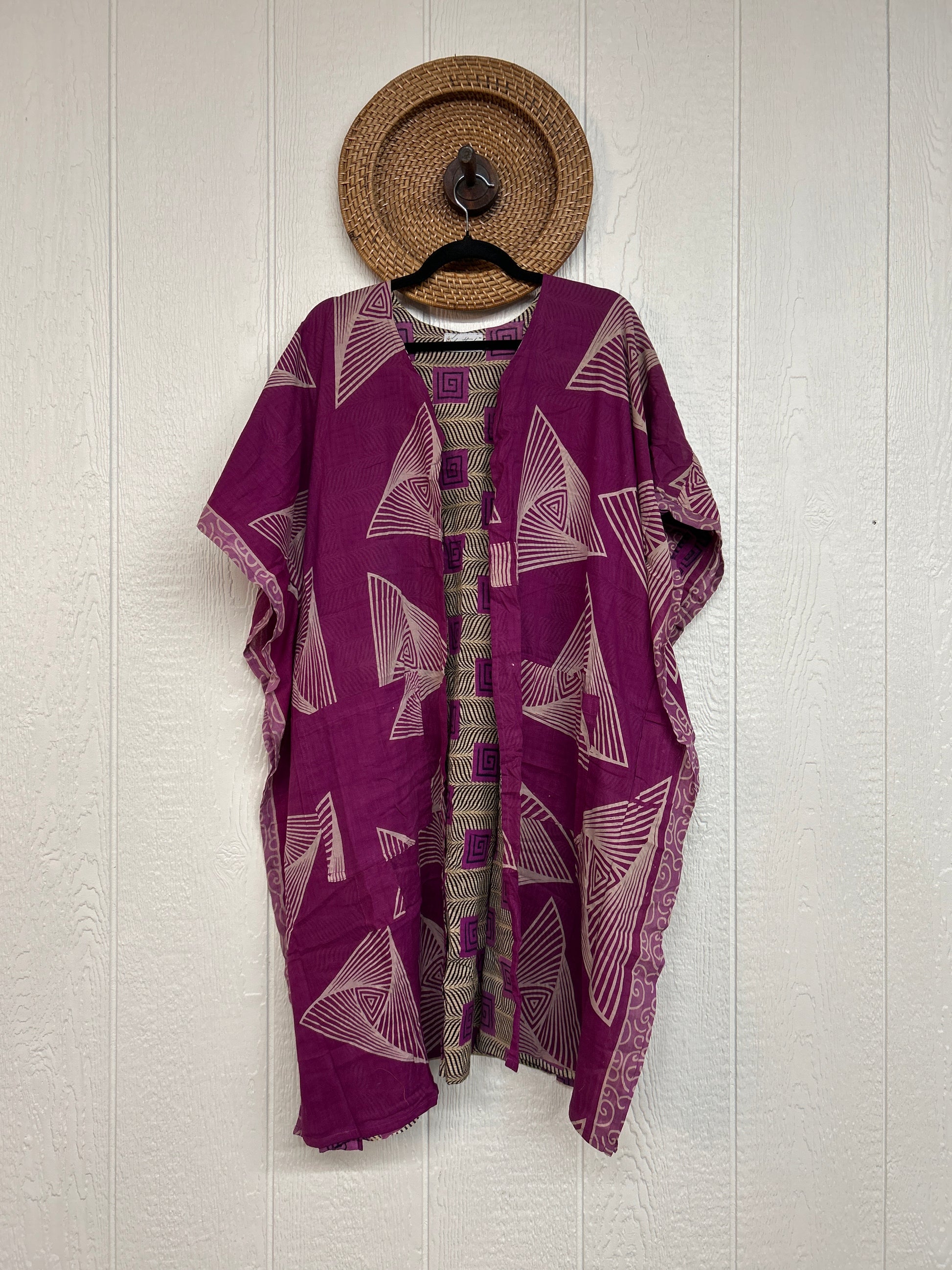 The Take It Easy Summer Kimono is next level comfort. Double vintage cotton sari, fully reversible, slouchy pockets inside and outside and side slits for extra dimension.