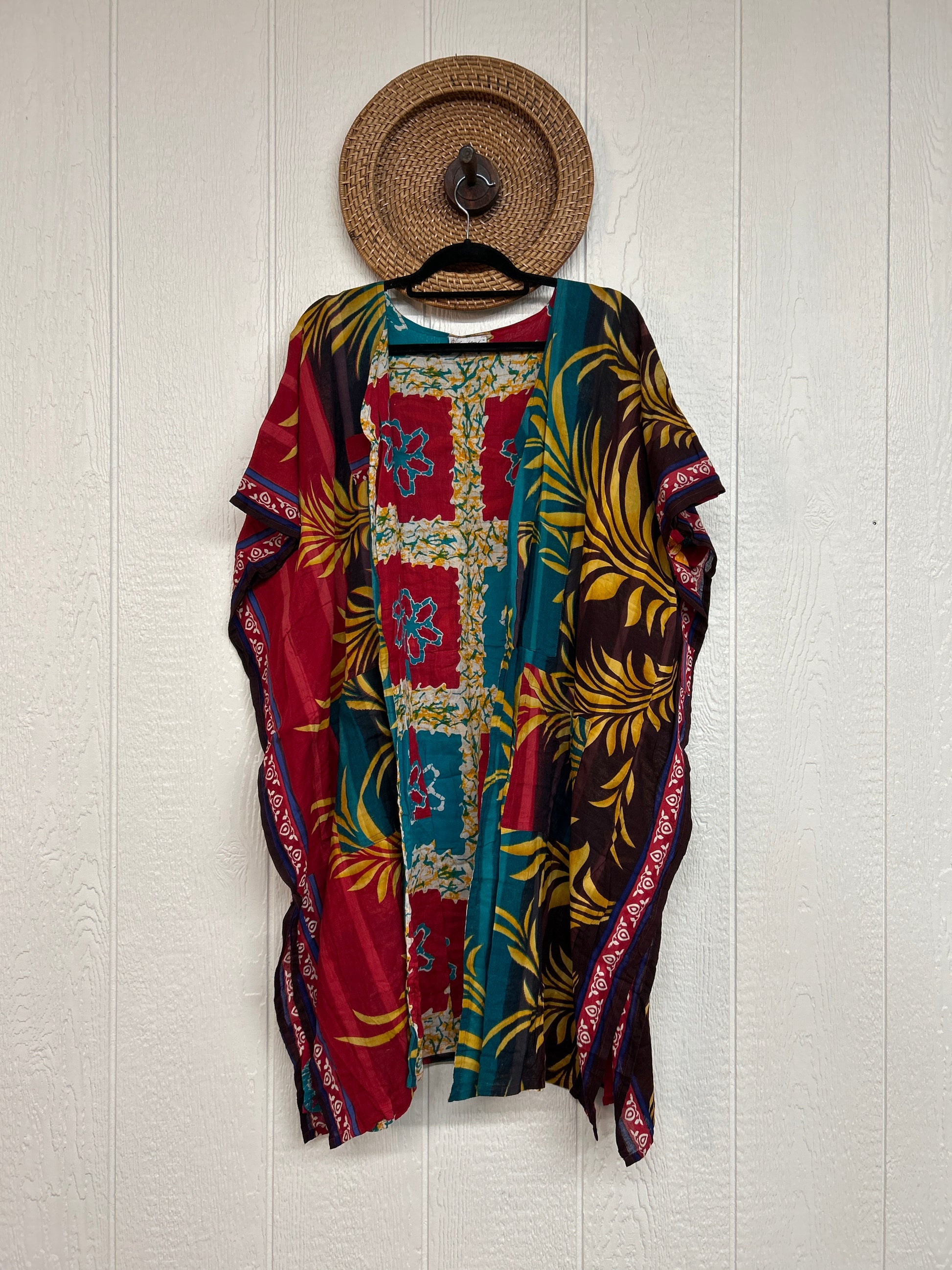 The Take It Easy Summer Kimono is next level comfort. Double vintage cotton sari, fully reversible, slouchy pockets inside and outside and side slits for extra dimension.