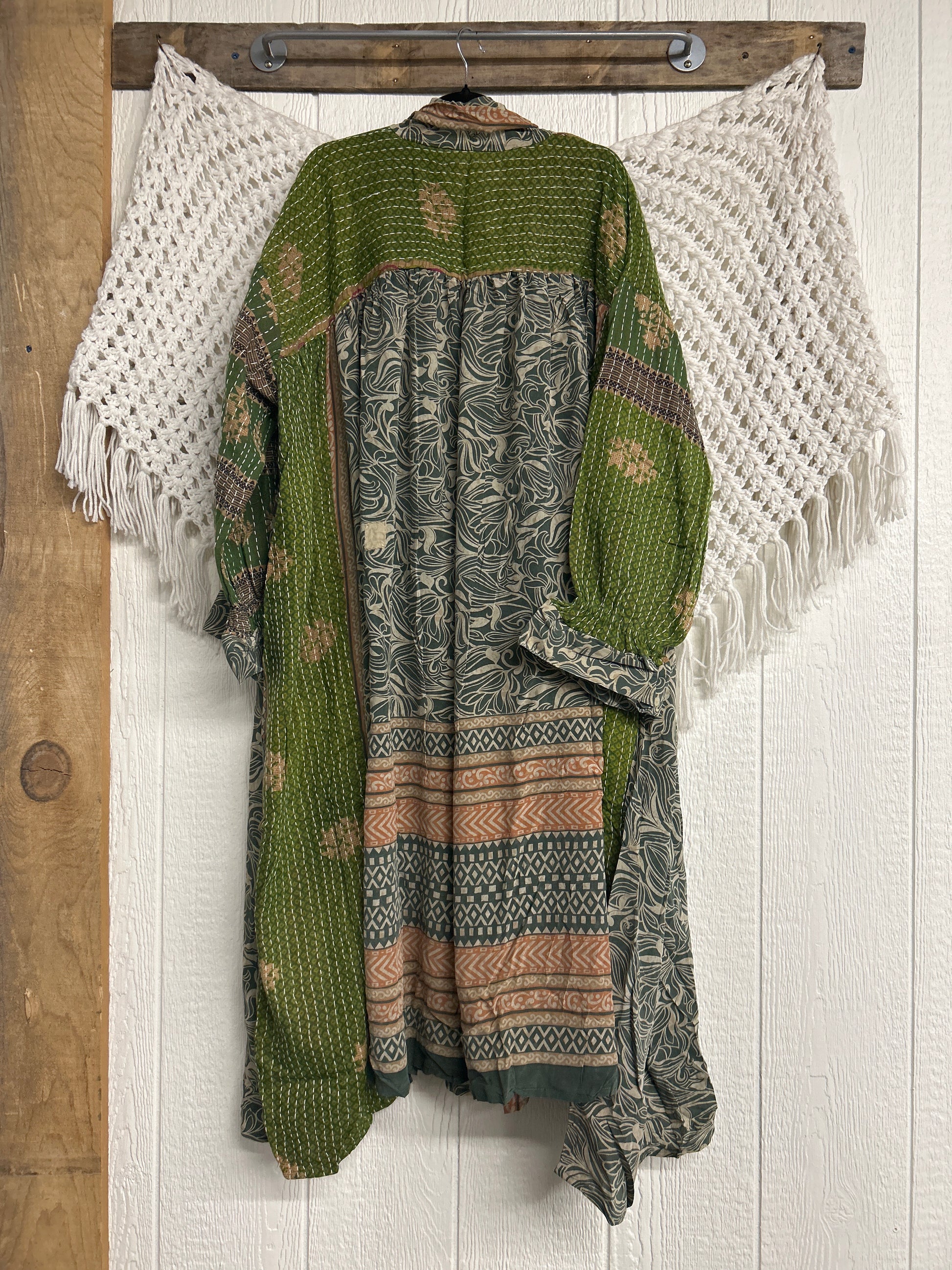 Crafted and sewn by families in a small village in Northern India providing work and a fair living. This product should be hand washed and line dried for longest life. For softness, fluff in the dryer on low heat after it has dried from hand washing. Disclosure: Our vintage styles have lived a full life before becoming the designs in our shop. Fabrics may have small threads or holes in the layers. Color inconsistency or small stains may be present. The saris are sewn together and extend the life of each design. Imperfections should be celebrated.