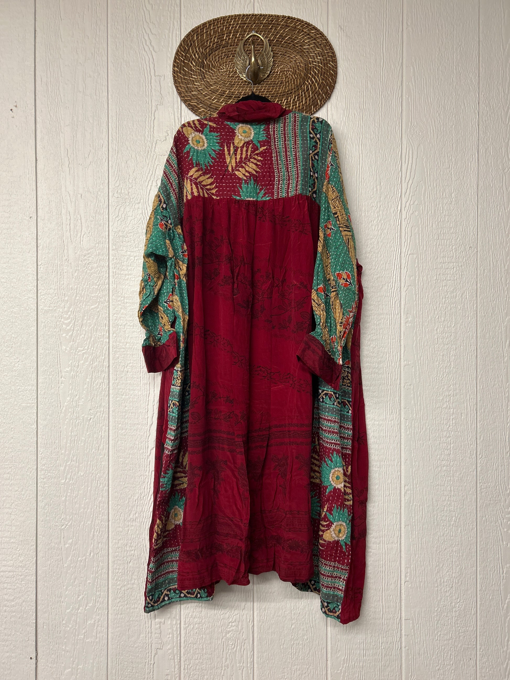 This dream layering piece is made from a mix of our lux vintage kantha embroidered cotton and crepe sari. Features an elastic ruffle sleeve that is easy to pull up or down to your desired length.