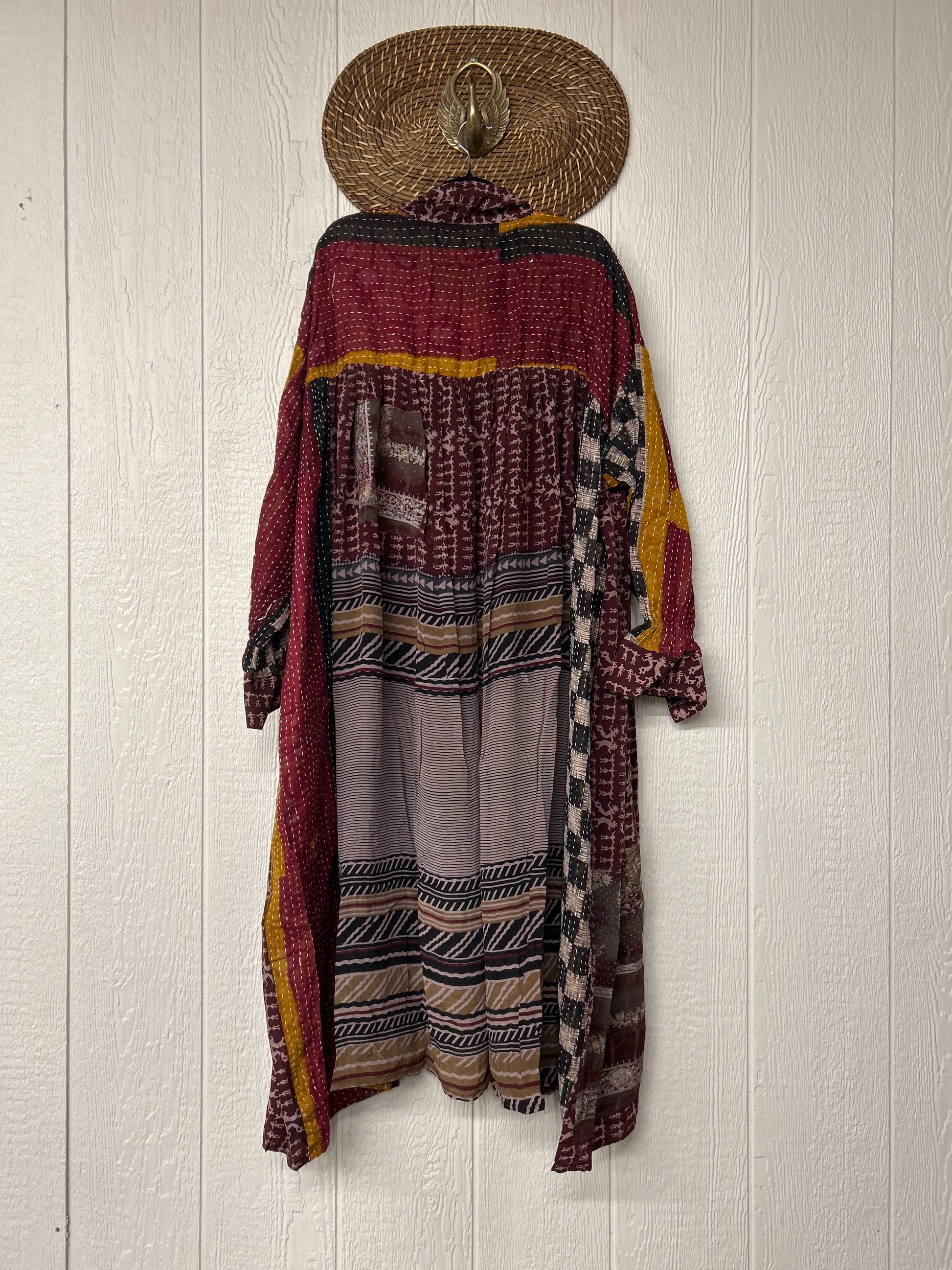 This dream layering piece is made from a mix of our lux vintage kantha embroidered cotton and crepe sari. Features an elastic ruffle sleeve that is easy to pull up or down to your desired length.