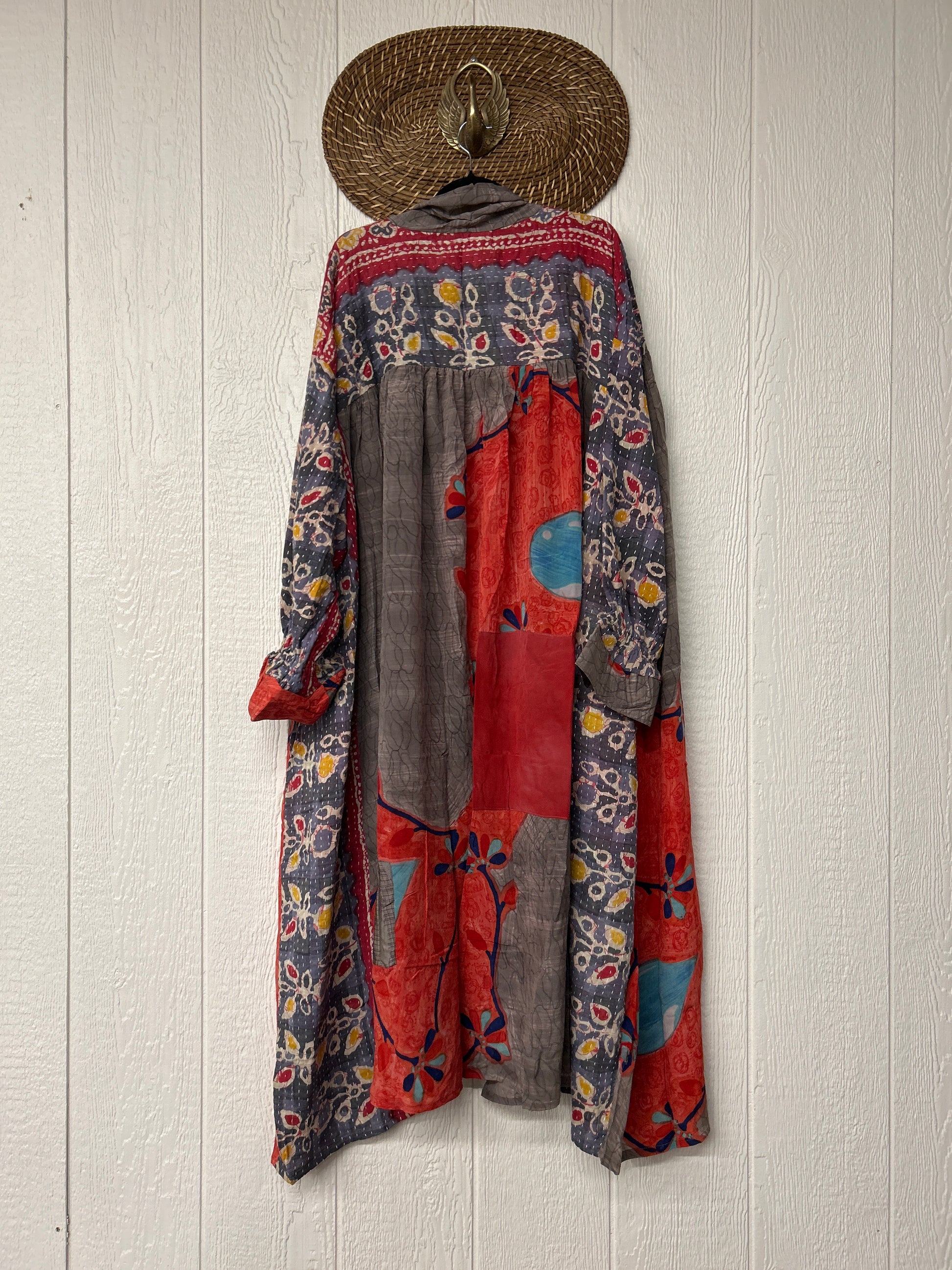 This dream layering piece is made from a mix of our lux vintage kantha embroidered cotton and crepe sari. Features an elastic ruffle sleeve that is easy to pull up or down to your desired length.