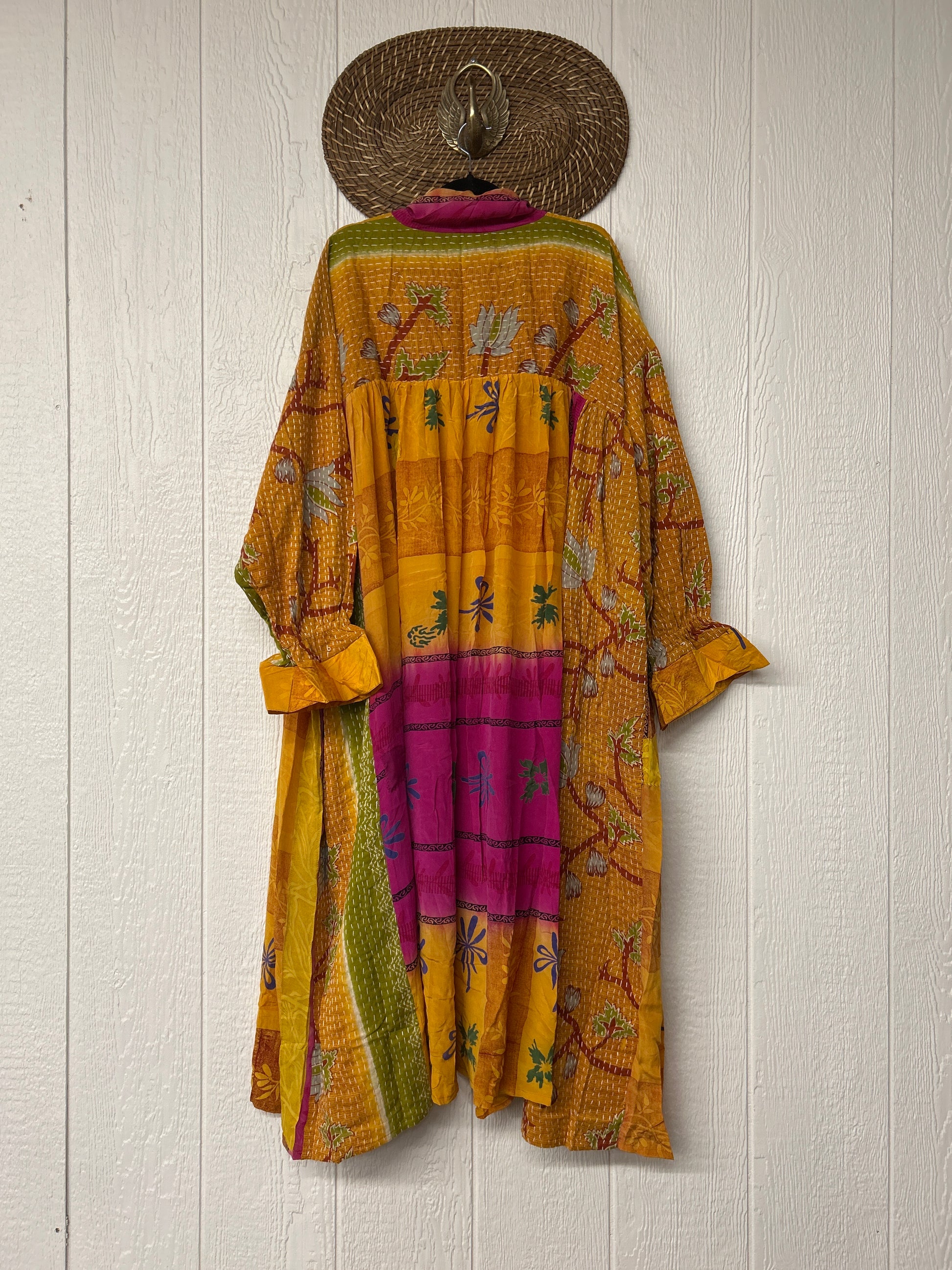 This dream layering piece is made from a mix of our lux vintage kantha embroidered cotton and crepe sari. Features an elastic ruffle sleeve that is easy to pull up or down to your desired length.