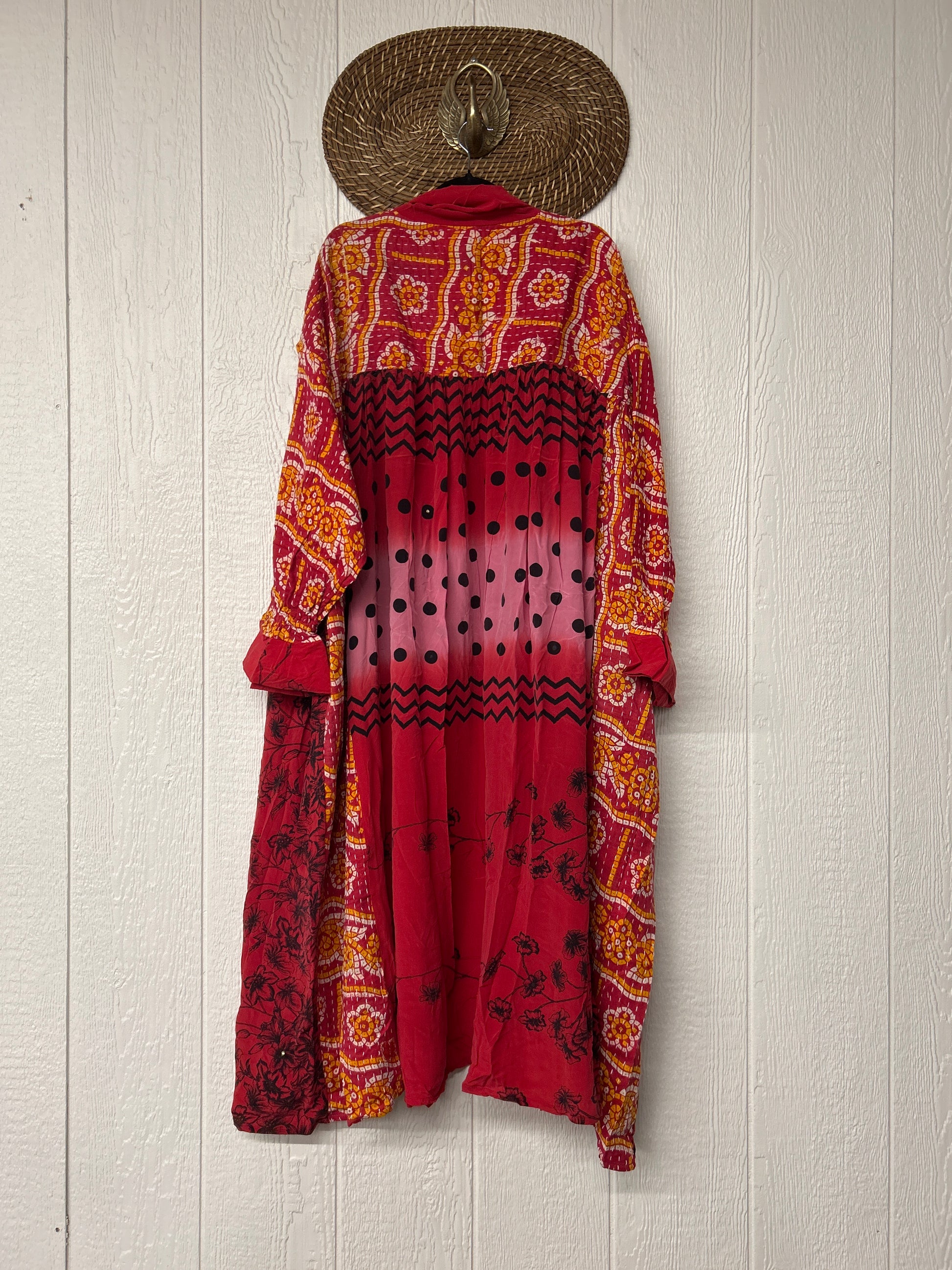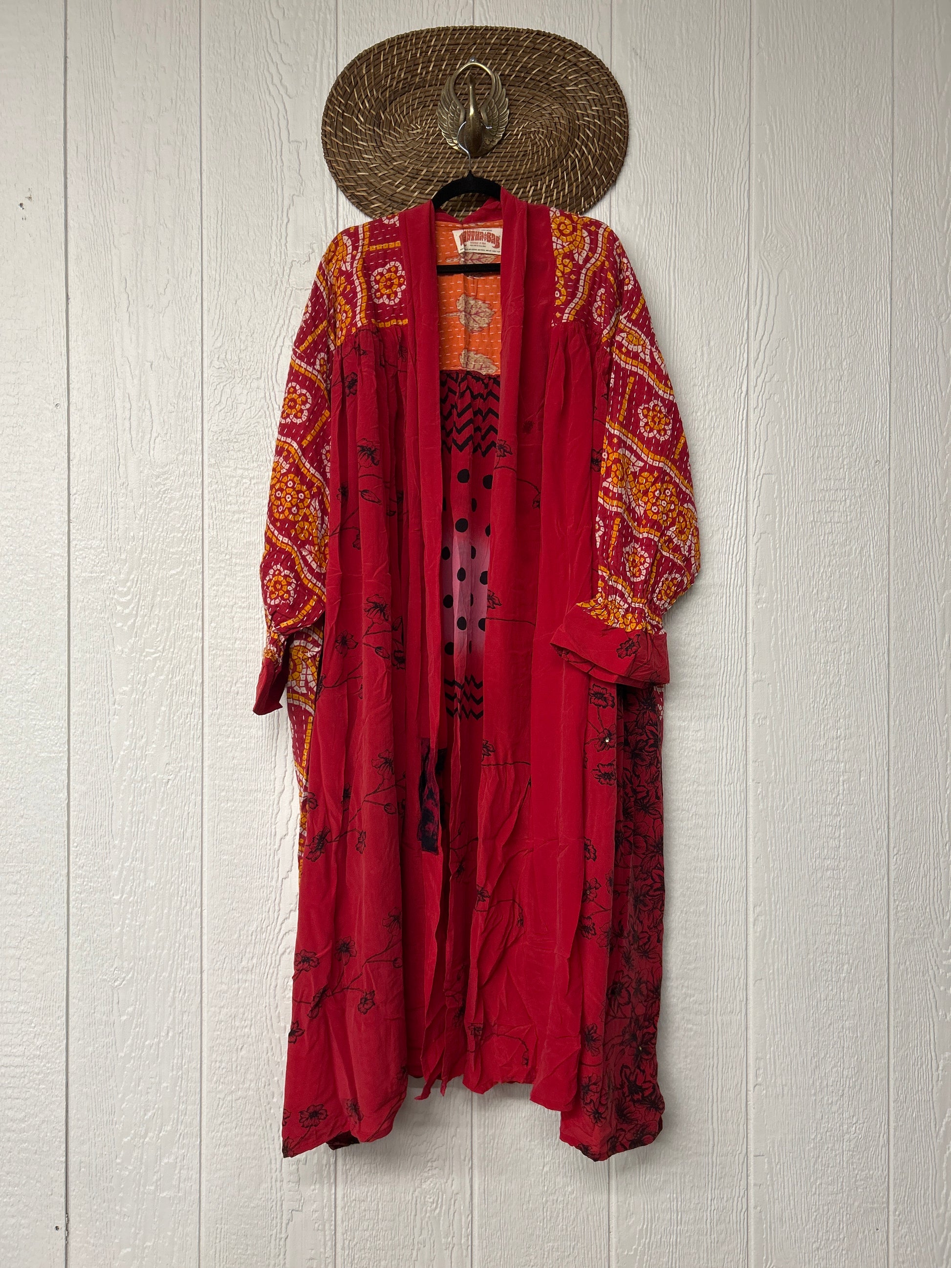 This dream layering piece is made from a mix of our lux vintage kantha embroidered cotton and crepe sari. Features an elastic ruffle sleeve that is easy to pull up or down to your desired length.