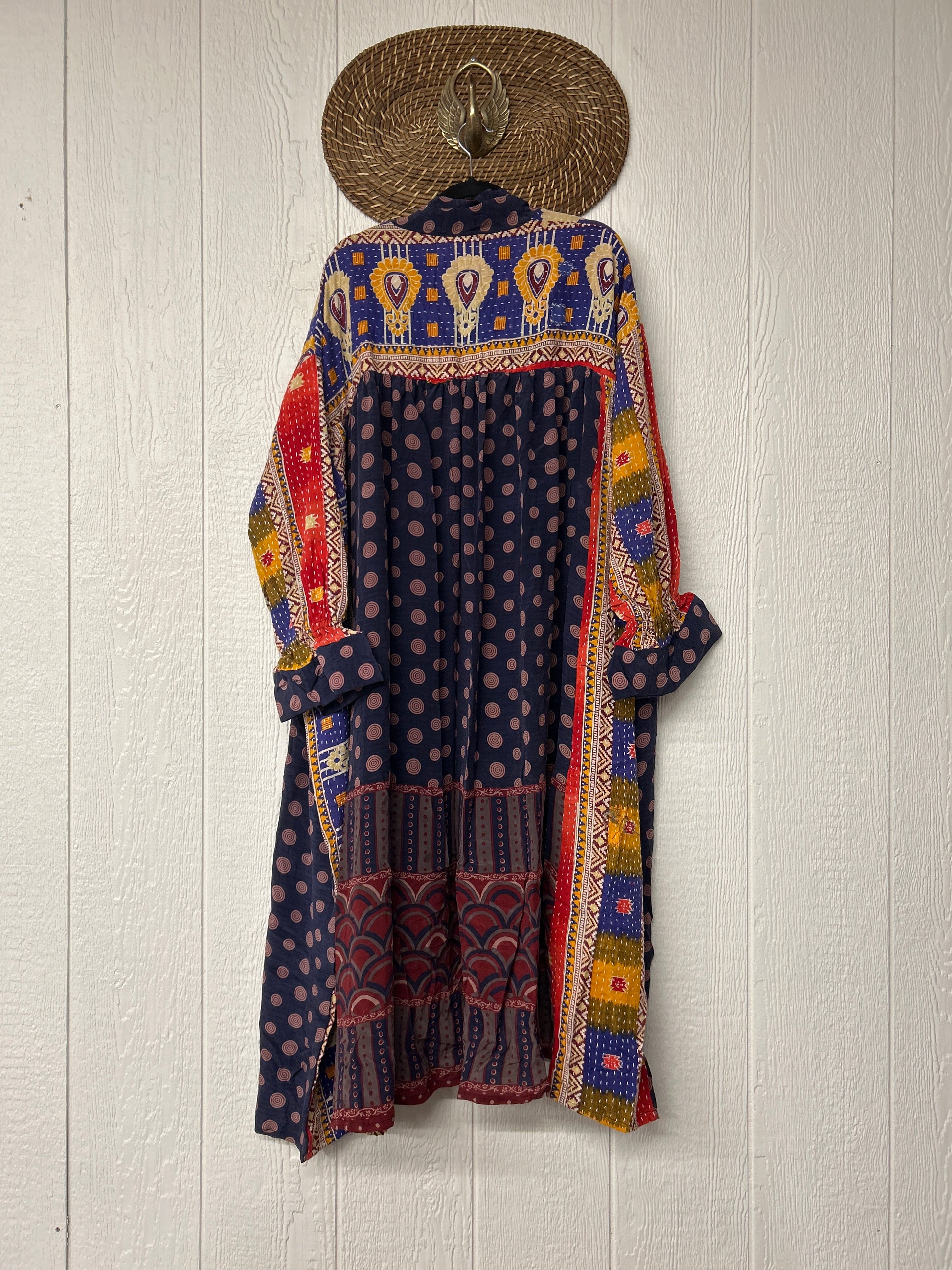 This dream layering piece is made from a mix of our lux vintage kantha embroidered cotton and crepe sari. Features an elastic ruffle sleeve that is easy to pull up or down to your desired length.