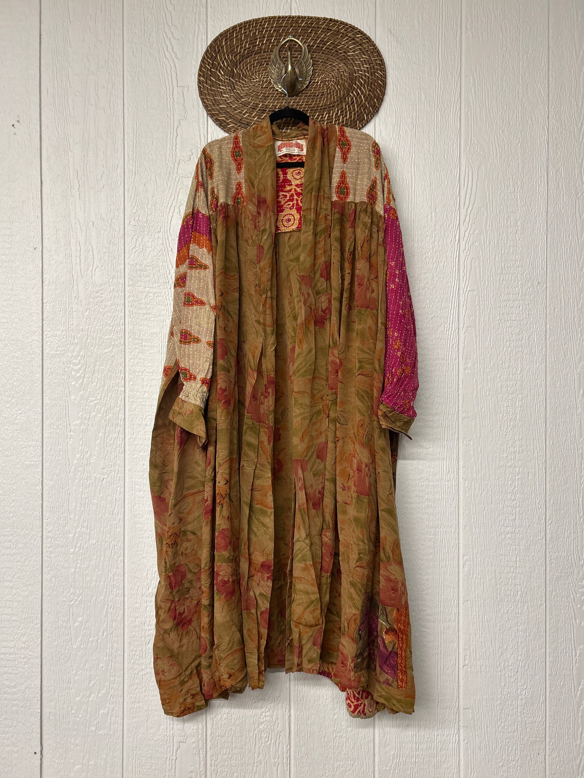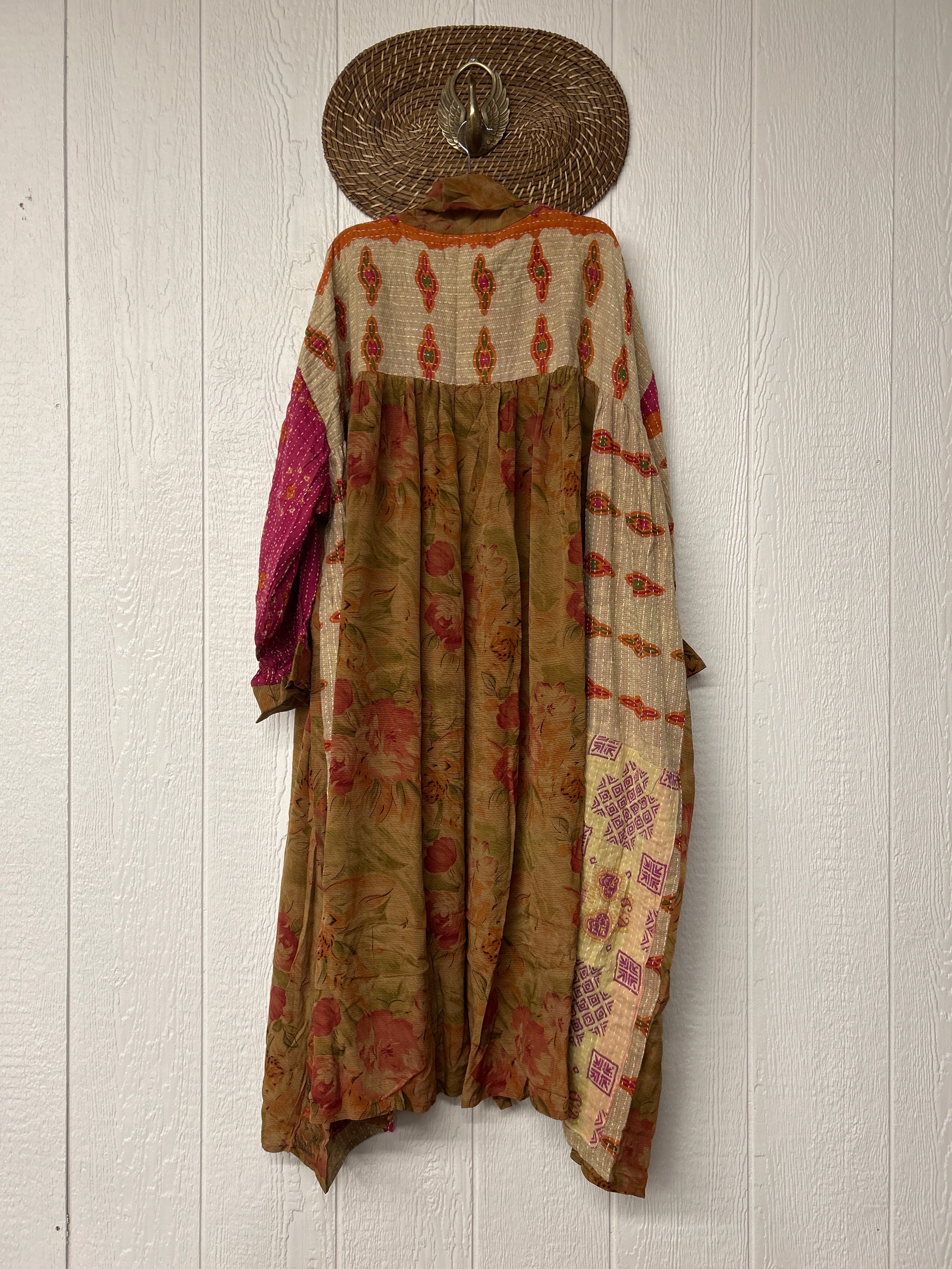 This dream layering piece is made from a mix of our lux vintage kantha embroidered cotton and crepe sari. Features an elastic ruffle sleeve that is easy to pull up or down to your desired length.