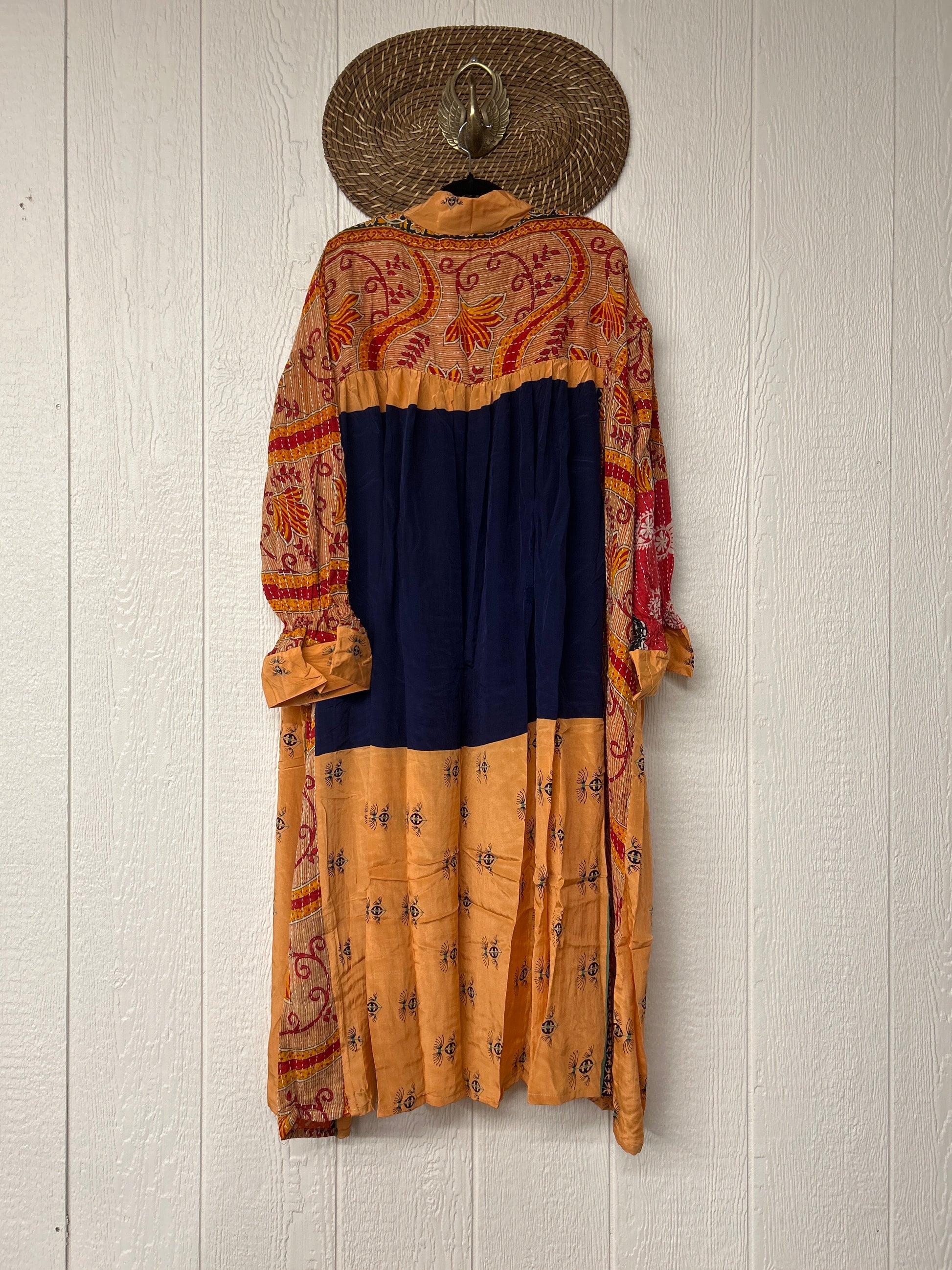 This dream layering piece is made from a mix of our lux vintage kantha embroidered cotton and crepe sari. Features an elastic ruffle sleeve that is easy to pull up or down to your desired length.
